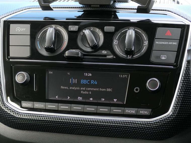 'Lights On' Reminder warning buzzer, Digital clock, Multifunction computer, Multifunction display plus, Rev counter, Service interval indicator, Speed sensitive power steering, Speedometer, electronic odometer and fuel gauge, Battery regeneration during braking, Galvanished body, 6 speakers, Composition colour system with 5" screen, DAB, AUX in socket, SD card, MP3/WMA/AAC, 4 X 20W, bluetooth, audio connection and USB connectivity, Smartphone interface navigation with USB Connection, Twin tuner, USB connection, Black radiator grille, Body colour door handles, Body coloured bumpers, Chrome headlight surround, Electric front windows, Front wash/wipe with interval delay, Halogen clear headlights with integrated indicators and range adjustable, Heated rear window, High level 3rd brake light, LED daytime running lights, Manually dimming rear view mirror, Rear fog lights, Rear windscreen washer and wiper with interval delay, 12V accessory power point in centre console, 2 cupholders, 60/40 split folding rear seat, Chrome interior door handles, Delay courtesy light function, Driver seat height adjust, Front head restraints, Fusion cloth upholstery, Glovebox, Height adjustable rear head restraints, Height adjustable steering wheel, Isofix Preparation 2 Rear child seats, Luggage compartment cover, Luggage compartment lighting, Passenger sunvisor with illuminated vanity mirror, Storage compartment in front doors, Tool kit, Variable boot floor, City emergency braking pack - Up, Cruise and park pack - Up, 3 point height adj front seatbelts + pretensioners, ABS, Driver and passenger airbags, Driver/front passenger side airbags, ESP with EDL + ASR, Front thorax airbags, HBA (Hydraulic Brake Assist), Hill hold control, Seatbelt warning lamp and buzzer, Two 3 point rear seatbelts, Tyre pressure warning, Volkswagen roadside assistance, Electronic engine immobiliser, Locking fuel filler cap, Remote central locking with 2 remote folding keys, Black cube upper dash, High gloss black surrounds for air vents, Full size steel spare wheel,