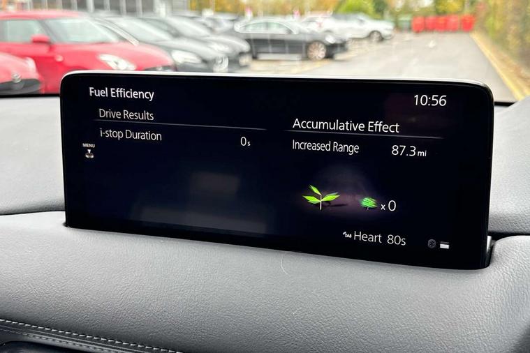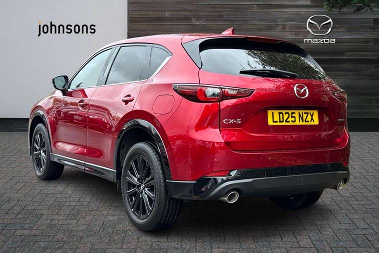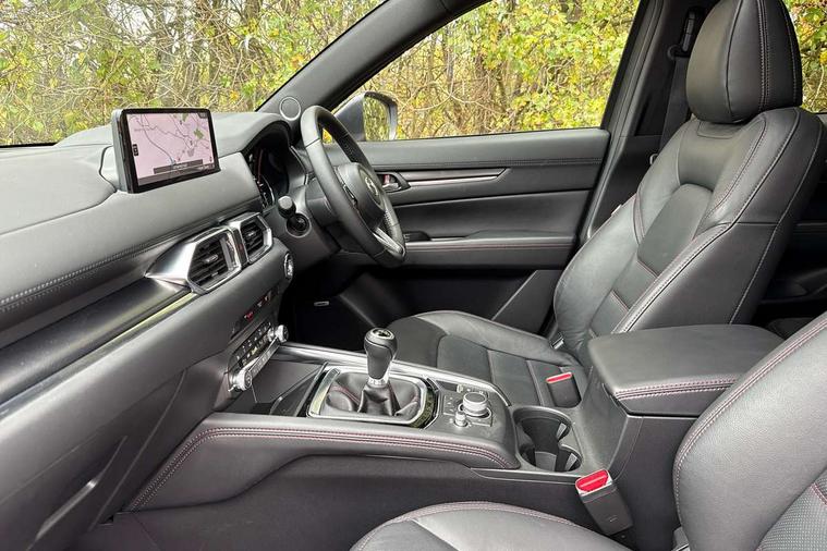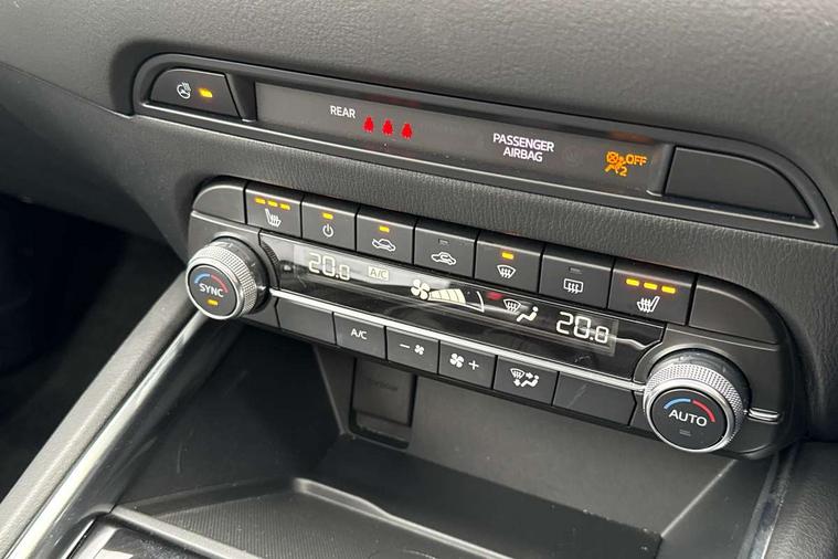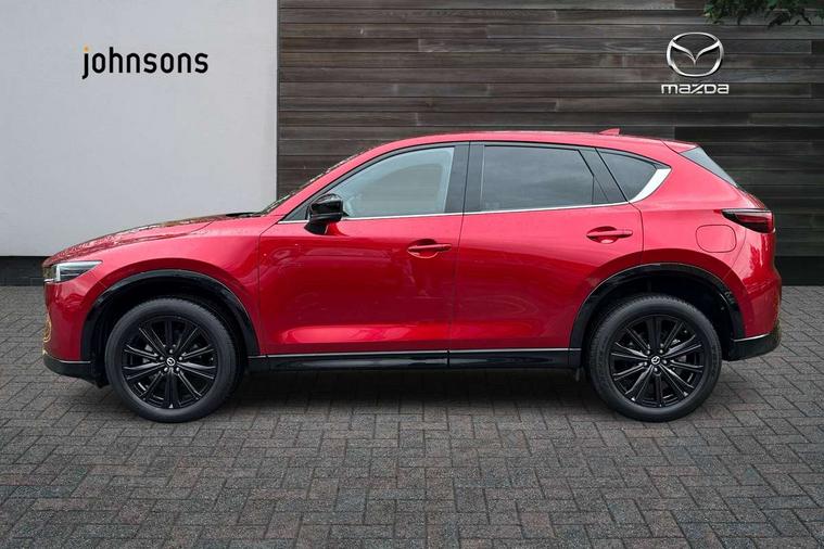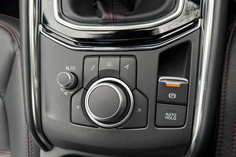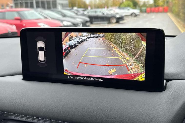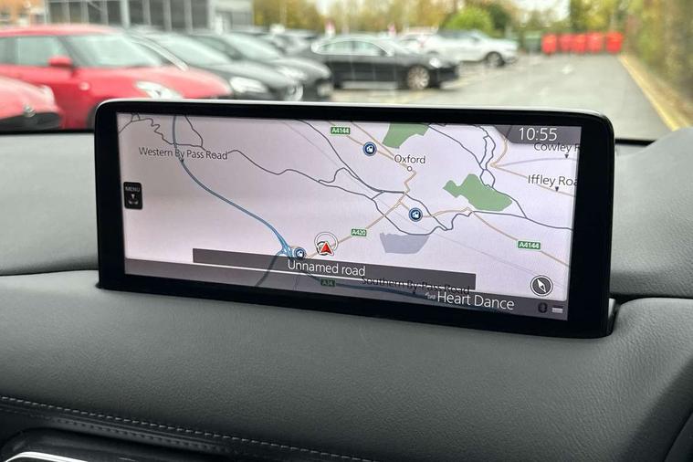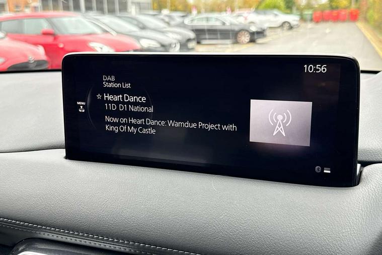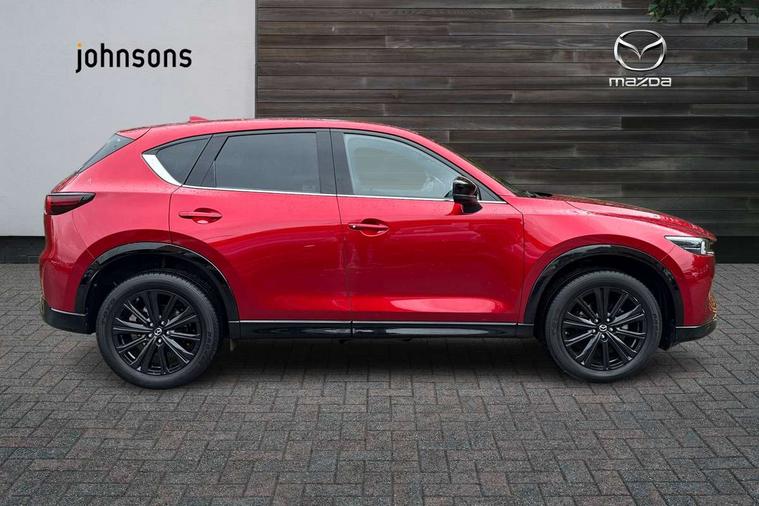 10.25" display with Mazda Connect infotainment, 7" colour TFT display, Advanced blind spot monitoring, Bluetooth connectivity with voice control, Collision prevention assist, Connected services, Cruising Traffic Support, Electric power steering, Emergency stop signalling system, Engine start/stop button, Forward collision warning, Front and rear parking sensors, Integrated navigation system, Intelligent speed assist, Lane departure warning system, Lane keep assist, Power liftgate, Qi wireless phone charging, Radar cruise control, Rear cross traffic alert, Reversing camera, Service indicator, Traffic sign recognition (TSR), Trip computer, Windscreen projected colour active driving display (HUD) with memory, Wireless apple car play/android Auto, Cylinder Deactivation, i-stop, AM/FM radio, Bluetooth audio streaming, Bose premium sound system with 10 speakers, DAB Digital radio, Multimedia Commander including separate volume dial, Steering wheel mounted audio controls, Adaptive front lighting system, Auto dimming rear view mirror, Automatic headlights, Black honeycomb door trim decoration panel, Black honeycomb interior decoration panel, Body colour roof spoiler, Coming/leaving home lighting function, Door mirror integrated indicators, Dual large chrome tailpipes, Dusk sensitive headlamps, Electric front/rear windows with one touch auto up/down, Front grille in gloss black finish, Front grille in gloss black with red accent + gloss black signature wing, Gloss black B and C pillars garnish, Gloss black door mirrors, Gloss black front and rear lower bumper mouldings, Gloss black tire arch and side mouldings, High beam assist, Intermittent rear wash/wipe, LED auto levelling, LED daytime running lights, LED front fog lights, LED Headlights, LED third brake light, Power folding and heated door mirrors, Power tilt/slide sunroof, Privacy glass (rear side windows only), Rain sensing front wipers, Rear side wing doors, Red front grille accent, Red stitching and accents on door trim, knee pad, console lid, steering wheel, shift boots, Scuff plates, Shark fin antenna, Signature LED rear combination lights, Variable intermittent front wash/wipe, Windscreen wiper de-icer, 12v electrical power outlet, 3 seat bench in 2nd row, 3 stage heated front seats, 40:20:40 Karakuri fold-flat seat system, 6 way electric adjustable passenger seat, 8 way electric driver seat with lumbar support + memory, Black roof lining, Cargo room flat floor board with waterproof undertray, Driver seat power slide, recline and height adjustment, Driver, Front passenger and two rear grab handles with coat hooks, Driver/passenger front seatback pockets, Driver/passenger sunvisors + illuminated vanity mirrors (drivers with ticket holder), Dual zone climate control, Folding centre armrest with 2 cup holders, Front and rear door pockets, Front centre storage with two cupholders, Front passenger seat power slide, recline and height adjustment, Gear shift indicator, Heated steering wheel, Humidity sensor, Illuminated glovebox, Interior dome light with integral spotlight, ISOFIX child seat anchorage points attached on outer rear seats, Karakuri tonneau cover, Leather upholstery, Leather wrapped steering wheel and gear knob, Luggage compartment LED lighting, Luggage compartment power outlet, Rear air vents, Rear headrests, Rear seat recline, Roof mounted sunglasses holder, Single front passenger seat, Three height adjustable head restraints, Tilt/height adjustable steering wheel, USB Connectivity (2x front Type-C, 2x rear Type-B), White interior LED illumination lighting, 3 point front seatbelts with pre-tensioners, 3 rear 3 point seatbelts, ABS, Advanced Smart City Brake Support - SCBS, Child locks on rear doors, Driver and front passenger side airbags, DSTC-Dynamic Stability and Traction Control, Dual front airbags, Electronic brake force distribution, Electronic parking brake with auto hold, ESP, Front and rear curtain airbags, Front passenger airbag deactivation, G-Vectoring control, Hill hold assist, Seatbelt reminder front and rear, Single stage passenger airbags, Smart brake support with forward obstruction warning, Tyre pressure monitoring system, Automatic door locking when moving off, Deadlock, Immobiliser, Power door locks, Remote central locking, Smart keyless entry, Thatcham Cat.1 alarm, 19" Black alloy wheels, Tyre repair kit,