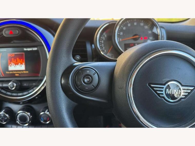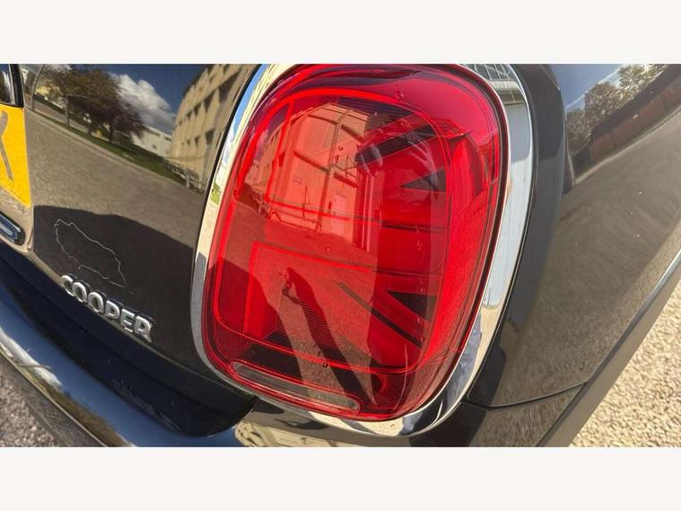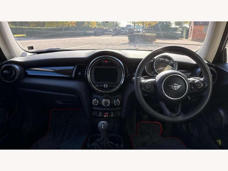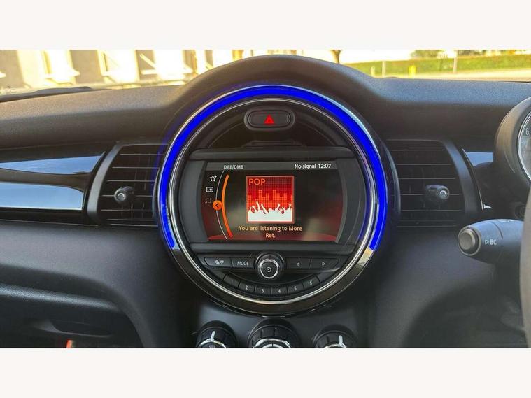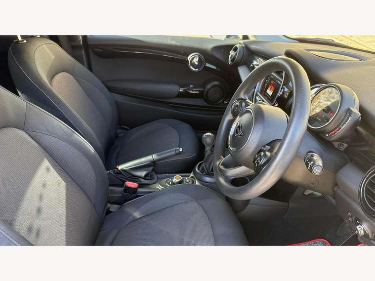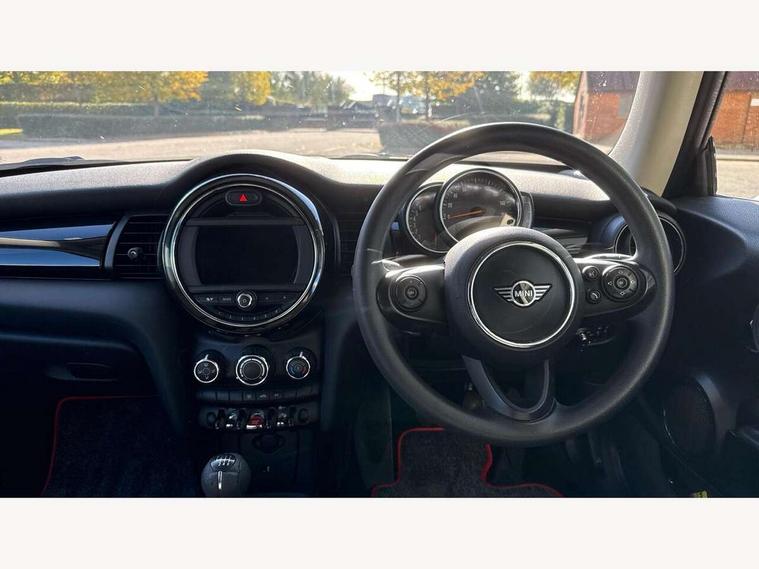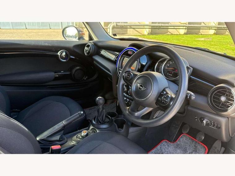 Compatible mobile phone bluetooth with audio streaming, Instrument cluster, Mini E-call, MINI TeleServices, On board computer, Service interval indicator, 6.5" touchscreen with LED ring, FM tuner and DAB digital radio, Automatic headlight activation switch, Body colour fuel filler cap, Chrome border high gloss black slats radiator grille, Dynamic brake lights, Electric front windows, Heated rear window, Heated windscreen washer jets, LED headlight with closed ring and daytime driving lights, Left exhaust tailpipe with chrome finisher, Metal door sill strips with MINI imprint, Model logo Cooper on right of tailgate, Rain sensor window wipers, Rear fog lights, Rear LED lights with union jack design, Rear window wiper, Side scuttle panel with integrated indicator, Sun/heat protection glass, White indicator lenses, 12V Accessory socket in centre console, 4 lashing eyes in luggage compartment, 60/40 split folding rear seat, Chrome interior highlights, Colour line - Carbon black, Cupholders, Front and rear isofix with front passenger airbag deactivation, Glove compartment, Height and length steering column adjustment, Interior lighting with 12 basic colours selectable via toggle switch in roof, Leather gearshift lever and handbrake gaiters, Manual air conditioning, Mechanical seat adjustment, driver seat height adjust, forward/back and front seats backrest, Mini logo projection on floor from drivers exterior mirror, Multifunction steering wheel, Satellite grey headlining, Storage compartments in doors, Sunvisors with vanity mirrors, 3 point seatbelts on all four seats, 6 Airbags - front, side, head and seat belt tensioners, Anti-lock braking system (ABS), DSC - Dynamic Stability Control, Front and rear disc brakes, Hill start assist, Single tone fanfare horn, Tyre pressure monitoring system, Alarm system with tilt sensor, monitoring doors, bonnet interior and tailgate, Electronic vehicle immobiliser, Start/stop toggle with keyless go, Tool kit,