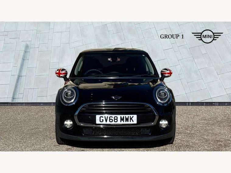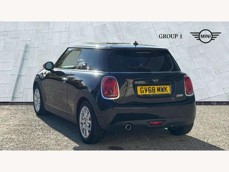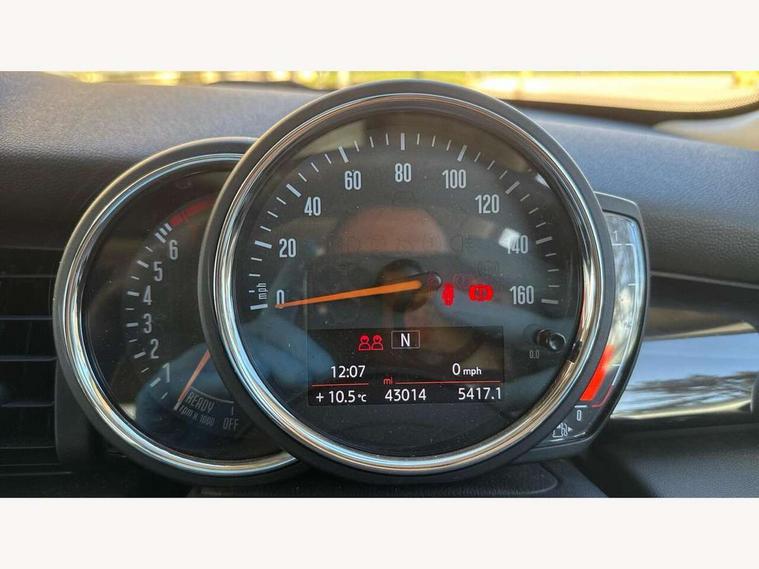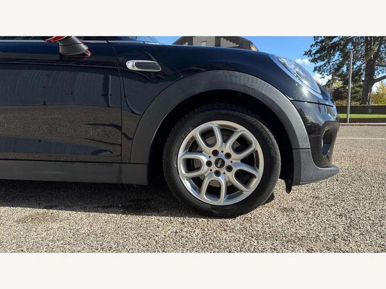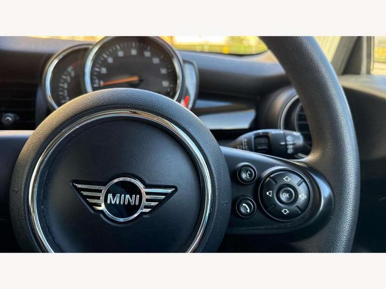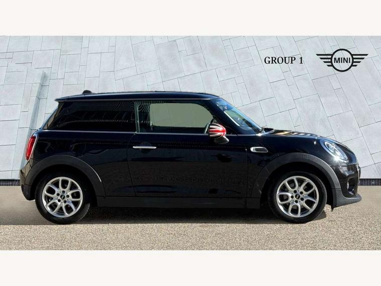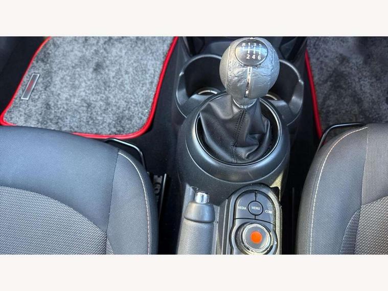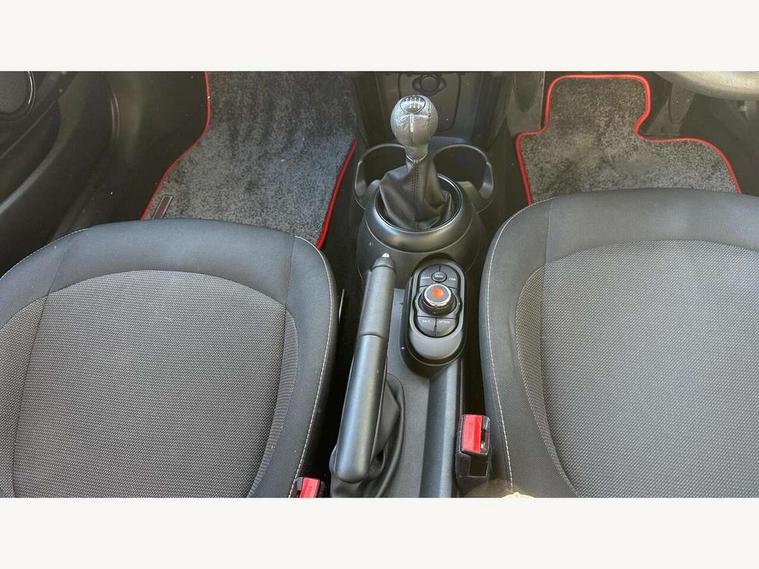 Compatible mobile phone bluetooth with audio streaming, Instrument cluster, Mini E-call, MINI TeleServices, On board computer, Service interval indicator, 6.5" touchscreen with LED ring, FM tuner and DAB digital radio, Automatic headlight activation switch, Body colour fuel filler cap, Chrome border high gloss black slats radiator grille, Dynamic brake lights, Electric front windows, Heated rear window, Heated windscreen washer jets, LED headlight with closed ring and daytime driving lights, Left exhaust tailpipe with chrome finisher, Metal door sill strips with MINI imprint, Model logo Cooper on right of tailgate, Rain sensor window wipers, Rear fog lights, Rear LED lights with union jack design, Rear window wiper, Side scuttle panel with integrated indicator, Sun/heat protection glass, White indicator lenses, 12V Accessory socket in centre console, 4 lashing eyes in luggage compartment, 60/40 split folding rear seat, Chrome interior highlights, Colour line - Carbon black, Cupholders, Front and rear isofix with front passenger airbag deactivation, Glove compartment, Height and length steering column adjustment, Interior lighting with 12 basic colours selectable via toggle switch in roof, Leather gearshift lever and handbrake gaiters, Manual air conditioning, Mechanical seat adjustment, driver seat height adjust, forward/back and front seats backrest, Mini logo projection on floor from drivers exterior mirror, Multifunction steering wheel, Satellite grey headlining, Storage compartments in doors, Sunvisors with vanity mirrors, 3 point seatbelts on all four seats, 6 Airbags - front, side, head and seat belt tensioners, Anti-lock braking system (ABS), DSC - Dynamic Stability Control, Front and rear disc brakes, Hill start assist, Single tone fanfare horn, Tyre pressure monitoring system, Alarm system with tilt sensor, monitoring doors, bonnet interior and tailgate, Electronic vehicle immobiliser, Start/stop toggle with keyless go, Tool kit,