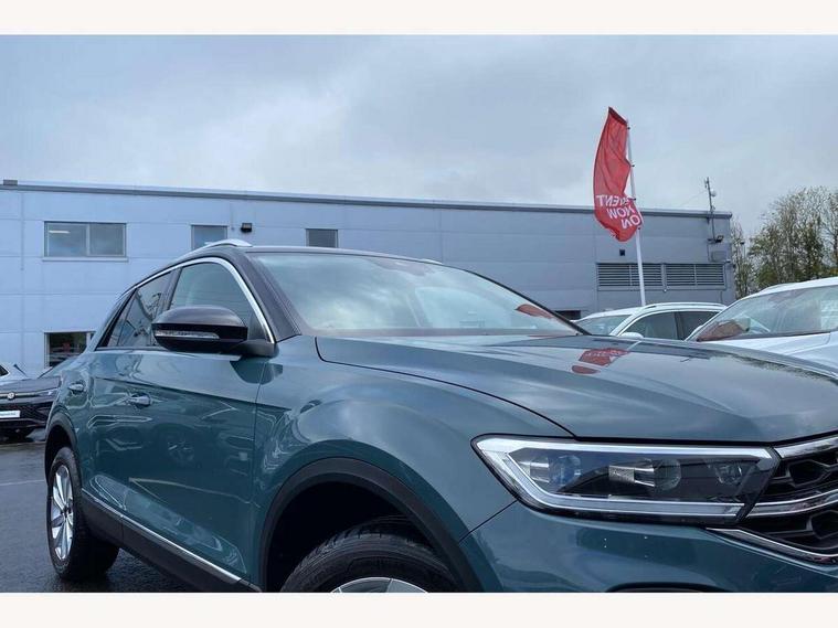10.25" Digital cockpit pro, Bluetooth mobile phone interface, Driver alert system with fatigue detection, Driver tips and journey analysis, Emergency call service, Lane keeping system Lane Assist, Modified key software - reduce switch off time for key status change to Long no motion, Online services, Park assist including front and rear parking sensors, Service interval indicator, Tailgate/trunk lid release from outside, Think blue trainer driver tips and journey analysis, Warning sound and light for front seatbelts unfastened, Wireless app connect, Battery regeneration during braking, Start/stop function with battery regeneration, Diversity antenna for FM reception, Front and rear 6 speakers, Music playback - MP3, WMA and AAC files, Premium USB cable in choice of either Apple or Android smartphone compatibility, SD card slot, Simultaneous pairing of 2 compatible mobile devices, Title and cover art display, We Connect and We Connect Plus functionality, 3rd brake light, Auto dimming interior rear view mirror, Automatic hazard lights activation under emergency braking, Automatic headlight control with LED separate daytime running lights with coming/leaving home function, Body colour sports bumpers with silver metallic underbody fascia, Dynamic headlight range control with self adjusting whilst driving, Extended roof spoiler, Exterior mirrors aspherical on driver side, convex on front passenger side, External USB type C socket and charging sockets, Front windscreen wiper with intermittent wipe and 4 position delay, Heated rear window, LED Plus headlamps, LED rear combination lamps, LED rear number plate lights, LED tail lamp rear comination lamps, Light mode for poor weather, rain, fog or snow, Power windows with comfort operation and circuit breaker, Rain sensor, Rear exhaust tailpipe, Rear fog light on one side and reversing lights on both sides, Rear side wing doors, Rear wash/wipe with intermittent wipe setting, Remote electrically foldable door mirrors, puddle lights and reverse activated passenger's door mirror, 12V power socket in centre console, 3 rear head restraints, 3 seat bench in 2nd row, 4 load lashing points in luggage compartment, Air care climatronic air conditoning system with active combination filter and 2-zone temperature control, Chrome plated radiator grille inserts, air vent surrounds and light switch surrounds, Door and side trim panel with leatherette insert, Drawer under drivers seat, Front + rear carpet mats, Front centre armrest, Front comfort sports seats, Front cupholders x 2, Front footwell illumination, Instrument lighting, white adjustable panel illumination, Interior ambient lighting and surround lighting, Interior light delay, Isofix child seat preparation, Leather gearshift handle, LED interior light with switch off delay/dimmer and 2 front/rear LED reading lights, Load-through provision with cup holder when folded down ('Unsplit rear seat bench, split folding backrest, with centre armrest), Luggage compartment lighting, Non-folding front passenger seat backrest, Single front passenger seat, Storage compartment in left and right luggage area, Storage compartment in rear doors, Storage compartments in driver and front passenger doors, Sunvisors with illuminated vanity mirrors, Variable boot floor, height adjustable and removable, Driver assistance pack without proactive passenger protection - T-Roc, 3 point height adj front seatbelts + pretensioners, 3 point seatbelts in outer rear with ECE label, ABS, Child locks on rear doors, Driver and front passenger airbag with front passenger airbag deactivation, Driver and front passenger safety-optimised head restraints, Drivers seatbelt reminder, Electronic parking brake, Electronic Stability Control (ESC) inc EDL (Electronic Differential Lock) and ASR (Traction Control), Front and rear passengers curtain airbag system including front side airbags, Front assist with city emergency braking and pedestrian monitoring, Front seat side impact airbags, Predictive pedestrian protection, Rear disc brakes, Single tone horn, Tyre pressure loss indicator, Volkswagen roadside assistance, Alarm with interior protection, Anti-theft alarm system with interior monitoring, backup horn, and towing protection, Remote central locking with SAFELOCK, radio remote control with 2 remote control folding keys, Trims for alloy wheels,