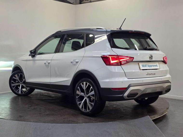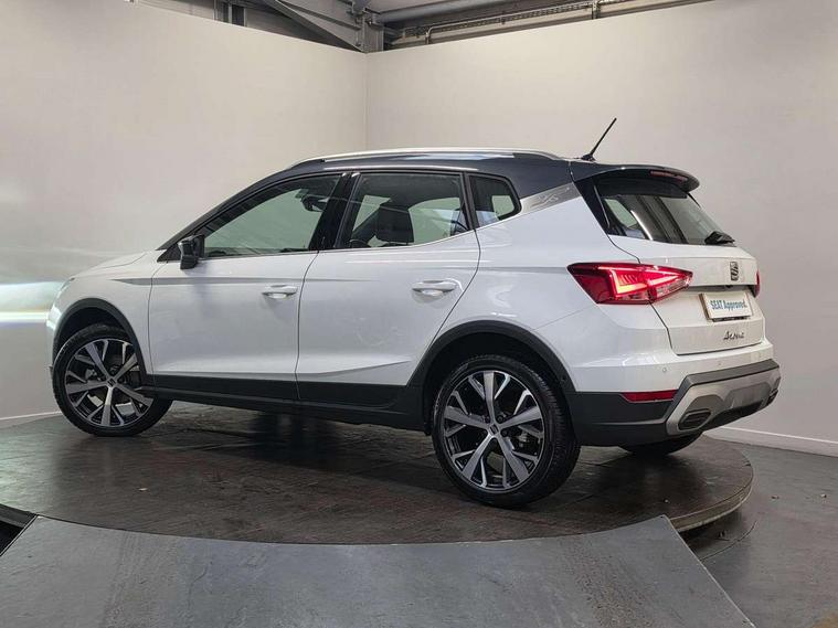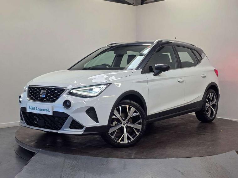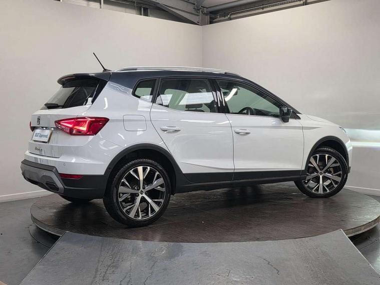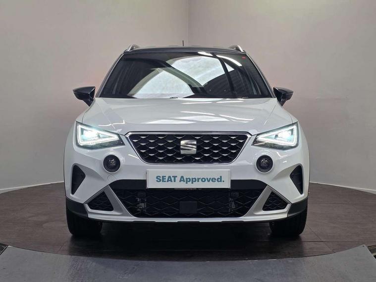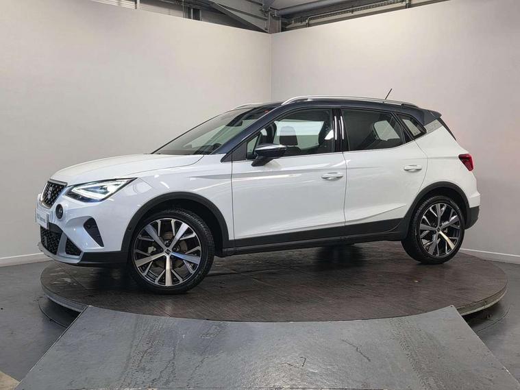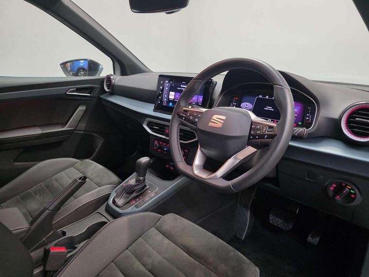 'Lights On' Reminder warning buzzer, 10" Digital cockpit, Digital clock, E-call, Electric speed sensitive power steering, Front parking sensor, Full link smartphone integration with mirror link, wireless apple carplay, Google android auto + USB Type C cable for apple and android devices, Lane keeping system, Low fuel warning light, Outside temperature display, Park assist system, Rear view camera, RPM counter, Trip computer, Wireless phone charger, 6 speakers, 9.2" colour touchscreen with navigation system, voice control and USB port (type c), Bluetooth interface for hands free and audio streaming, DAB digital radio and AM/FM radio, Steering wheel mounted audio controls, Anti theft roof antenna, Auto dimming interior rear view mirror, Automatic activation of hazard warning lights, Body coloured bumpers, Body coloured door handle inserts, Chrome roof rails and window surrounds, Electric front/rear windows, Electrically adjustable, heated and folding door mirrors, Front fog lights with cornering function and rear fog light, FULL LED automatic headlights with dynamic headlight range control, coming and leaving home, LED daytime running lights, Hidden exhaust pipe, LED rear tail lights and licence plate lights, Protective side mouldings, Rain sensing wipers, Rear side wing doors, Rear spoiler, Rear window wash/wipe, Roof colour door mirrors, Third brake light, Visible VIN plate, 2 cupholders, 3 seat bench in 2nd row, 60/40 split folding rear seat, Aircare filter, Black interior roof, Double boot floor, Driver sunvisor with covered mirror + card holder, Dual zone climate control, Front comfort seats, Front courtesy light with front reading lights, Front seat back storage pockets, Gear shift indicator, Heated front seats, Height adjustable front seats, Height/reach adjustable steering column, Illuminated air vent surrounds, Illuminated boot, Instrument lighting with brightness control, Interior ambient lighting, Interior light in footwell, central console and door panel, ISOFIX points in outer rear seats with top tether anchorage points, Leather steering wheel/gear knob/handbrake, Microsuede cloth upholstery, Passenger sunvisor with vanity mirror, Potentiometer, Single front passenger seat, Storage net on centre console, Two front and three rear height adjustable headrests, Interior chrome pack - Arona, Safe and driving pack (S) - Arona, Safety and driving pack (M) - Arona, Storage pack - Arona, 3 point seatbelts on all rear seats, ABS, Active front headrests, Child locks on rear doors, Driver and front passenger airbags with front passenger airbag de activation, front side and curtain airbags, Emergency Brake Assist (EBA) and front assist, Front and rear seatbelt reminder, Hill hold control, Multi-Collision braking, Tiredness recognition system, Traction control, Tyre pressure monitoring system, Alarm with back up horn with tow away protection, Deadlock, Electronic engine immobiliser, KESSY Keyless entry and go, Locking wheel bolts, Remote central locking, Titan black dashboard, 18" Performance Nuclear grey alloy wheels,