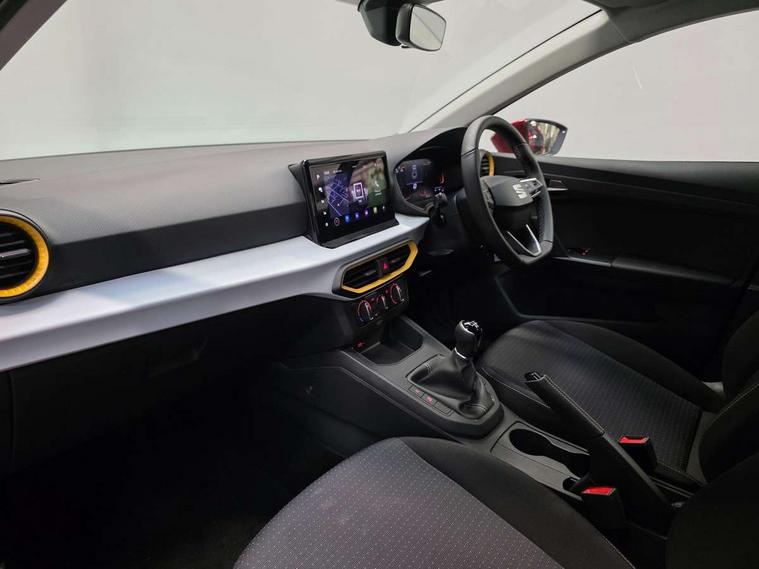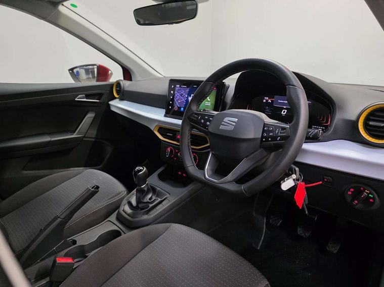'Lights On' Reminder warning buzzer, 8" Digital cockpit, 9.2" touchscreen navigation system with type C USB socket, Voice control and DAB/AM/FM radio, Auto start and stop system, Bluetooth audio streaming with handsfree system, Cruise control, Digital clock, E-call, Full link smartphone integration with mirror link, wireless apple carplay, Google android auto + USB Type C cable for apple and android devices, Lane assist, Low fuel warning light, Outside temperature gauge, Power Steering, Rear parking sensor, Seat connect plus with safety, service, remote and online, SEAT logo boot release, Speed limiter, Traffic sign recognition, Trip computer, Comfort suspension, 6 speakers, Auxiliary input socket, Radio/MP3 player, SD card slot, Steering wheel mounted controls, Anti theft roof antenna, Body colour bumpers, Body colour door handles, Body colour door mirror caps, Dimming interior rear view mirror, ECO LED automatic headlights and LED daytime running lights, Electric front windows, Electric headlight adjustment, Electrically adjustable door mirrors, Front/rear fog lights, Halogen tailights, Rain sensor, Rear side wing doors, Rear wiper, Third brake light, 3 seat bench in 2nd row, 60/40 split folding rear seat, Air conditioning with dust and pollen filter, Chrome interior detailing and grey headlining, Cloth upholstery, Comfort seats, Front courtesy lights, Front cupholders x 2, Front reading lights, Gear shift indicator, Glovebox, Height adjustable front and rear headrests (five), Height adjustable front seats, Height/reach adjust steering wheel, Illuminated boot, Instrument lighting with brightness control, Isofix, Leather multifunction flat bottomed sports steering wheel, Passenger sunvisor, Single front passenger seat, Sunvisors with mirror and driver side card holder, Safety and driving pack (S) - Ibiza, 3 point seatbelts on all 3 rear seats, ABS, Active front headrests, Child locks on rear doors, Electronic stability control, Energy recovery system, Front assist forward collision warning and autonomous emergency braking, Front driver and passenger side airbags with curtain airbag and front passenger airbag deactivation, Hill hold control, Multi-Collision braking, Seat belt reminder for front and rear seats, Tiredness recognition system, Tyre pressure monitoring system, Electronic engine immobiliser, Locking wheel bolts, Remote central locking + deadlocks, 16" Design machined alloy wheels in Nuclear grey,