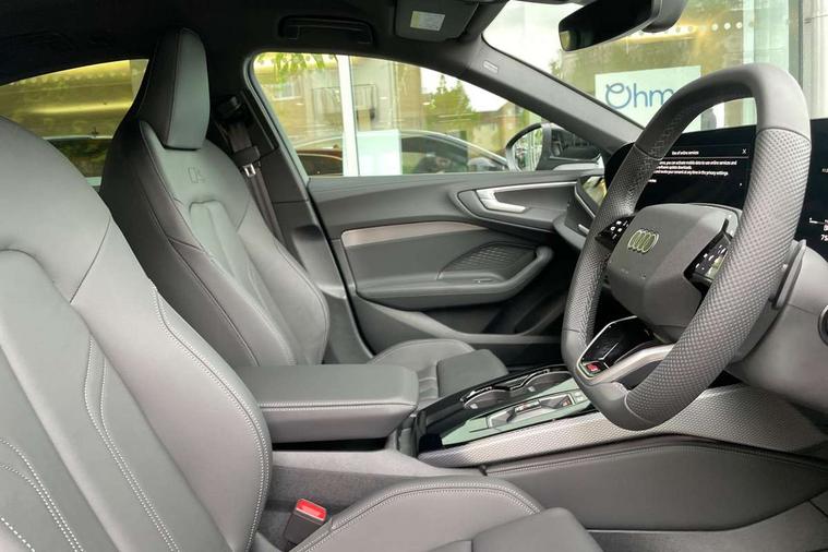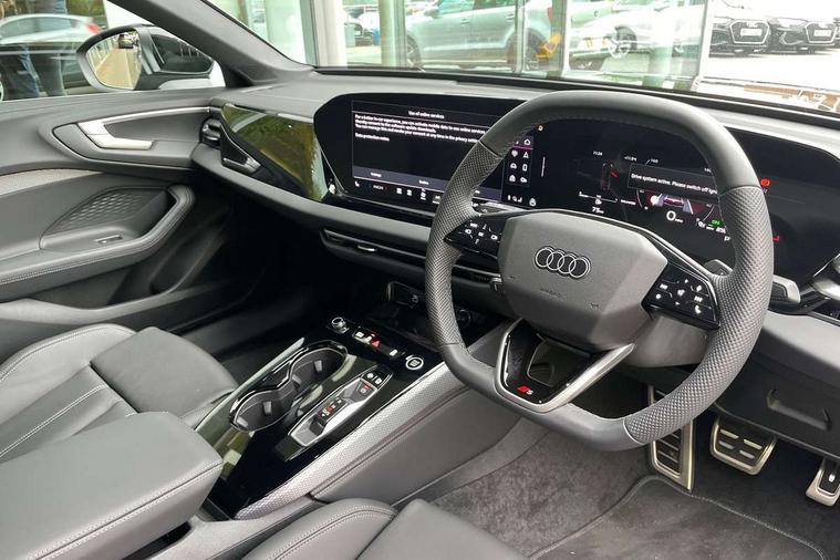 Adaptive cruise control, Advanced driver attention and fatigue montior, Audi application store, Audi assistant, Audi connect emergency call and service, Audi drive select, Audi smartphone interface, Audi virtual cockpit plus with 11.9" OLED colour display, Automatic start/stop system with coasting functionality, Camera based traffic sign recognition, Intersection assist, Lane departure warning, MMI navigation plus with high resolution 14.5" OLED touchscreen colour display, Park assist plus, Parking system plus with 360 display, Progressive steering with servotronic, Rear view camera, Swerve assist and turn assist, Traffic sign based speed limiter, Sports suspension lowered by 20mm, 2 USB-C ports in both the front and rear, Audi sound system impressive sound with 10 loudspeakers including centre speaker and subwoofer, 6-channel amplifier with a total output of 180 watts, DAB digital radio reception, Smartphone compartment with wireless charging, Aluminium window trims, Auto dimming rear view mirror, Body colour door mirrors, Door mirrors - electrically adjustable, heated, folding and auto dimming on both sides, Front and rear electric windows, Front door sill trims with aluminium inlays, illuminated with 'S' logo, High beam assist, LED headlights Plus incl. digital daytime running lights, turning light, all-weather light, motorway light, manouevring light and intersection light, LED rear lights pro incl. dynamic rear indicators and illuminated light strip with animated coming and leaving home function, LED third brake light, Privacy glass, Rear and side windows with heat insulating glass, Rear boot, Rear side wing doors, S Line badges on the front wings, S line bumpers, radiator grille and diffuser in phantom black and diffuser insert in matt anthracite, White rhombus logo projection light in exterior mirrors, Windscreen with acoustic glazing, 3 rear headrests, 3 seat rear bench, 3 spoke leather steering wheel with multi-function buttons with touch control, flattened on top and bottom, with S badging and contrast stitching, 3-zone automatic climate control, 40:20:40 split folding rear seat bench with centre armrest and cup holders, Comfort front centre armrest, Front and rear floor mats, Front seats with manual adjustment for position and 4-way electric lumbar support, Front sport seats with integrated headrest and S embossed logo, Headlining in black cloth, Heated front seats, i-Size child seat mounting on the front passenger side and outer rear seats, i-Size and top tether on the outer rear seats, Luggage compartment lid, electrically opening and closing, Manual steering column height and depth adjustment, Single front passenger seat, Stainless steel pedals and footrest, Steering wheel grips in perforated leather and shift paddles, Ambient lighting package plus - A5, 3x3 point rear seat belts, Driver airbag, Electric child safety locks, First aid kit with warning triangle and vests, Front emergency brake assist, Front passenger airbag, Front passenger airbag deactivation, Front side airbags with head airbag system and front interaction airbag, Hill hold assist, Seat belt monitoring with rear seat occupant reminder, Tyre pressure loss indicator, Anti theft alarm, Anti-theft wheel bolts, Keyless Go, Accent surfaces and control buttons in gloss black, Black dashboard with contrast stitching, Inlays in matt brushed aluminium with linear embossing, anthracite, Softwrap in leatherette with contrast stitching, Upper and lower interior elements in leatherette, Tyre repair kit,