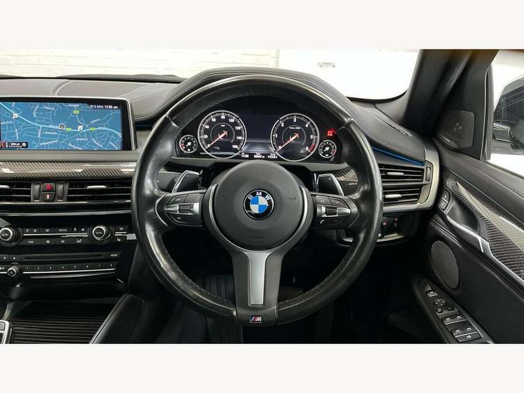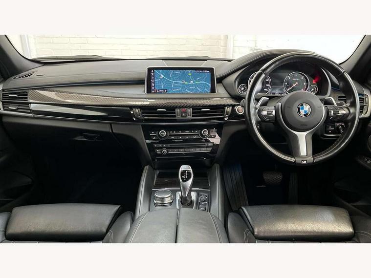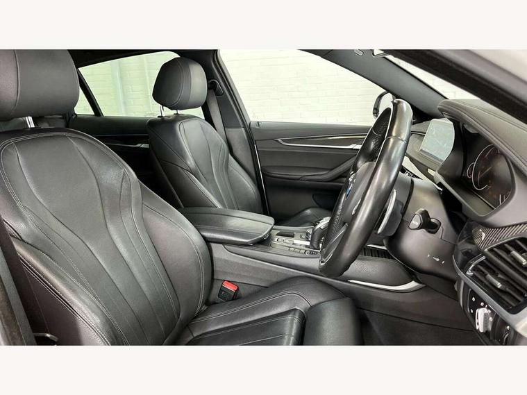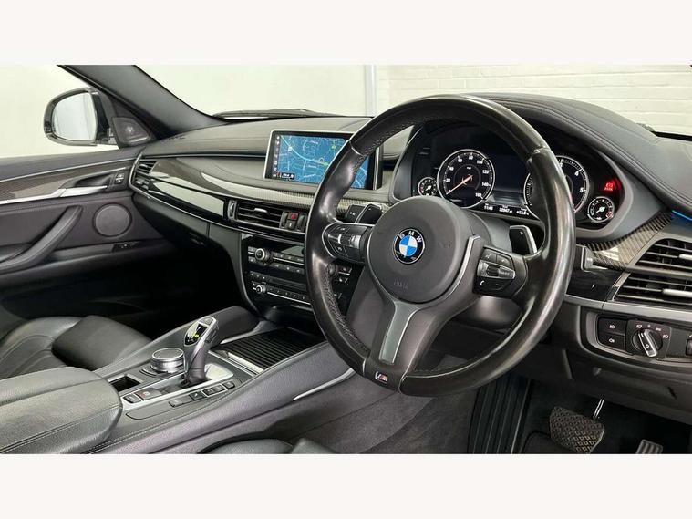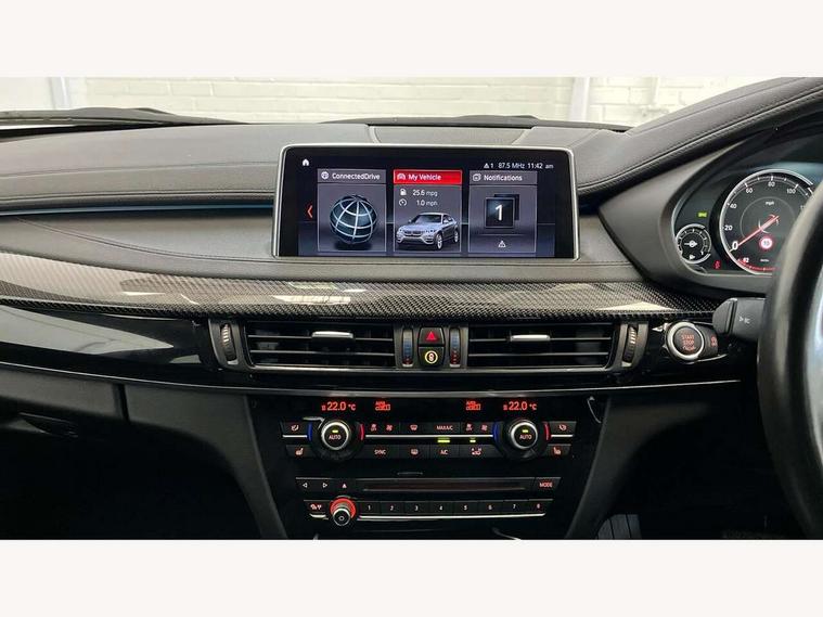 20GB Hard drive, 6.5" colour display screen, BMW apps interface, BMW information plus, BMW remote services, BMW Teleservices, Brake force display, Check control system, Digital cockpit, Electric tailgate release, Front/rear park distance control, Head up Display, Lights on warning, On board computer, Outside temperature gauge, Personal Profile, Professional multimedia navigation system, Service interval indicator, Servotronic PAS, Stop/start button, Voice control system, Diesel particulate filter, Auxiliary point for auxiliary devices, BMW professional twin tuner radio with single CD player and MP3 CD playback facility, DAB Digital radio, Auto dimming and folding door mirrors, Auto dimming rear view mirror, Body colour bumpers, Body colour door handles, Body colour door mirrors, Chrome exhaust tailpipes, Clear indicator lenses, Door mirror integrated indicators, Double kidney grille with high gloss black surround and black slats, Downlights in exterior door handles, Electric + heated aspheric door mirrors, Electric front/rear windows with anti-trap, Electric headlight adjustment, Follow me home headlights, Green tinted glass, Headlight washer jets, Heat insulated glass, Heated washer nozzles, High gloss black air breather, M aerodynamic body kit, Metallic paint, Rain sensor with auto light activation system, Stainless steel sill finishers, Sun protection glass, Xenon headlights, 12V accessory power point in centre console, 12v socket in front centre armrest storage compartment, 12V socket in luggage compartment, 2 x 12V socket in rear centre console, 3 spoke sports leather multi-function steering wheel with gear shift paddles, 40:20:40 split folding rear seats, Ambient interior lighting, Anthracite Velour floor mats, Boot lashing points, Door sills with M logo, Driver and passenger knee pads, Electric front seats + driver memory, Front and rear cupholders, Front armrest with storage bin, Front reading lights, Front/rear courtesy lights with soft on/off dimming, Full black panel display, Heated front seats, Height adj rear head restraints, Illuminated glovebox with lock, Isofix child seat preparation, LED footwell lights, Luggage compartment cover, removable, Reach + rake adjustable steering column, Storage bins on all doors, Sunvisors with illuminated vanity mirrors, Tilt/height adjustable front head restraints, Toolkit located in luggage compartment, Extended storage pack - X6, 3 rear 3 point seatbelts, ABS, ADB - Automatic Differential Brake, Automatic Stability Control (ASC), BMW emergency call, Brake energy regeneration, Child locks on rear doors, Cornering brake control (CBC), Crash Sensor - activates hazard/interior lighting + unlocks doors, Driver/Front Passenger airbags, DSC+, Dynamic brake control, Dynamic Traction Control - DTC, Electronic brake force distribution, Electronic parking brake, Front and rear head airbags, Front passenger airbag deactivation, Front passenger seat occupancy sensor, Front side airbags, Height adjustable front seatbelts, Hill descent control, Hill start assist, Pyrotechnically pre-tensioned front seatbelts, Seat belt force limiter, Side impact protection, Tyre pressure monitor, Warning triangle and first aid kit, Locking wheel nuts, Remote central locking, Thatcham cat 1 remote alarm/immobiliser, 21" M Double spoke light alloy wheel - style 599M, Run flat tyres,