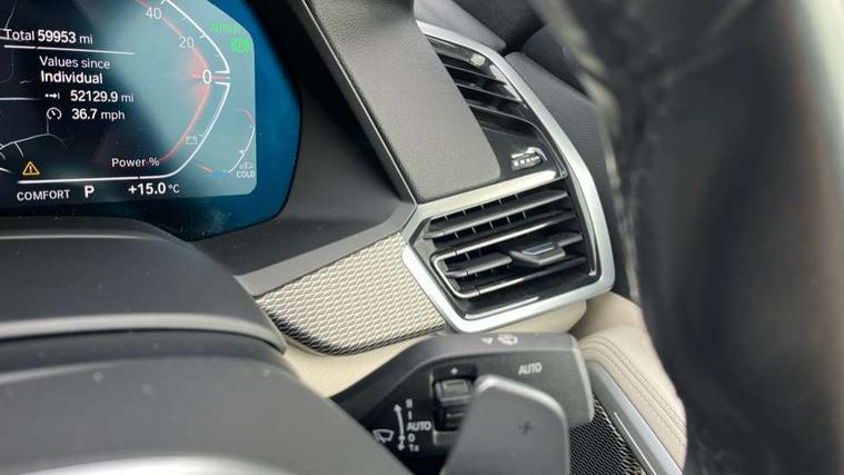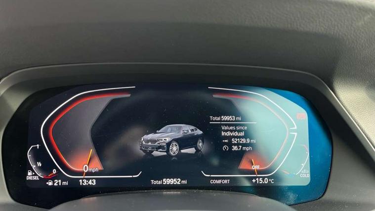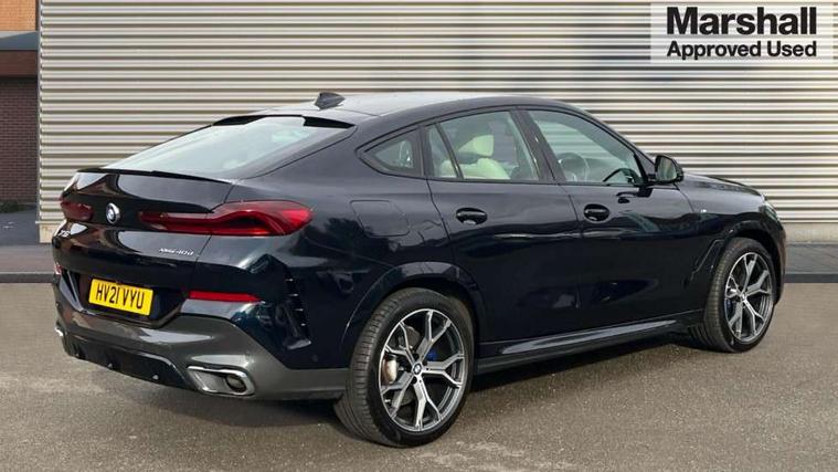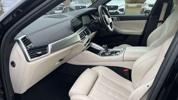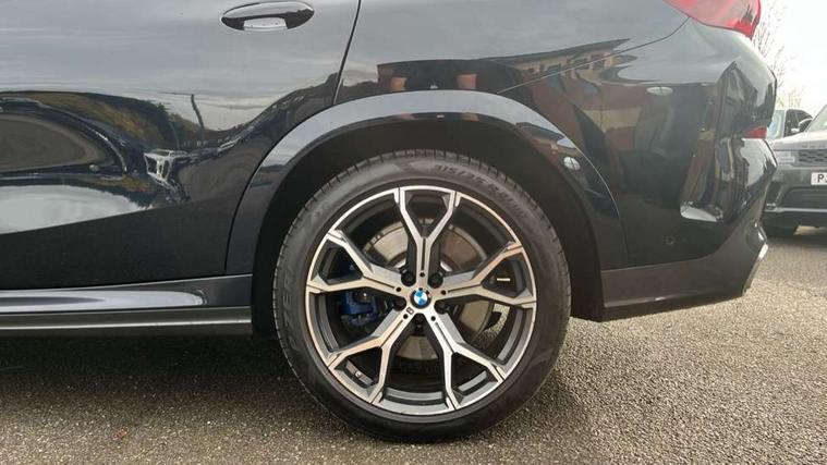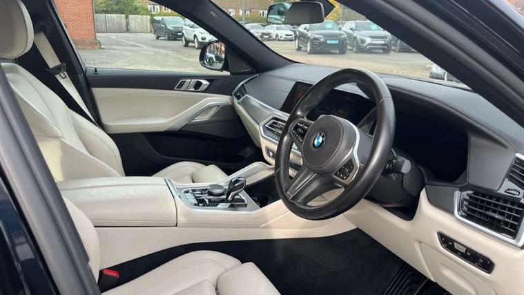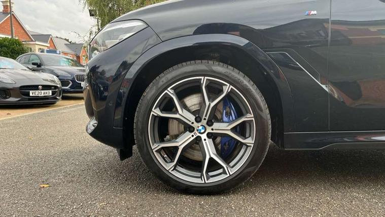 50GB hard disc drive (HDD) memory, Active guard plus, Attentiveness assist, Automatic tailgate two part with top hinged section open and manual bottom hinged section, BMW ConnectedDrive online services, BMW digital live cockpit professional - 12.3" digital instrument panel and 12.3" CID, with touch/voice command, BMW legal emergency call, BMW Teleservices, Brake force display, Brake pad wear indicator warning light, Cruise control with brake assist, Enhanced bluetooth hands free facility with Telephony wireless charging, Front/rear park distance control (PDC), iDrive touch controller with shortcut buttons, Lights on warning, Oil sensor for level and grade, On board computer inc. average speed, fuel consumption, liquid crystal Info display, journey computer, outside temperature display, personal profile, Service interval indicator, Speed limit info display, Speed limiting function, Wi-Fi hotspot, 48V Mild hybrid technology, Diesel particulate filter, Double wishbone front axle, Drive performance control with ECO PRO comfort + sport mode, Eight speed steptronic sport automatic transmission and gearshift paddles on the steering wheel, Safety battery terminal clamp, Variable vane geometry, DAB Tuner enables digital radio reception, Favourite buttons, Hi-Fi loudspeaker system, USB connection, USB type A 1.5A in cupholder, USB Type C 3A in centre armrest, Active Air Stream kidney grille with high-gloss chrome, Adaptive air flap control bar in high-gloss black, Automatically dimming rear view mirror, BMW individual exterior line aluminium satinated window frame and window guide rail in front door/pillar trim/door mirrors in high gloss black, BMW Individual high gloss shadow line, Body colour bumpers, Body colour door handles, Dynamic brake lights with LED technology, Exhaust tailpipes - single, left and right with Chrome finisher, Follow me home headlight function, Front and rear electric windows with open and close fingertip control, anti trap facility and comfort closing, Heated windscreen washer jets, High beam assistant, High gloss black outer and central air intakes on front bumper with pearlescent chrome finish, High gloss black Side elements, LED daytime running lights, LED fog lights, LED rear lights, M aerodynamic body styling, M designation on left and right front side panels, M Sport exhaust system, Rain sensor with automatic headlight activation and windscreen wiper control, Satin aluminium side window graphic, Third brake light in rear spoiler, Welcome light carpet, X6 on left tailgate, xDrive designation on right tailgate, 12V - Power sockets with 2x centre console and 1x luggage compartment, 40:20:40 split folding rear seats, Centre and rear interior light, Child seat ISOFIX attachment with rear outer seats includes top tether, Compartment in front of cupholder, Electrical steering column with adjustable height and length with activation and control on the steering column, Foldable rear centre armrest with 2 cupholders and storage compartment, Front and rear cupholders x 2, Front and rear door pockets, Front and rear door sill inlays with illuminated BMW M designation, Front and rear side armrest integrated into door trim, Front reading lights, Light inside glove compartment, Lockable glove compartment, Luggage compartment floor panel with integral storage tray, Luggage compartment lighting, M leather steering wheel, M specific key, M specific velour floor mats, Make-up mirror lights, Multifunction controls for leather steering wheel, Multifunctional hooks, Rear head restraints, Seat back with flap pocket, Storage tray and compartment with cover in centre console, Sunvisors with illuminated vanity mirrors, Toolkit located in luggage compartment, Ambient light interior pack - X6, Connected Package Professional - X6, Expanded exterior mirror pack with electric folding door mirror - X6, Non-smokers pack - X6, 3 rear seatbelts, Airbags - driver/front passenger, rear and side, first and second row seats head airbags, front passenger seat airbag deactivation + knee airbag, Anti-lock braking system (ABS), Automatic Stability Control (ASC), Brake drying, Brake energy regeneration, Brake fade compensation, Braking pre-tensioning, Cornering brake control (CBC), Crash sensor activating central locking release, hazard warning lights, fuel cut off, interior lighting + activation of safety battery terminal clamp, Deformation zones - front and rear with door reinforcements and bumpers up to 2.5 mph, DSC - Dynamic Stability Control, Dynamic brake control, Dynamic Traction Control - DTC, Electromechanical parking brake with automatic drive away release and auto hold function, Electronic brake force distribution, Front and rear brake discs with interior ventilation, Front and rear seatbelts with seatbelt stopper, seatbelt tensioner for front and outer rear seats and belt force limiter, Front head restraints with anti-whiplash, Hill start assistant, Integrated brake system, M Compound brake in high gloss blue, M Sport braking system, Mechanical child proof lock on rear doors, Passive protection for pedestrians, Seat occupancy detection for driver and passenger side, Side impact protection, Two tone horn, Tyre pressure monitoring system, Warning triangle and first aid kit, Closing system with central locking, Driver and front passenger door centre lock switch, Locking wheel bolts, Thatcham 1 alarm system with remote control and engine immobiliser, Start/stop toggle diamond shaped trim finisher in pearl chrome,