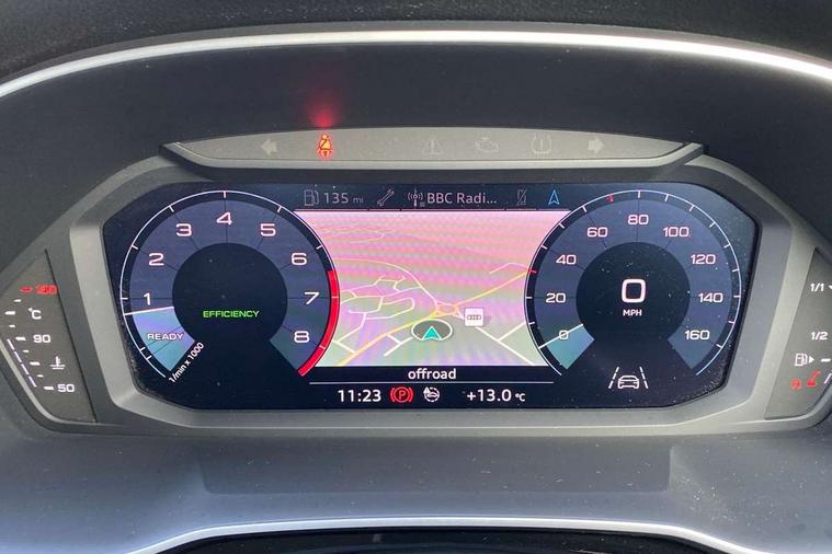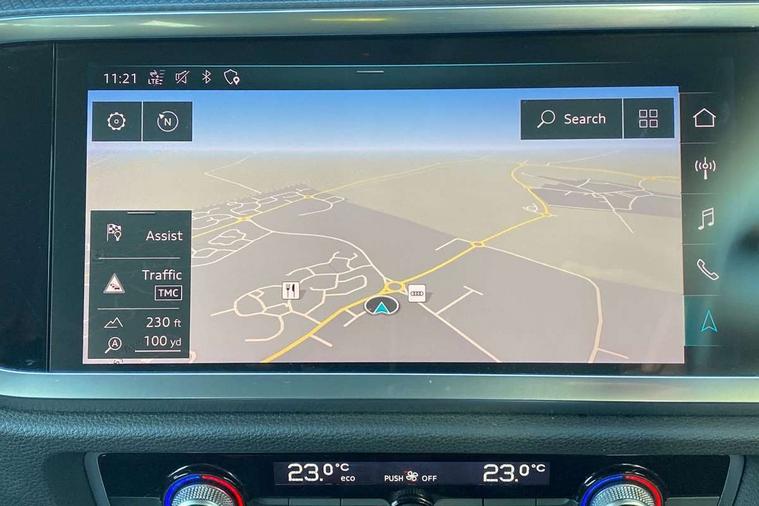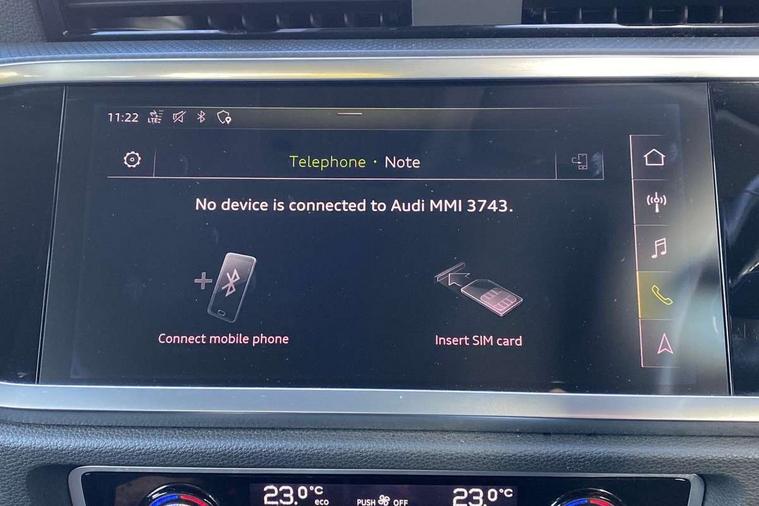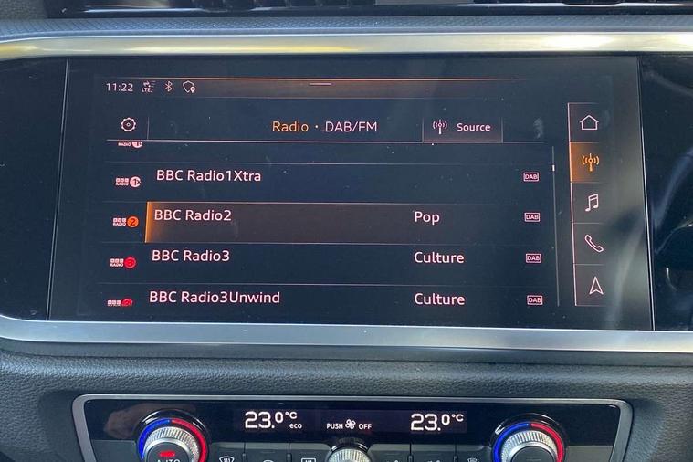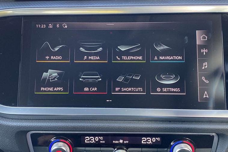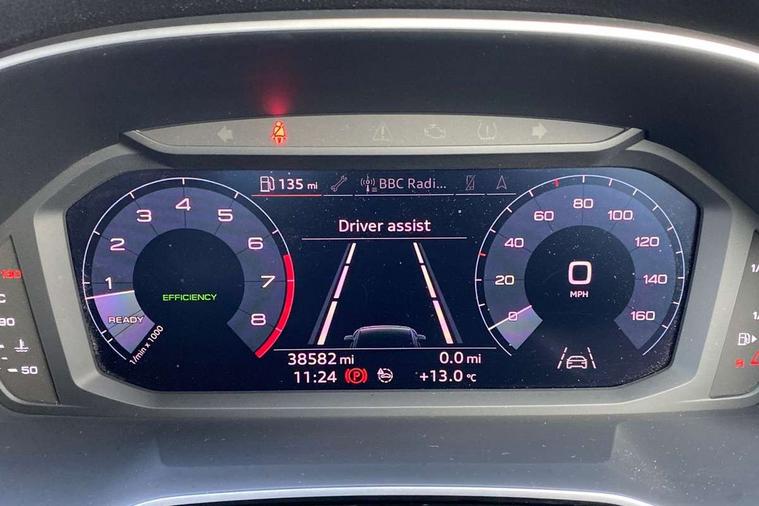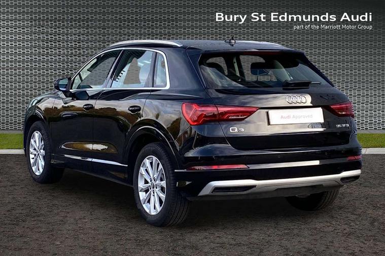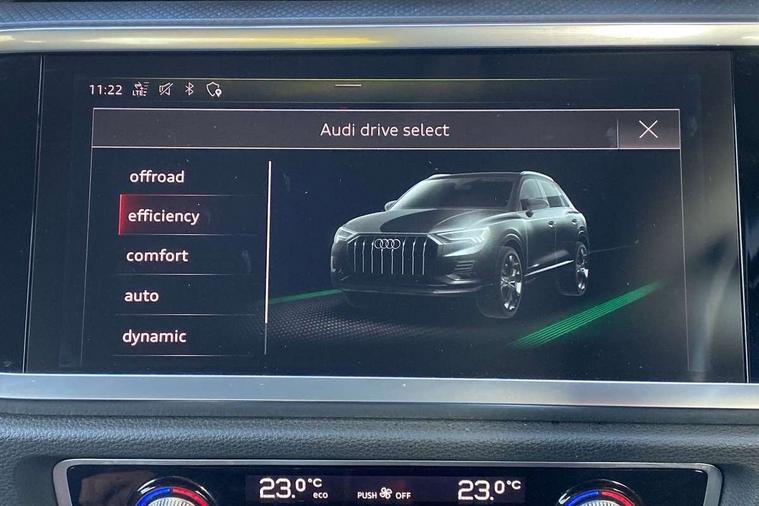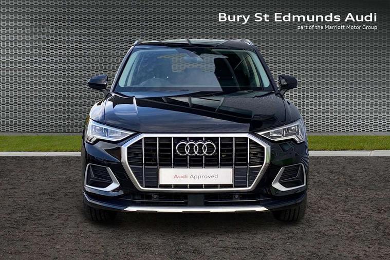 Audi connect safety and service (e-call), Audi drive select, Audi lane departure warning, Audi side assist, Audi smartphone interface, Audi Virtual Cockpit - 10.25" display, Bluetooth interface, Camera based traffic sign recognition, Cruise control + speed limiter, MMI Navigation Plus with high resolution 10.1 inch touchscreen colour display, Power operated tailgate, Progressive steering, Rear parking sensors, Service interval indicator, Start stop system with recuperation, Voice control system with natural language interaction, Sports suspension, 1 x USB type C and 1 USB type A charging points, 6 passive loudspeakers, DAB digital radio module, Acoustic windscreen, Aluminium window trim, Auto dimming frameless rear view mirror, Bumpers and underbody protection in contrasting manhattan grey paint finish, Diffuser grille in grained matt black, Diffuser trim in manhattan grey metallic, Door sill trims with illuminated aluminium inlay, Electrically folding, adjustable and heated door mirrors with integrated LED side indicators and kerb view function for passenger side, Front and rear electric windows, Front fog lights, Front side air inlets in Manhattan grey metallic, Grille surround in aluminium silver matt, High gloss black finish B and C pillars, Honeycomb design radiator grille in matt titanium black, LED headlights with LED daytime running lights and dynamic rear indicator, LED rear lights, Rain and light sensors, 12V socket in rear centre console, 40:20:40 folding with manual adjustment for 60:40 forwards/backwards position and backrest angle, Adjustable rear seat bench/backrest, Dual zone climate control, Front and rear floor mats, Front and rear headrests, Front and rear roof module including reading lights, Front centre armrest, Glove compartment lighting, ISOFIX child seat mounting and Top Tether with front passenger airbag deactivation, Luggage compartment light, Lunar silver cloth headlining, Manual front seats with height adjustment, Stainless steel luggage compartment sill finisher, Non smoking pack - Q3, 3x3 point rear seatbelts, 6 airbags - Driver, front passenger, curtain and side windows, Audi pre-sense front with pedestrain and cyclist recognition, Electrically operated child locks on rear doors, Electromechanical parking brake, Electronic stabilisation control including ABS, ASR and EDL, Hill descent control, Hill hold assist, Pre sense basic, Seatbelt monitoring, Tyre pressure warning, Warning triangle and first aid kit, Anti theft alarm, Anti theft wheel bolts, Remote central locking, Detail dashboard around MMI touch colour display in glass look, black with surround in aluminium look,