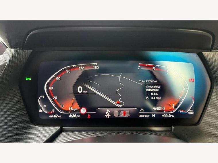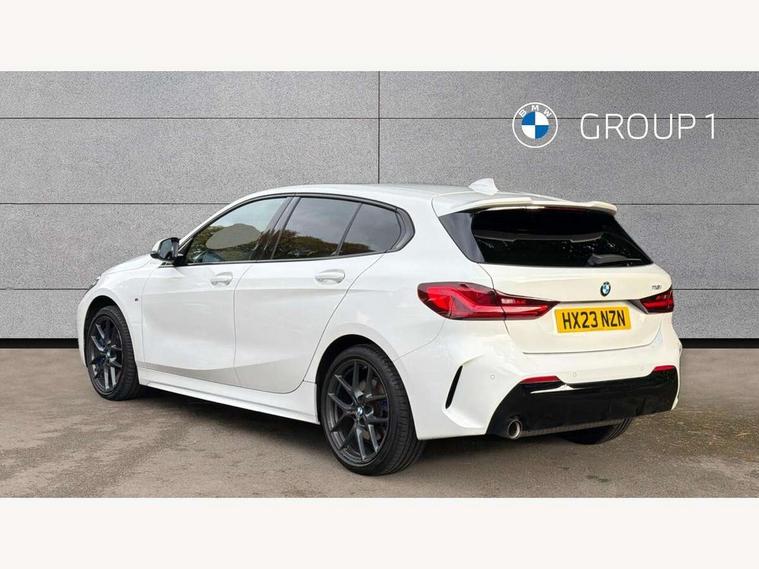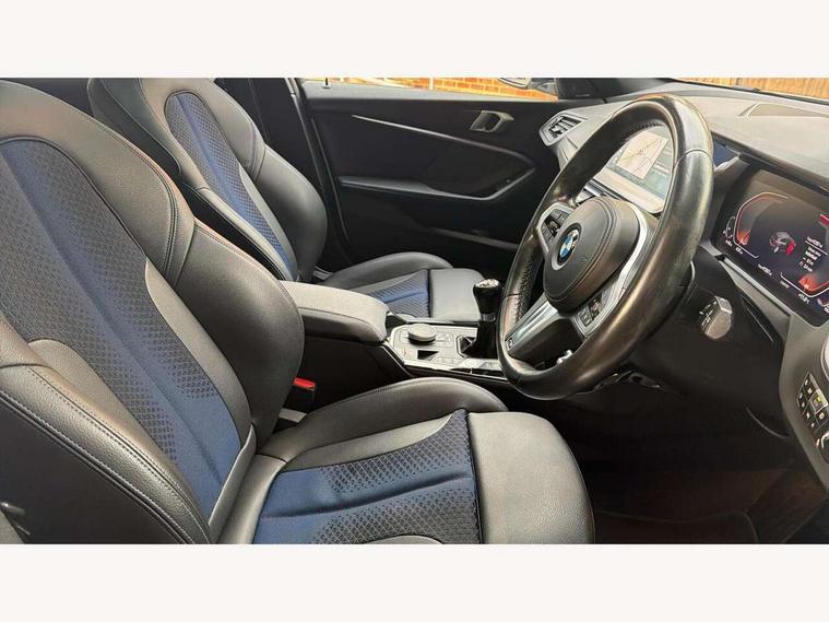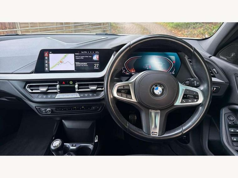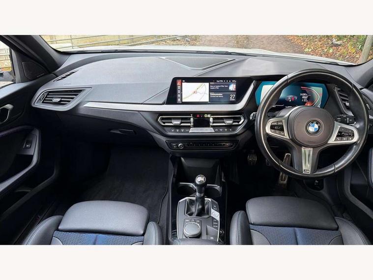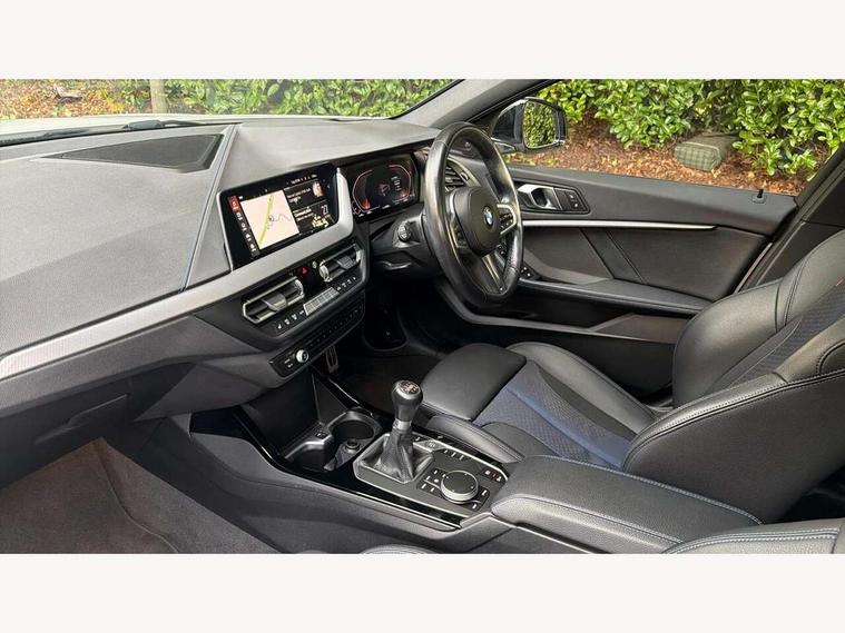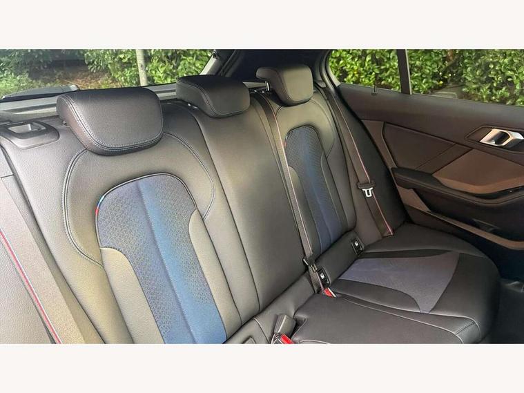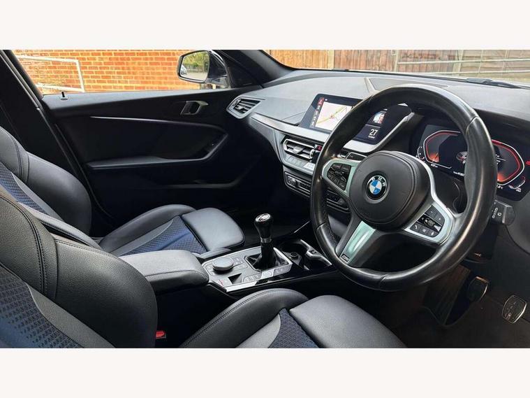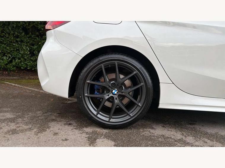 Active guard plus, Attentiveness assist, BMW ConnectedDrive online services, BMW Teleservices, Check Control warning system for monitoring of lights and door/luggage compartment open warning, Cruise control with speed limiter, Eco pro mode, Front axle single joint with specific axle kinematics to minimise drive influences on steering + provide increased rigidity agile driving behaviour, Integrated owners handbook, Lane departure warning system, Oil sensor for level and grade, On board computer, Optimum shift indicator, Personal Profile, Pull away assistant, Rigidly mounted rear subframe - Multi link construction with separate spring / damper configuration and excellent driving characteristics, Speed limit Info including no-overtaking indicator, Aluminium lightweight construction, Anti roll bar front and rear, Balancer shaft, Double VANOS twin scroll turbocharging system, Drive Performance Control, Electronic differential lock, High precision injection, M sport suspension, Petrol Particulate Filter, Twin tube gas filled shock absorbers with degressive characteristic curve, VALVETRONIC engine management, DAB Digital radio, Auto dimming rear view mirror, Automatic headlight beam throw control, Automatic windscreen wipers and automatic headlight, Body colour door handles, Body colour mirror caps, Body colour roof trims, Chrome 'M' logo side designation, Chrome exhaust twin tailpipes round 90mm in left, Chrome kidney grille frame with Satin Aluminium struts, Direction indicator side lights in exterior mirrors, Electrically adjustable exterior mirror with mirror adjustment switch on drivers armrest and aspheric on driver side, convex on passenger side, Fading support, Folding side mirrors with auto dimming/folding wing mirrors with auto dimming, Follow me home headlights, Front and rear bumper system with replaceable deformation elements, Front and rear electric windows with open and close fingertip control, anti trap facility and comfort closing, Front door sill finishers in black plastic with M designation in metallic look, Green tinted heat protection glazing, High gloss shadowline window frame, Recess cover mirror frames and B/C pillar embelisher trim, High level third brake light, Integrated front windscreen with washer jets, LED daytime running lights, LED eyebrow turn indicators, LED front fog lights, Lightweight engineering, Matt black air guide grilles, Matt black wheel arch trim, Model designation on electric bootlid, Nearside reverse light in rear light cluster, Preparation for high beam assistant, Rear fog lights, Rear side wing doors, Rear window wiper, Shark fin antenna, Trailer stabilisation logic, Visible VIN plate, Welcome lighting, 12V power socket in front centre console with blanking plug, 3 rear seat head restraints, 3 seat bench in 2nd row, 3 spoke sports leather steering wheel in black leather with black stitching and decorative finisher in pearl chrome, specific M badge + leather knob, Anthracite headlining, Black boot net with lashing eyes, Cargo function on 2nd seat row, Child seat ISOFIX attachment for two outer rear seats and front passenger seat with anchorage points, Conditioned based service, Driver and front passenger backrest net on rear, Driver and front passenger seat heating, Driver side folding compartment in instrument panel, Folding rear clothes hook, Four grab handles integrated in roof lining, Front and rear door pockets with bottle holders, Front and rear side armrest integrated into door trim, Front armrest, Front sports seats, Gearshift lever with M designation, Glove compartment, Height adjustable front head restraints, Luggage compartment for bag hooks on left and right, foldable luggage compartment liner and four lashing eyelets, Manual adjust steering wheel, Multi-function controls for steering wheel, Single front passenger seat, Storage compartment in centre console, Storage compartment in luggage compartment, Stowage of the parcel shelf in luggage compartment trim, Sun visors with vanity mirrors and insert tab, Two front centre console cupholders, Two zone automatic air conditioning, Type C two USB ports in rear centre console, Velour floor mats, Additional interior lighting pack - 1 Series, BMW live cockpit professional pack- 1 Series, Connected pack professional - 1 Series, Interior lights pack - 1 Series, M Sport exterior styling aerodynamics pack - 1 Series, 2 tone horn, 3 point seatbelts on all seats, front pyrotechnic belt tensioners, stopper and belt force limiters, rear coded belt buckles, Airbags - Front driver/passenger, front and rear curtain head protection, front side, manual deactivation of front passenger airbag, Anti lock braking system (ABS) with brake assist, BMW emergency call, Brake drying, Braking readiness, Child proof locking system in rear door, City braking function, Comfort modes, Cornering brake control, Crash sensor activating of airbags, Unlocking doors, hazard warning lights, interior light, safety battery terminal, Driver and front passenger seat belt security check, Dynamic stability control + (DSC+), Dynamic Traction Control - DTC, Electrically operated hand brake, Front and rear disc brakes, Seatbelt warning, Side impact protection, Tyre pressure monitoring system, Warning triangle and first aid kit, Central locking switch for all doors, fuel filler cap and luggage compartment, Deadlocking function system to all doors, Drive away locking system on all doors and luggage compartment with de-activated in iDrive settings, Locking wheel bolts, Remote control with integrated key with High-gloss Black inlay and M designation and 1 button for open/ close lock, window, open luggage compartment, Start/stop button illuminated in centre console with keyless engine start and auto start stop deactivation button, Thatcham Cat.1 alarm and immobiliser, Wheel slip limitation close to the actuator (ARB), Contrast stitching on instrument panel, 18" Burnished M double spoke bi-colour alloy wheels finished in orbit grey - style 819M