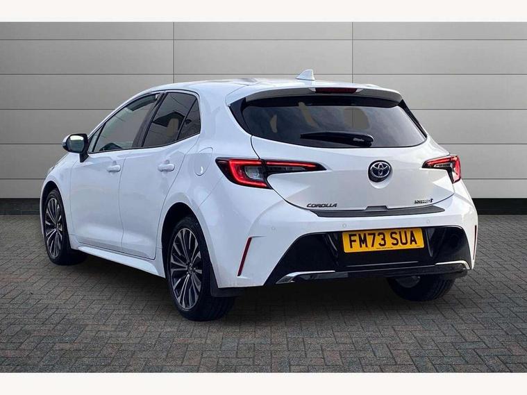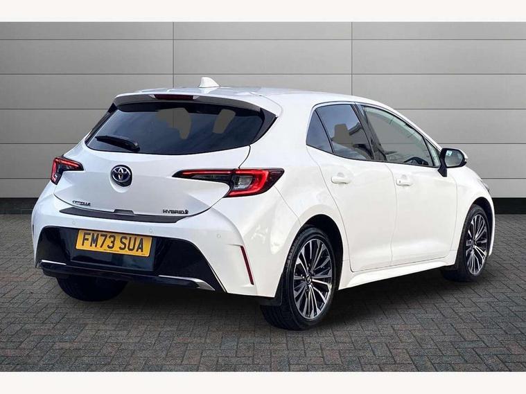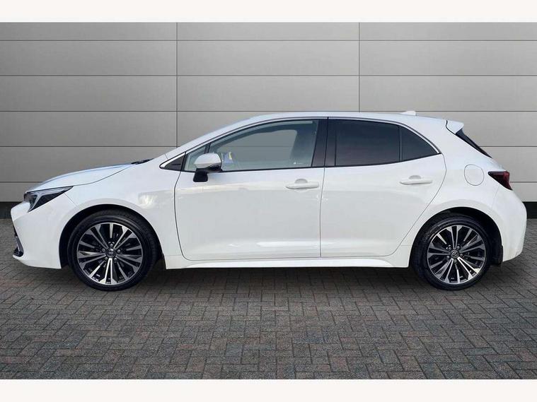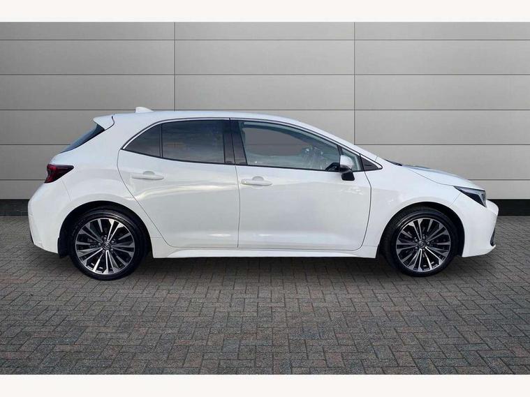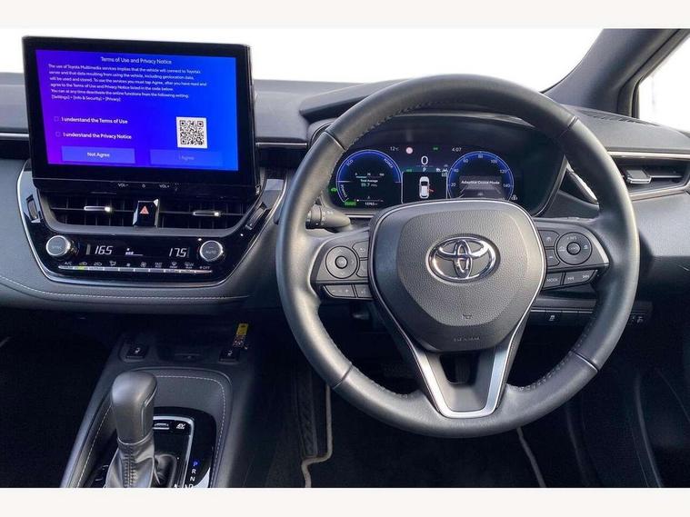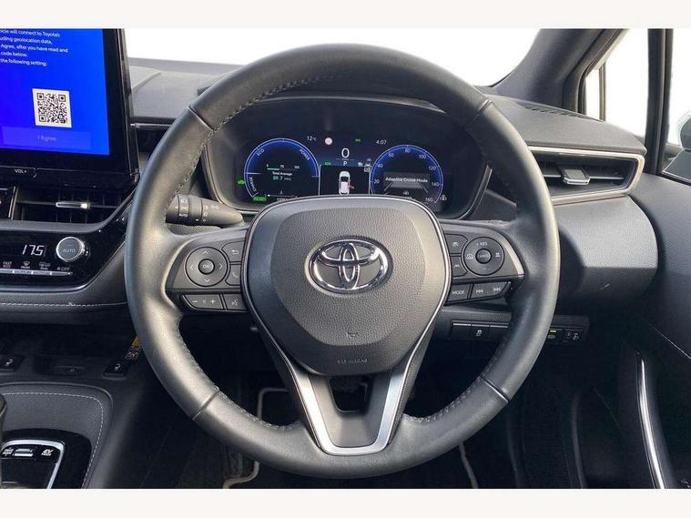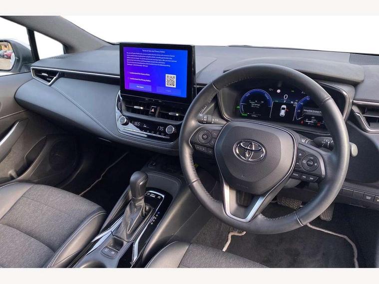10.5" Multimedia display screen, Attention assist, Bluetooth telephone connectivity, Connected car functionality upgrade, tracker, remote status and e-care, Drive mode select (Eco, Normal), E-call, Electrically assisted power steering, EV drive indicator, Front and rear parking sensors with auto brake, Full Digital 12.3" TFT Digital Combimeter, Key reminder warning, Lane Departure Alert (LDA) switch on steering wheel, Memory on adjustable speed limiter, MyT connected services, Proactive driving assist (PDA), Reversing camera, Smartphone integration with Apple CarPlay and wired android auto, Tailgate, Toyota remote services, Toyota smart connect navigation, Wireless charger, Gasoline particulate filter, Vehicle Stability Control (VSC), 6 speakers, AM/FM radio, DAB Digital radio, Front USB-C in dashboard, Smart voice assist/ Voice recognition, USB and Aux in connectors + 12V front outlet, Anti-jam protection on power windows, Auto up and down function on all power windows, Automatic folding mirrors, Automatic headlights with high beam assist, Black centre and side air vents, Black metallic meshed front grille, Black toyota logo in front, Body coloured bumpers, Body coloured door mirrors, Body coloured front spoiler, Body coloured outside door handles, COROLLA alloy door scuff plates, Electrochromatic mirror, Follow me home headlights, LED daytime running lights, LED dual beam projector headlights, LED front fog lights, LED High mounted stop light, LED multi reflector in headlights, LED rear combi lights with LED lightguide, Manual headlight levelling system, New grille pattern, Noise reduction layer on windscreen, Piano black diffuser, Power adjustable heated door mirrors, Power front windows, Power rear windows, Privacy glass with UV filter, Rain sensing wipers, Rear bumper decoration with chrome plated inserts, Rear side wing doors, Rear under guard with chrome ornament, Rear window defogger, Rear window wiper, Reverse tilting door mirrors, Roof spoiler, Satin chrome insert on front air vents, Satin chrome insert on front door assist grips, Shark fin antenna, Tailgate release with push button, Time adjustment on intermittent wiper, Turning signal integrated indicators in door mirrors, Unique lower skirt, Unique side rocker with black insert, UV-filter on driver and passenger windows, 2 Shopping bag hooks in luggage compartment, 3 rear headrests, 3 seat bench in 2nd row, 3 spoke leather steering wheel with satin insert + gear knob, 4 tie down hooks in luggage compartment, 60/40 split folding rear seat, Adaptive cruise control (ACC) switch on steering wheel, Adjustable speed limiter switch on steering wheel, Audio, multimedia and telephone switches on steering wheel, Black armrest on centre console box, Black gear shift console, Boot light, Centre room light, Driver and front passenger personal light, Driver and passenger assist grip, Driver and passenger sun visor with mirror and light, Dual zone automatic air conditioning with ECO mode switch, Fabric/synthetic leather upholstery, Front and rear cup and bottle holders, Front door pockets, Front head restraints, Front passenger seat, Front sliding synthetic leather armrest, Heated seats, Illuminated entry system in room lamp, ISOFIX seat fixing (2 fixings on rear outer seats), Leather gear shift with satin chrome on gear shift console, Manual height adjustable for driver and front passenger seat, Manually tilt with sliding driver and front passenger seat, Parcel shelf, Passenger seat back pocket, Pollen filter, Power adjustable lumbar support on driver seat, Power window switches with satin chrome inserts, Rear armrest with 2 cupholders, Rear passenger coat hooks (2), Remote air conditioning, Satin chrome inside door handles, Satin chrome surround on heater control panel, Satin chrome surround on speedometer, Sliding armrest on centre console box, Slow opening glovebox with lights, Textile floor mats, Tilt/telescopic steering column, Voice recognition switch on steering wheel, Whiplash Injury Lessening (WIL) feature (active headrest) for seats, White ambient lighting on open tray and front cup holder, Toyota safety sense 3 pack - Corolla, 3x3 point rear seatbelts, Adjustable driver and front passenger seat belt extender to top anchor point, Anti lock braking system + Electronic brake force distribution, Brake assist function, Child locks on rear doors, Downhill Assist Control (DAC), Electronic parking brake, Emergency brake light signal (EBS), Front passenger airbag on/off switch, Front seatbelt reminder, HAC - Hill start assist control, Rear seat belt reminder, Seatbelt pretensioners and force limiters, Supplemental restraint system (SRS) 7 airbags - dual driver, dual side curtain, side impact and driver knee airbags, Traction control, Tyre pressure warning system, Acoustic vehicle alert system (AVAS), Alarm with motion sensor and immobilizer, Power passenger window lock, Remote central locking + deadlocks, Satin chrome dash trim, Soft touch texture on upper dashboard, Stitching on lower dashboard, 17" Black machined face 5 double spoke alloy wheels, Tyre repair kit, Unique wheel finish with red wheel cap,
