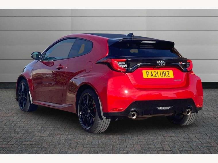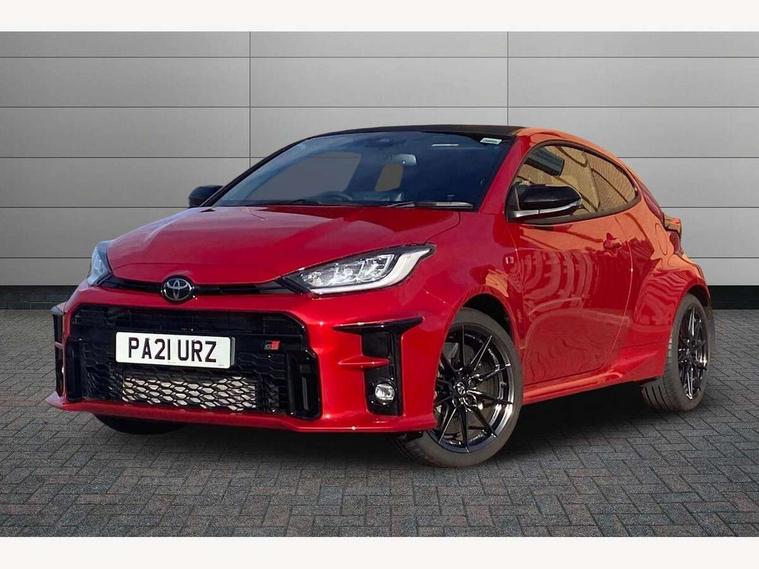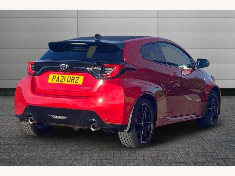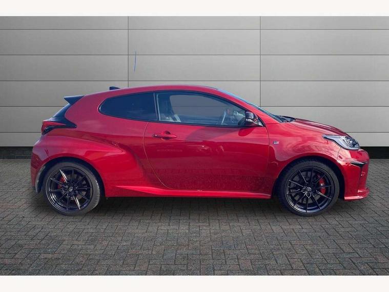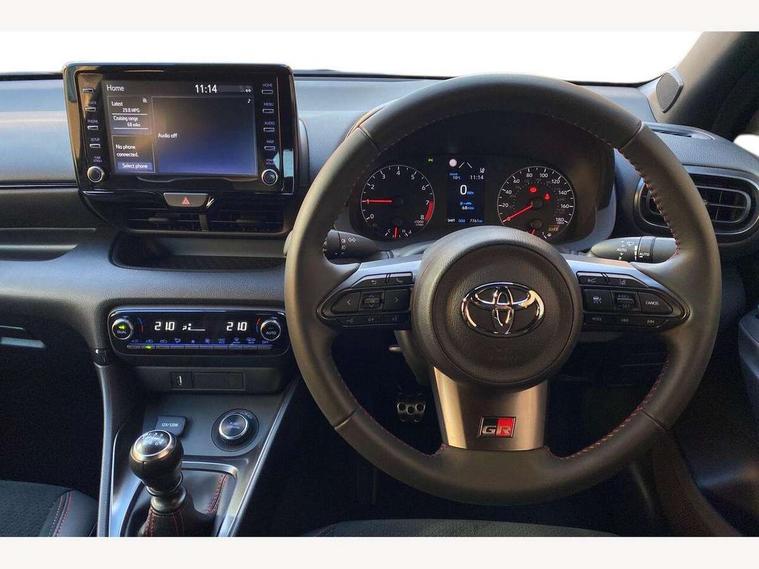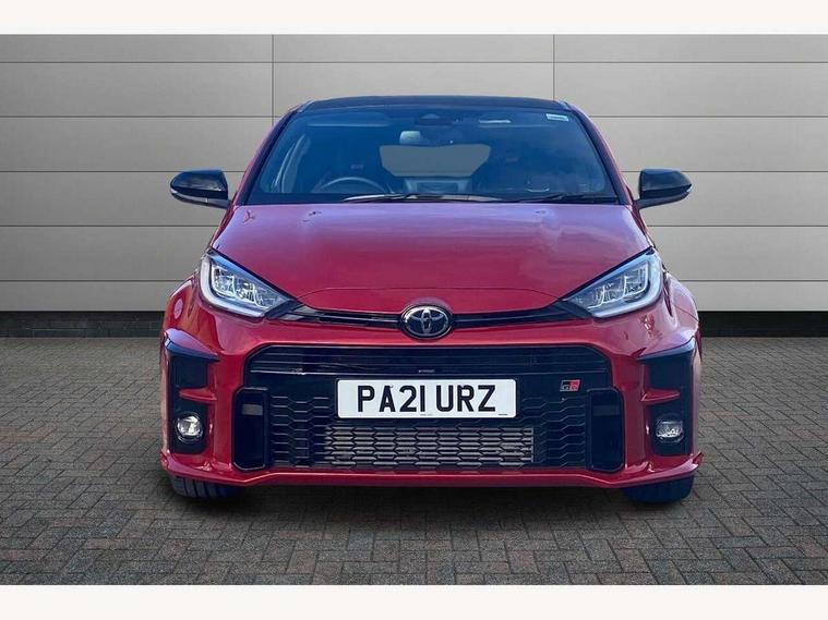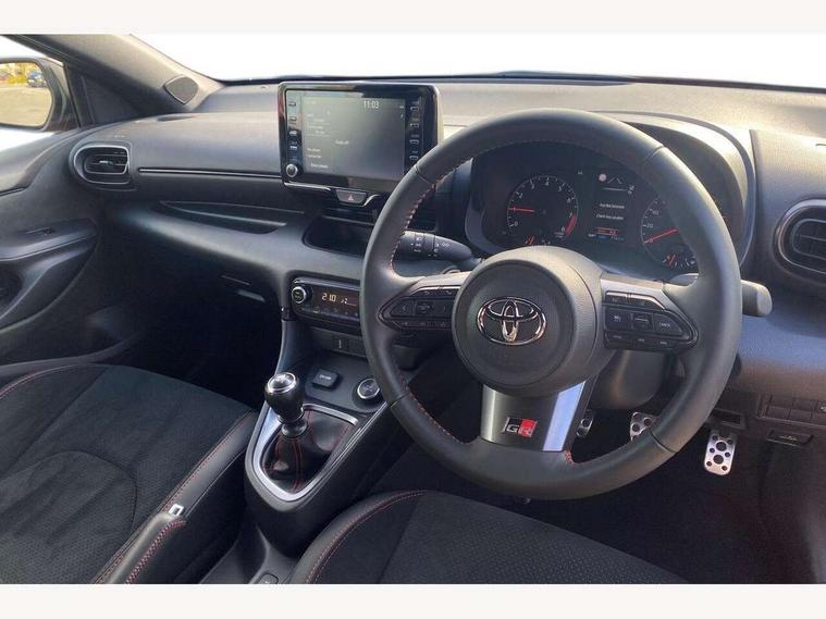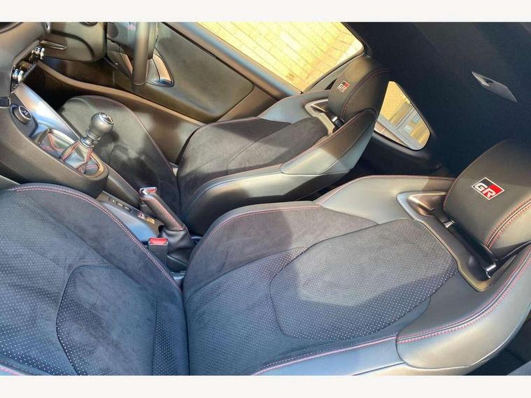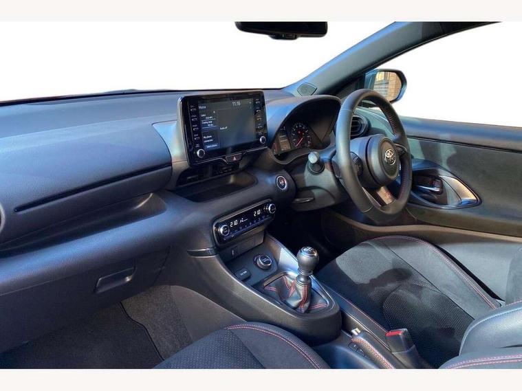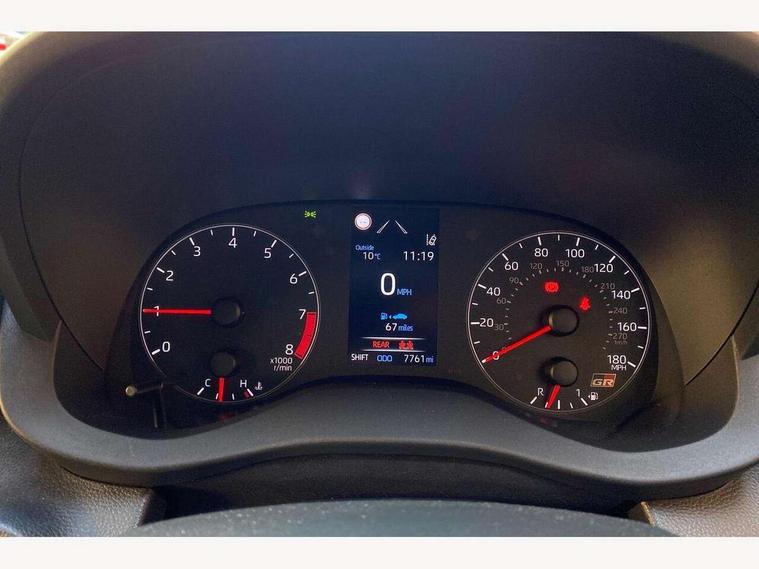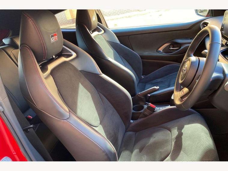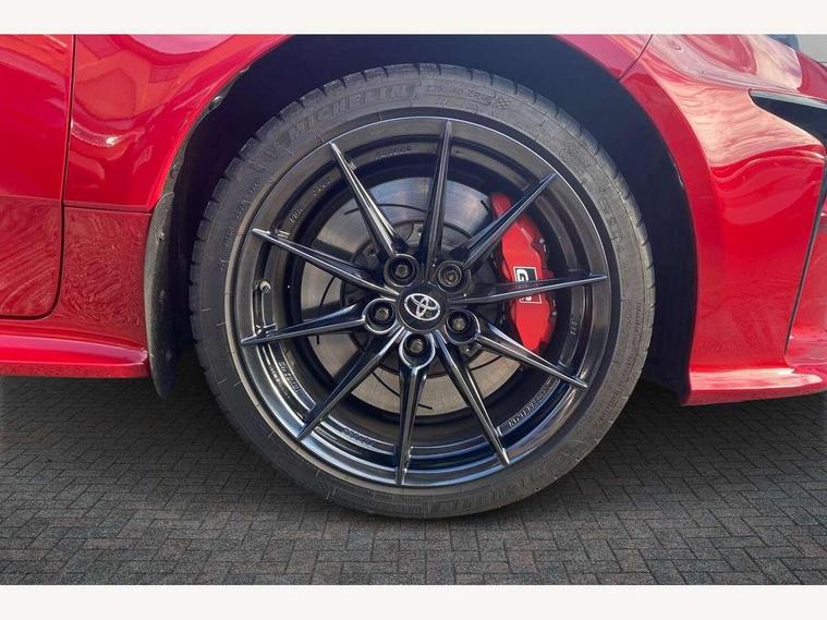 Apple car play/Android Auto, Coloured TFT multi informational display, eCall emergency system, Emergency steering assist, Intelligent adaptive cruise control, Lane Departure Alert (LDA) switch on steering wheel, Lane trace assist, Power Steering, Pre-collision system (PCS), Reversing camera, Road sign assist - RSA, Circuit tuned GR suspension, Double wishbone rear suspension, GR-Four AWD switch, MacPherson front suspension, Vehicle Stability Control (VSC), 6 speakers, 8" Multimedia display touch screen, DAB Digital radio, Toyota touch 2 multimedia system, USB connection, Adaptive high beam assist, Adaptive LED Headlights, Air intakes for brake cooling, Auto dimming eletrochromatic rear view mirror, Auto windscreen wipers, Automatic headlights, Automatic headlights cut-off, Automatically retractable door mirrors, Black contrasting colour door mirrors, Black rear spoiler, Body coloured door handles, Body coloured rear bumper, Carbon fibre roof wrap, Door scuff plates, Dual exhaust pipes, Electric adjustable heated door mirrors, Follow me home headlights, Front auto power windows with anti jam protection, Gloss black GR front bumper, GR badges 1 front, 1 rear and 2 sides, GR lower front grille, Integrated LED indicators in door mirrors, LED daytime running lights, LED fog lights, LED High mounted stop lamp, LED rear combination lights, Piano black side air vents, Privacy glass on rear and back windows, Rear auto power windows with anti jam protection, Rear window defogger, Shark fin antenna, 12v socket in front, 2 rear head restraints, 3 spoke leather sports steering wheel, 60/40 split folding rear seat, Aluminium pedals, Clean air filter, Driver and passenger headrests, Driver's sun visor with vanity mirror, Dual zone automatic air conditioning, Front bottle holders, Front cup holders, Front map light, Front sports seats, GR floor mats, GR logo on steering wheel, GR Ultrasuede leather upholstery, Height adjustable driver's seat, Isofix child rear seat restraints, Leather gearshift, Leather handbrake, Manual slide adjustable on driver's and passenger seats, Microphone on front personal light, Multimedia switch on steering wheel, Pollen filter, Red stitching on gearshift, Red stitching on handbrake lever, Satin chrome interior door handles, Soft tonneau cover, Ticket holder on driver's sun visor, Tilt/telescopic steering column, ABS with Brake Assist, Airbags - driver and front passenger, Driver and passenger side airbags, Emergency brake light system (EBS), Front passenger airbag on/off switch, Front seatbelt reminder, Hill start assist control (HAC), Rear passenger airbag, Rear seat belt reminder, Red brake callipers, Red sport front and rear brake pads, Start holding control, Torsen limited slip differentials x2, Tyre pressure warning system, Alarm/immobiliser, Keyless smart entry with push button start, 18" 10 spoke forged alloy wheels with Michelin pilot sport, Tyre repair kit,