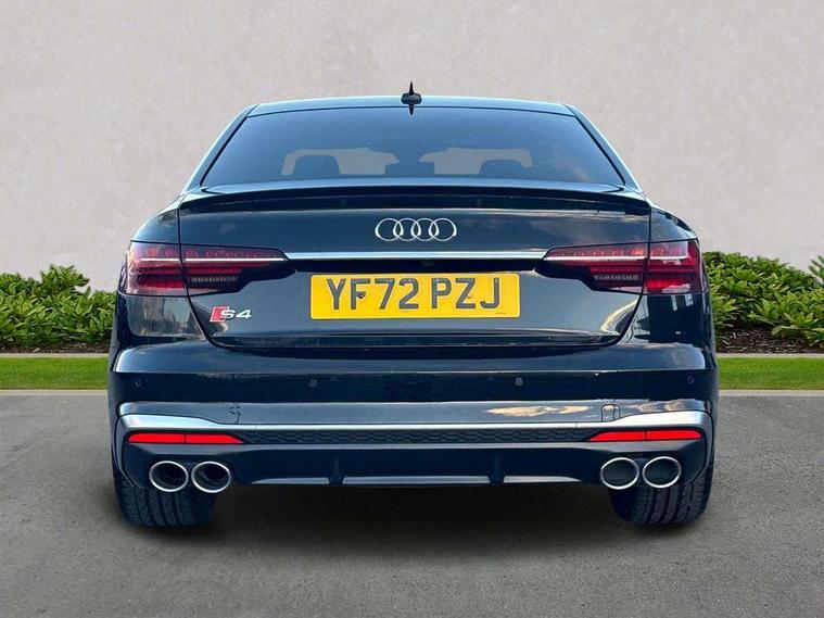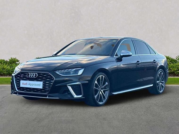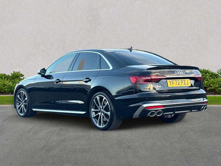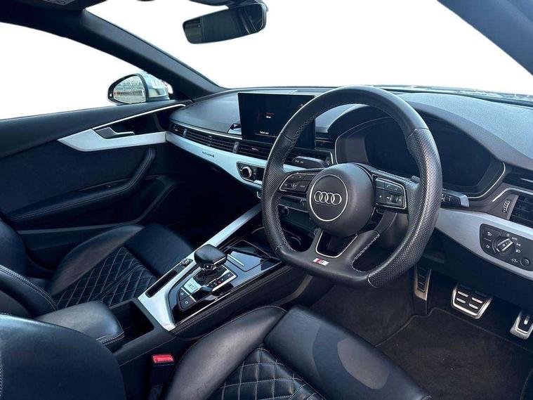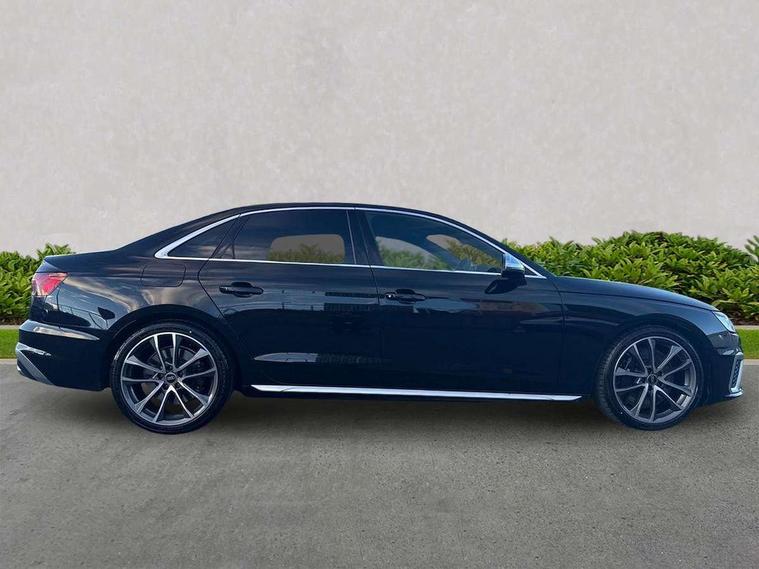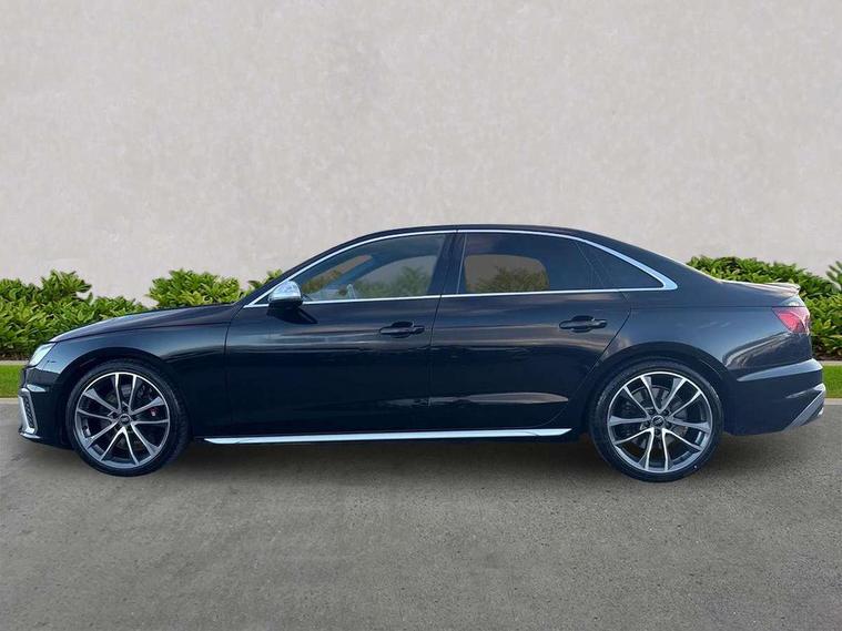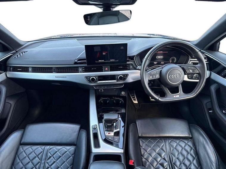 Audi connect safety and service (e-call), Audi connect with Amazon Alexa Integration, Audi drive select, Audi smartphone interface, Audi virtual cockpit, Automatic start-stop system with coasting functionality and efficiency programme, Bluetooth interface, Electric boot lid release, Electromechanical power steering, Email, calendar and text messages displayed via MMI, MMI Navigation plus with MMI touch includes 10.1" high resolution colour MMI display, 3D map, S instrument dials, Voice control system, 58 Litre fuel tank, S sports suspension, 2 USB charging ports, Audi sound system with 10 loudspeakers, DAB digital radio reception, Aluminium effect door mirror housings, Audi Beam uses LEDs to project the Audi logo, Auto dimming rear view mirror, Body colour door handles, Body colour front spoiler lip, Body colour side sill trim, Electrically folding auto dimming/adjustable/heated door mirrors with LED side indicators and kerb view function for passenger side, Front and rear bumpers with side skirts, High beam assistant, LED headlights with LED rear lights + dynamic rear indicators + headlight adjustment and high beam, turning light + LED daytime running lights, LED third brake light, Privacy glass, Rain and light sensors, Rear boot, Rear side wing doors, S Line badges on the front wings, S radiator grille in twilight grey matt with dual struts in aluminium and S4 logo, S rear diffuser in twilight grey matt and honeycomb grille in black, S specific dual branch chrome tailpipes with twin oval pipes on left and right, S specific side air inlets in titan black with chrome inlays in unique S design, S Style rear spoiler, Variable intermittent front wash/wipe, Windscreen with acoustic glazing, 40/20/40 split folding 3 rear seat bench in 3 parts with rear centre armrest, Black cloth headlining, Black leather gear lever knob, Contrast stitching on seats, steering wheel and gear lever gaiter, Deluxe 3 zone electronic climate control, Door sill trims with aluminium inlay, Electrically adjustable front seats, Fine nappa leather upholstery with S embossed logo + super sports seats, Front and rear head restraints, Front centre armrest, Gear lever with diamond S badge, Heated front seats, Illuminated door sill trims with S logo, ISOFIX child seat mounting and top tether, Key with S logo, Pneumatically adjustable lumbar support with massage function, Single front passenger seat, Stainless steel pedals and foot rest, Extended leather pack - A4/S4, High gloss package - A4, LED Interior light pack - A4/S4, 3 rear seatbelts, 6 airbags - Driver, front passenger, curtain and side windows, Electronic Stabilisation Control (ESC) including ABS, ASR and EDL, Front brake calipers painted in black with S4 logo, Hill hold assist, Multi collision brake assist, Pop-up bonnet for pedestrian protection, Pre sense city, Rear door child safety locks, S model enhanced braking system, Seatbelt monitoring, Warning triangle and first aid kit, Anti theft alarm, Anti theft wheel bolts, Central locking, Keyless Go, Matt brushed aluminium inlays, 19" 5 spoke V design contrasting grey alloy wheels, Tool kit, Tyre repair kit,
