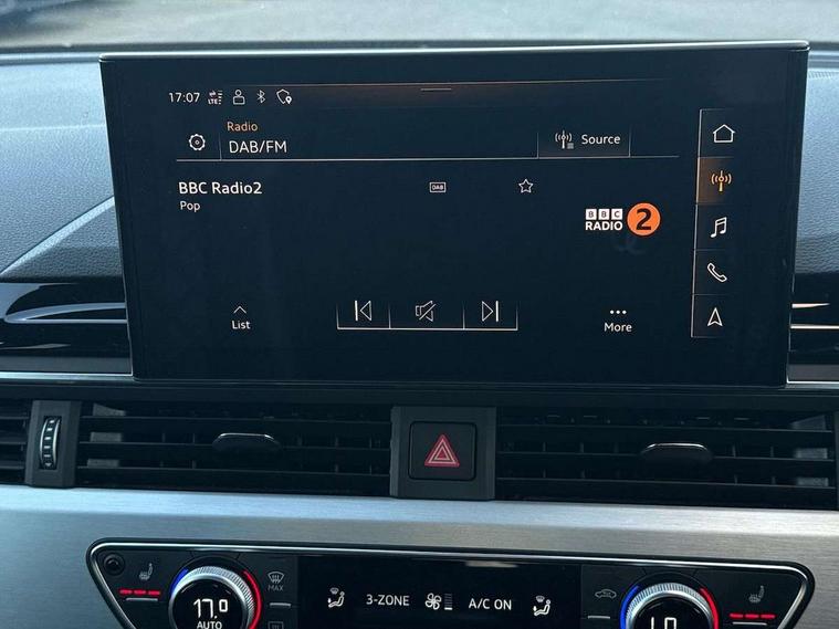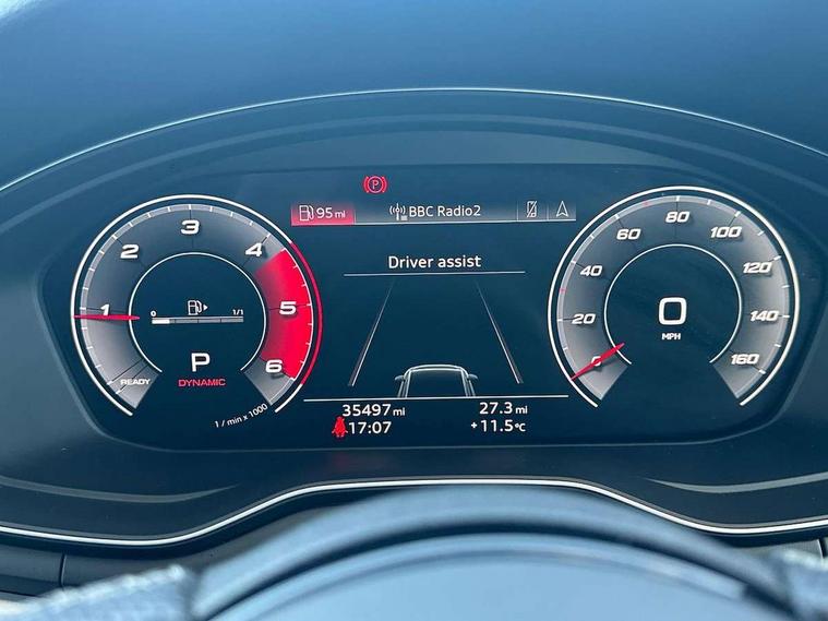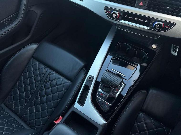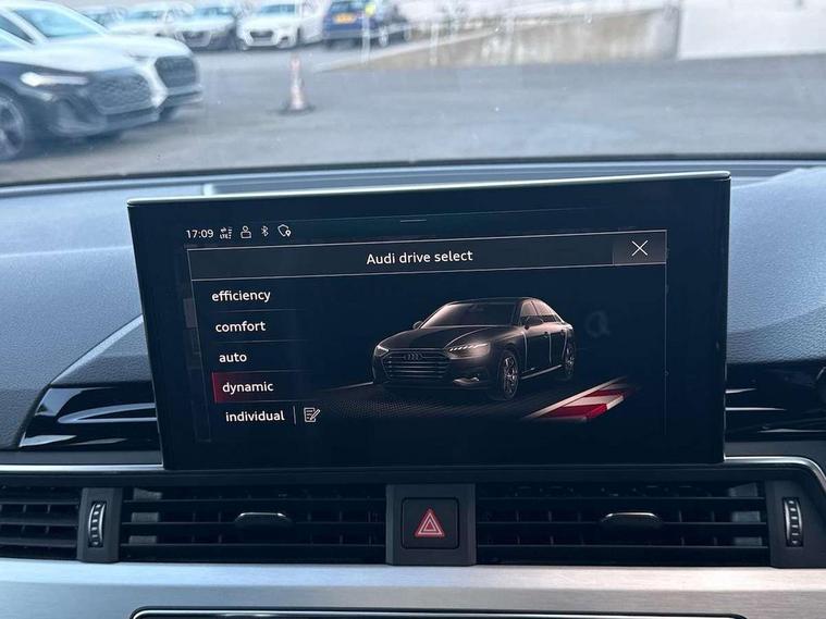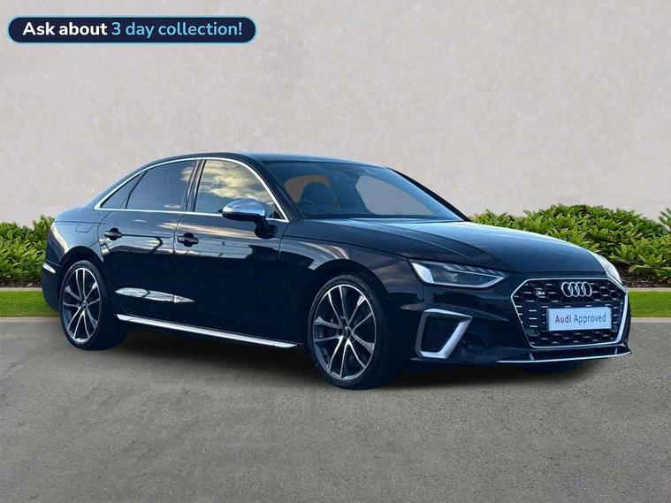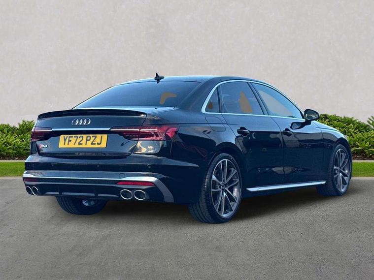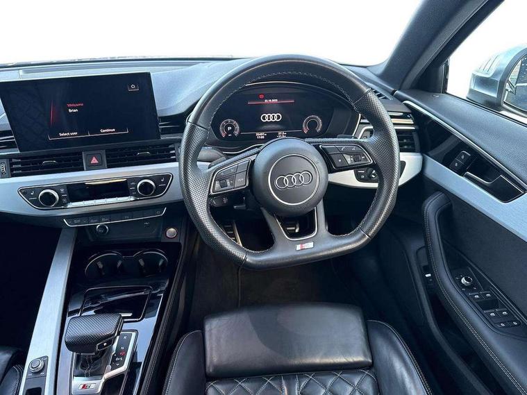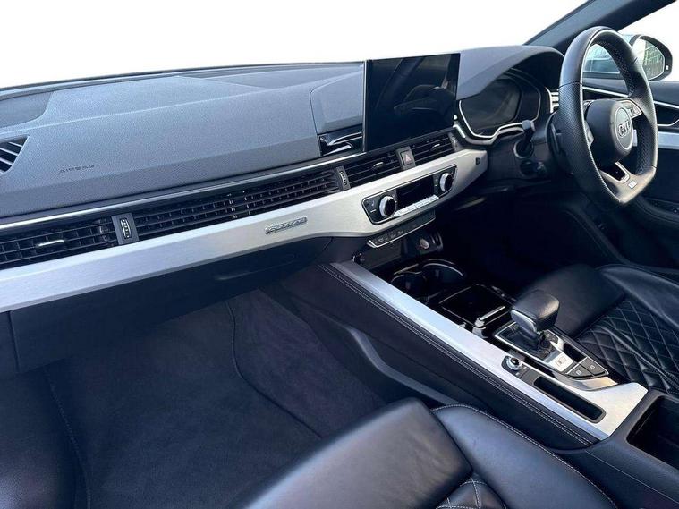 Audi connect safety and service (e-call), Audi connect with Amazon Alexa Integration, Audi drive select, Audi smartphone interface, Audi virtual cockpit, Automatic start-stop system with coasting functionality and efficiency programme, Bluetooth interface, Electric boot lid release, Electromechanical power steering, Email, calendar and text messages displayed via MMI, MMI Navigation plus with MMI touch includes 10.1" high resolution colour MMI display, 3D map, S instrument dials, Voice control system, 58 Litre fuel tank, S sports suspension, 2 USB charging ports, Audi sound system with 10 loudspeakers, DAB digital radio reception, Aluminium effect door mirror housings, Audi Beam uses LEDs to project the Audi logo, Auto dimming rear view mirror, Body colour door handles, Body colour front spoiler lip, Body colour side sill trim, Electrically folding auto dimming/adjustable/heated door mirrors with LED side indicators and kerb view function for passenger side, Front and rear bumpers with side skirts, High beam assistant, LED headlights with LED rear lights + dynamic rear indicators + headlight adjustment and high beam, turning light + LED daytime running lights, LED third brake light, Privacy glass, Rain and light sensors, Rear boot, Rear side wing doors, S Line badges on the front wings, S radiator grille in twilight grey matt with dual struts in aluminium and S4 logo, S rear diffuser in twilight grey matt and honeycomb grille in black, S specific dual branch chrome tailpipes with twin oval pipes on left and right, S specific side air inlets in titan black with chrome inlays in unique S design, S Style rear spoiler, Variable intermittent front wash/wipe, Windscreen with acoustic glazing, 40/20/40 split folding 3 rear seat bench in 3 parts with rear centre armrest, Black cloth headlining, Black leather gear lever knob, Contrast stitching on seats, steering wheel and gear lever gaiter, Deluxe 3 zone electronic climate control, Door sill trims with aluminium inlay, Electrically adjustable front seats, Fine nappa leather upholstery with S embossed logo + super sports seats, Front and rear head restraints, Front centre armrest, Gear lever with diamond S badge, Heated front seats, Illuminated door sill trims with S logo, ISOFIX child seat mounting and top tether, Key with S logo, Pneumatically adjustable lumbar support with massage function, Single front passenger seat, Stainless steel pedals and foot rest, Extended leather pack - A4/S4, High gloss package - A4, LED Interior light pack - A4/S4, 3 rear seatbelts, 6 airbags - Driver, front passenger, curtain and side windows, Electronic Stabilisation Control (ESC) including ABS, ASR and EDL, Front brake calipers painted in black with S4 logo, Hill hold assist, Multi collision brake assist, Pop-up bonnet for pedestrian protection, Pre sense city, Rear door child safety locks, S model enhanced braking system, Seatbelt monitoring, Warning triangle and first aid kit, Anti theft alarm, Anti theft wheel bolts, Central locking, Keyless Go, Matt brushed aluminium inlays, 19" 5 spoke V design contrasting grey alloy wheels, Tool kit, Tyre repair kit,