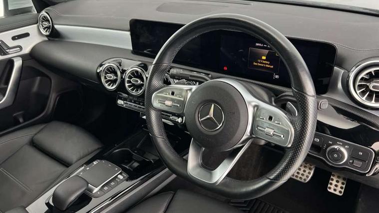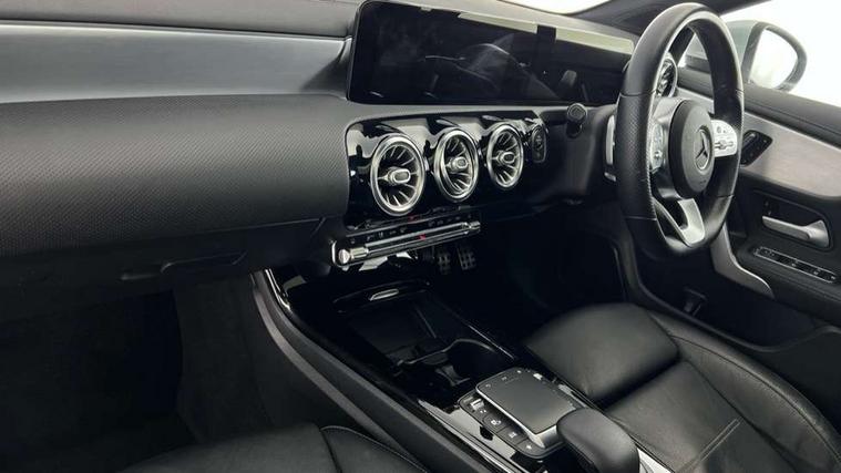 10.25 inch Instrument display with digital cockpit, 10.25 inch touchscreen central media display, Attention assist - Monitors steering behaviour and long journey fatigue, Bluetooth connection, Car wash mode, DYNAMIC SELECT with a choice of driving modes (ECO, Comfort, Sport and Individual), ECO start/stop function, Fluid level warning indicator for fuel, oil, coolant and washer fluid, Hard-disk navigation, Hey Mercedes Voice activation, Lamp failure indicator, MBUX augmented reality for navigation, Mercedes me connect including emergency call system, accident recovery, breakdown and maintenance management, Mercedes me remote services, Outside temperature gauge, Owners manual and service booklet in English, Pre-installation of private car share, Preinstallation for Mercedes Benz link, Radio aerial integrated into front and rear windshields, Service indicator (ASSYST), Smartphone integration with Apple CarPlay and Android auto, Traffic sign assist, Trip computer in multifunction display with current consumption indicator, Wireless charging, 7G-DCT 7 speed automatic transmission, Lowered comfort suspension, Rear axle multi-link, DAB digital radio tuner, MBUX multimedia system with DAB digital radio and touchpad including satellite navigation, Mercedes Benz advanced sound system (225 W) with 10 speakers, 1 central speaker, speakers on doors, a tweeter on door, one sub woofer + boost amplifier, USB (type C) ports (2) in stowage compartment and 1 in front of centre console, Adaptive brake lights, AMG body styling with AMG front apron and rear apron and visible exhaust tailpipe in chrome trim elements, AMG bodystyling side skirts, Body colour bumpers, Body colour door handles, Chrome beltline strips, Chrome weather strip, Diamond radiator grille pins in chrome with silver painted louvres and chrome insert, Electric panoramic sliding sunroof, Electric windows, Electrically adjustable and heated door mirrors with integrated LED indicators, Exhaust system with 2 Visible tailpipe trim elements and rear apron with trim in chrome, Headlamp assist automatic headlamp activation, Heated glass rear windscreen + timer control, High level LED third brake light, Integrated LED daytime running lights, Interior mirror with black reading lamps and frameless, LED tail lamp, Multibeam LED headlamps with adaptive highbeam assist plus, Privacy glass with dark tinting on rear side windows and rear window, Rain sensing windscreen wipers with two sensitivity settings, Rear fog lamp, Window line trim strip in chrome, 3 spoke flattened bottom nappa leather multifunction steering wheel with perforated leather in grip area, 40:20:40 split folding rear seat backrests, Air conditioning - Two zone thermotronic luxury automatic climate control with display, Air vents with surround in silver chrome, Automatic child seat recognition sensor, Black roof lining, Brushed stainless steel sports pedals with rubber studs, Electrically adjustable front memory seats including lumbar support, Floor mats with stitched AMG lettering, Front centre armrest with stowage, Galvanished gear shift paddles on steering wheel, Heated front seats, Illuminated front door sills with changeable cover, Illuminated glove compartment stowage, Interior lighting - 64 colour Ambient lighting, Luggage net on driver/front passenger seat backrest, Manually height and reach adjustable steering column, Rear armrest with two integral cup holders for drinks, Rear head restraints, Sport seats with fixed head restraints, Stowage compartment in centre console with retractable cover, Sunvisors with illuminated vanity mirrors, Touchpad on center console, Twin front cupholders, Two outer rear seat isofix and top tether child seat fixing points, Keyless go pack - CLA, Light and sight pack - CLA, Mirror pack - CLA, Parking package - CLA, Seat comfort pack - CLA, Active bonnet pedestrain safety measure which detects an impact and raises bonnet by 65mm, Adaptive brake assist with hold function and hill start assist, Anti-lock braking system (ABS), Black seat belts, Bonnet with power domes, Brake pad wear warning indicator, Childproof locks manually operated for rear doors and electrically operated for rear power windows, Crash responsive emergency lighting, Driver and front passenger head and sidebags, Driver and front passenger windowbags, Drivers knee airbag, Dual stage driver and front passenger airbags, Electric parking brake, Electronic stability programme with acceleration skid control, ESP curve dynamic assist, Front and rear seatbelt reminder, Front passenger seat occupancy sensor, Perforated front brake discs, Three point rear seat belts, Tyre pressure monitoring system, Warning triangle and first aid kit, Remote central locking and crash sensor with emergency opening function, Urban guard vehicle protection system with immobiliser and interior protection, Light aluminium with longitudinal grain interior trim, 18" 5 twin spoke design alloy wheels painted in titanium grey with high sheen finish, Summer tyres, Tirefit tyre sealant kit,