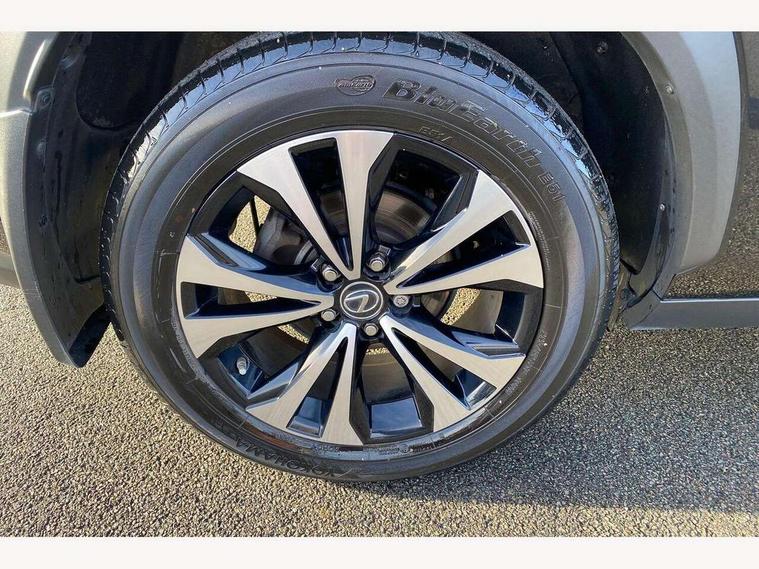 4 driving modes EV/Eco/Normal/Sport, 8" display screen with remote touch interface, Analogue clock, Apple car play/Android Auto, Bluetooth telephone connectivity, Electric speed sensitive power steering, Intelligent parking sensors - 4 front and 4 rear, Lane change flasher function, Lexus link connected services with available optional wifi, Lexus navigation system, Push button starter, Reversing camera, All wheel drive system, Vehicle Dynamics Integrated Management (VDIM), Vehicle Stability Control (VSC), 2 USB ports, 8 speakers, AUX socket with VTR compatibility, CD player, DAB Digital radio, Auto dimming interior rear view mirror, Bi LED headlight with Auto high beam, Body adhesive, laser screw welding and laser brazed roof structure, Front and rear one touch power windows, with anti-jam protection, Heated and auto folding door mirrors with turn indicators, Hidden exhaust pipe, LED brake lights and rear lights with emergency brake signal, LED daytime running lights, LED front and rear sequential indicators, Rain sensor windscreen wipers, Roof rails, 12V accessory port centre console and luggage compartment, 2 cupholders in front centre console, 2 map pockets in the rear, 2 x fixed shopping bag hooks in boot, 2 x sun visors with vanity mirror and lamp, 6 tie down hooks in boot, 60/40 split folding rear seat, 8 way driver/passenger electrically adjustable front seats, Adjustable rear seat backrest, Card holder installed in driver and passengers sun visors, Centre armrest with storage box, Dual climate control air conditioning system, Front and rear head restraints, Front and rear textile carpet mats, Heated front seats, Leather gear lever, Leather steering wheel with paddle shifts, LED interior illumination, Rear air vents, Rear centre armrest with 2 cupholders, Self charging hybrid, Tahara leather upholstery, Whiplash Injury Lessening (WIL) feature (active headrest) for seats, 2 x Isofix child rear seat restraints, 3 point ELR front seatbelts with pretensioners, 3x3 point rear seat belts, ABS, Adjustable seat belt anchor points, Driver and front passenger 2 stage airbag, Driver/front passenger side airbags, Drivers knee airbag, EBD + Brake Assist, ECB (Electronically Controlled Brake System), Electronic parking brake, Front and rear curtain shield airbags, Front passenger seat cushion airbag, Hill start assist, Hybrid automatic with 6 stage sequential shift and kick down switch, Lexus safety system - dynamic radar cruise control, pre collision system day and night, lane tracing assist, road sign, automatic high beam, OTA, Passenger airbag cut-off device, Traction control, Tyre pressure warning, 2 x remote key fobs, Anti-theft system with siren, alarm, intrusion sensor, glass breakage sensor, tilt sensor and engine immobiliser, Locking wheel nuts, Speed sensitive auto door locking, Two motion door lock with double lock, VIN Window etching, Silver inlays, Space saver spare wheel,