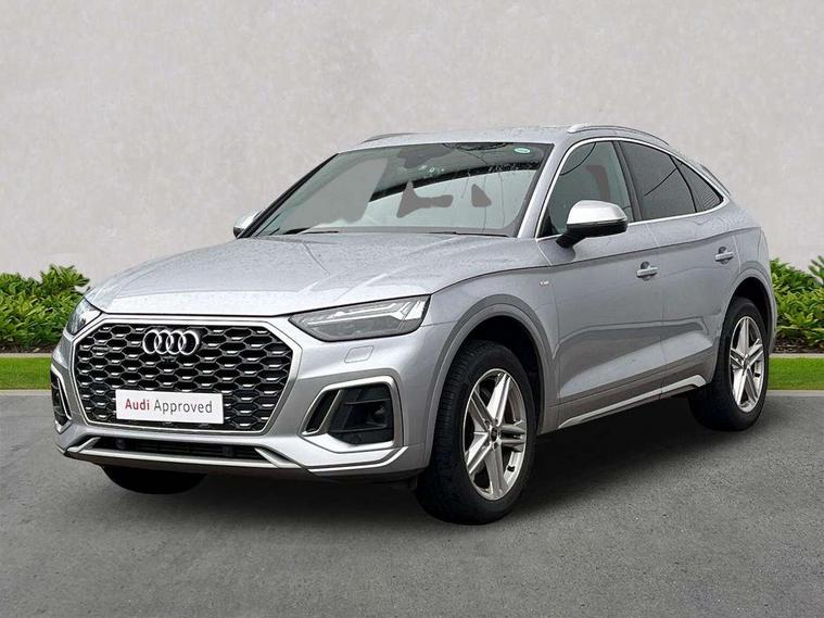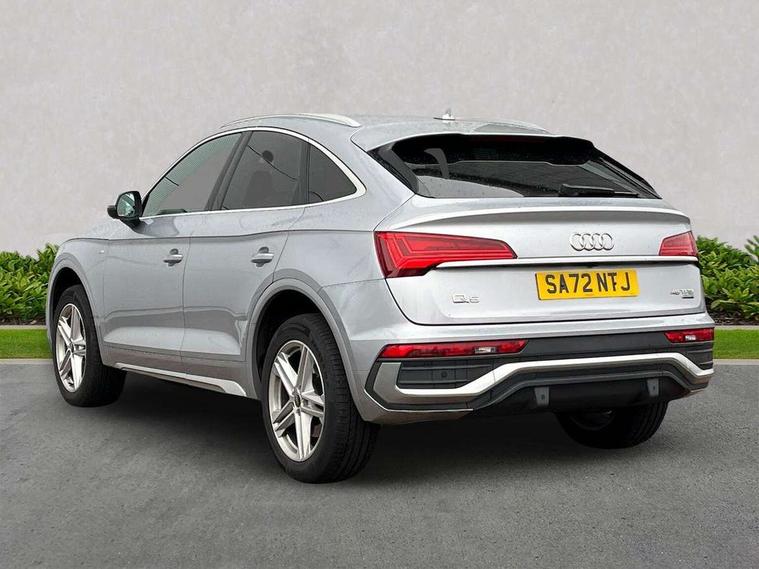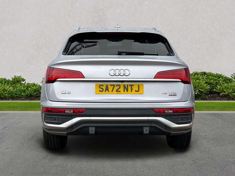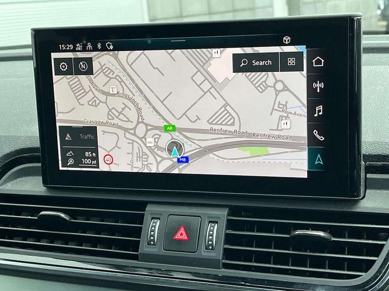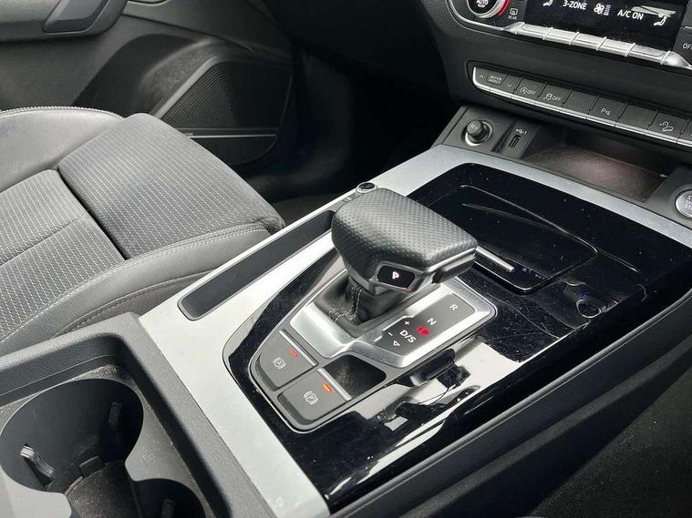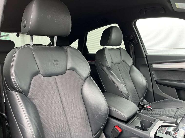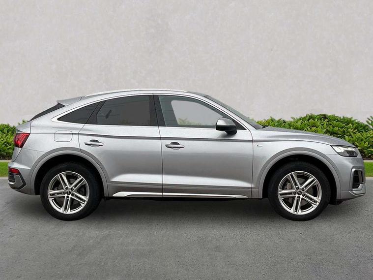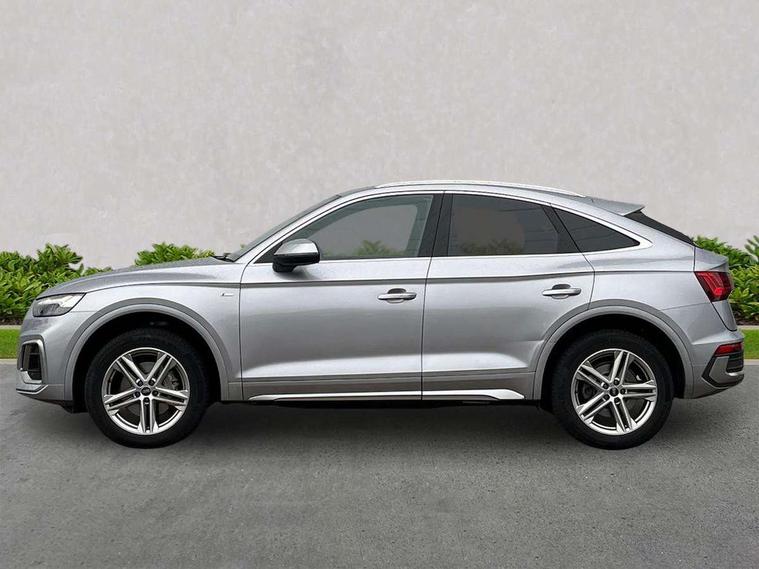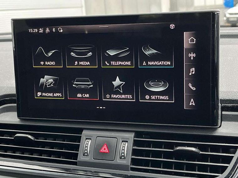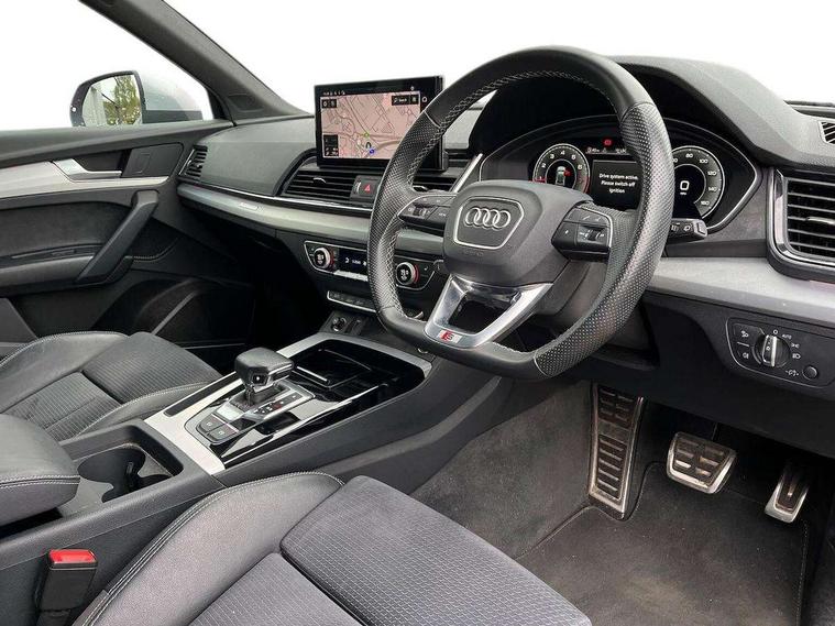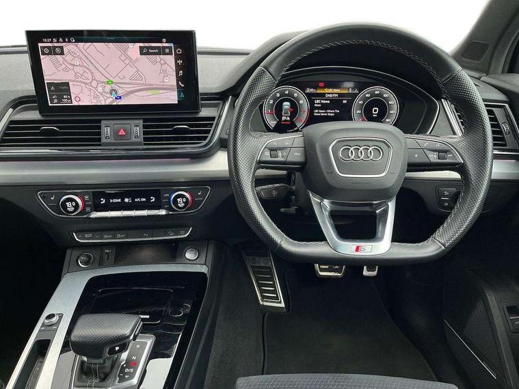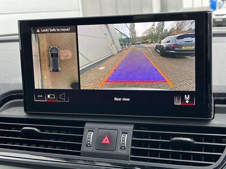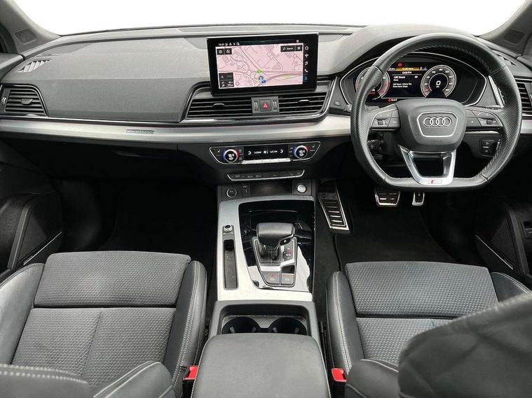 Audi connect safety and service (e-call), Audi connect with Amazon Alexa Integration, Audi drive select, Audi virtual cockpit plus with 12.3" screen and three different layout designs, Audi wireless smartphone interface, Automatic start-stop system with coasting functionality and efficiency programme, Bluetooth interface, Electro - mechanical power assisted steering, MMI navigation plus with 10.1" touch screen, Power tailgate, Reversing camera, Service interval indicator, Voice control system with Audi hotword activation "Hey Audi", Quattro on demand, S line sports suspension, 2 x USB charging port with aux input socket, DAB Digital radio, Acoustic windscreen, Aluminium roof rails, Audi matrix LED headlights with dynamic front and rear indicators, Auto dimming door mirrors, Auto dimming rear view mirror, Automatic headlights and windscreen wipers, Body colour door mirrors, Body colour rear diffuser with matt aluminium silver surrounds, Body colour underbody protection, Chrome plated exhaust trims, Daytime running lights, Door sills in Selenite silver, Electric adjustable/heated/folding door mirrors, Front air inlet surrounds in aluminium, Front and rear electric windows, Front radiator grille in honeycomb design, Headlight washers, High level LED brake light, Lower bumpers painted in contrast Manhattan grey, Rear chrome trim strip below lights, Rear privacy glass and rear side windows, Rear side wing doors, Rear wiper, Roof bars, S Line badges on the front wings, S Line front and rear bumpers, S Line rear spoiler, S Line side skirts, 3 rear headrests, 40:20:40 split folding 3 rear bench seat in 2nd row with rear centre armrest, Black cloth headlining, Comfort front centre armrest, Contrast stitching on seats, steering wheel and gear lever gaiter, Deluxe 3 zone electronic climate control, Front head restraints, Front/rear floor mats, Gear lever in black leather, Heated front seats, Height/reach adjustable steering column, Illuminated door sill trims with S logo, ISOFIX child seat mounting and top tether, Manual seat adjustment with 4-way electric lumbar support, Removable luggage compartment floor, Single front passenger seat, Stainless steel pedals, Sunvisors with vanity mirrors, Trunk roller cover, High gloss pack - Q5, LED interior light pack - Q5, 3 point seatbelts on all seats, 6 airbags - Driver, front passenger, curtain and side airbags, Electrically operated child locks on rear doors, Electromechanical parking brake, Electronic stabilisation control including ABS, ASR and EDL, Front passenger airbag deactivation, Hill descent control, Hill hold assist, Multi collision brake assist, Pop-up bonnet for pedestrian protection, Pre sense city, Seat belt force limiter, Seatbelt monitoring, Tyre pressure warning, Warning triangle and first aid kit, Anti theft alarm, Anti-theft wheel bolts, Keyless Go access/ignition system, Remote central locking, Matt brushed aluminium inlays,