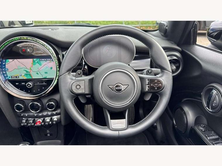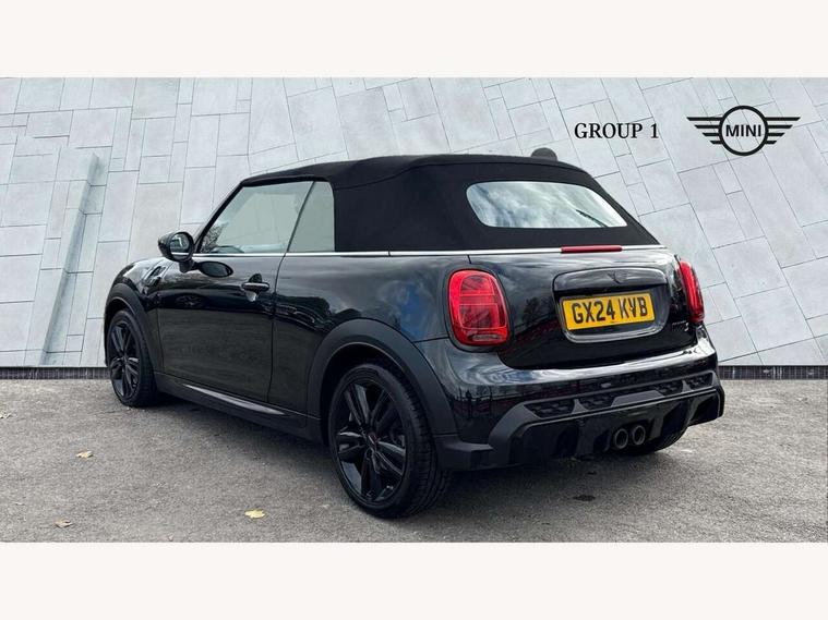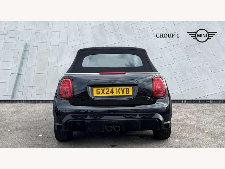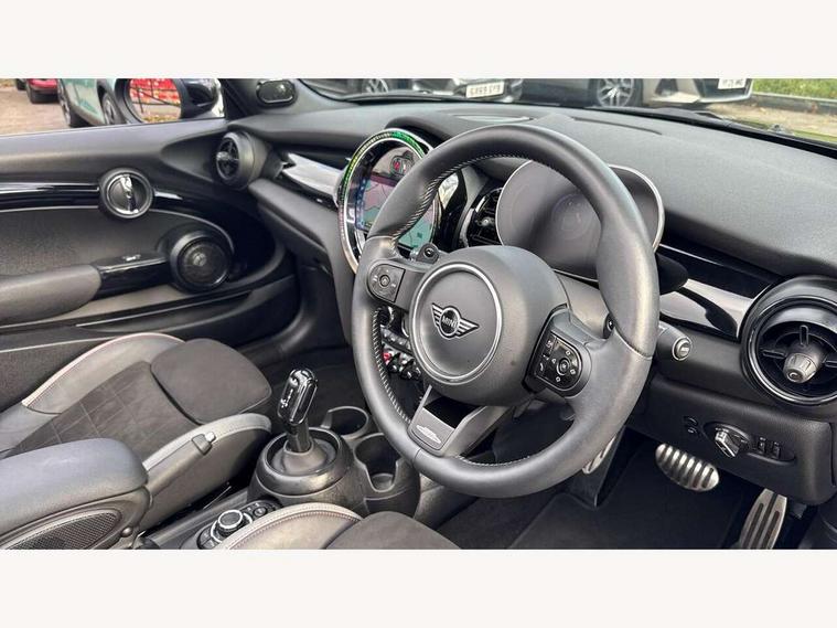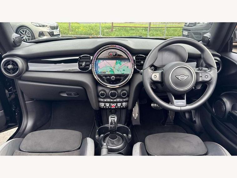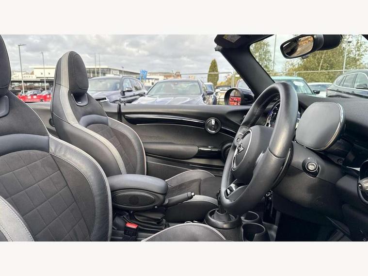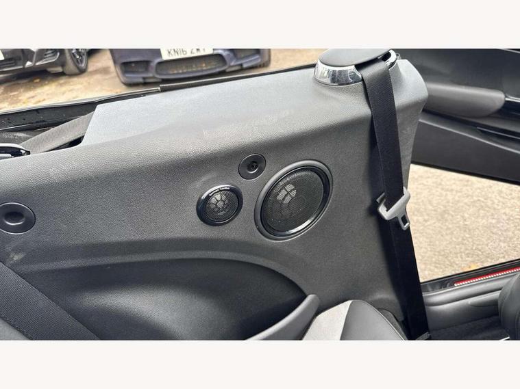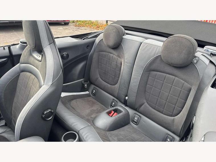 Automatic start/stop function with brake energy recuperation, Compatible mobile phone bluetooth with audio streaming, Electro-mechanical speed dependant steering assistance, Instrument cluster, MINI Driving Modes - centre toggle switch to control driving setting (sport, mid and green), Mini E-call, MINI TeleServices, On board computer, Rear park distance control, Service interval indicator, Double Vanos system, Fully variable valve control, High precision injection, Performance Control, Steptronic sport transmission with double clutch and steering wheel paddles, FM tuner and DAB digital radio, Automatic headlight activation switch, Bonnet scoop, Chrome border honeycomb structure radiator grille with S badge, Chrome plated fuel cap, Dynamic brake lights, Electric windows, Fully electric black softtop with integrated sunroof functionality, Heated rear window, Heated windscreen washer jets, John Cooper Works - aerodynamic kit (front and rear apron, spoiler), front and rear sport bumpers and part-painted side sills with door sill finishers, Metal door sill strips with Cooper S imprint, Model logo Cooper S on right of tailgate, Rain sensor window wipers, Rear fog lights, Rear LED lights with union jack design, Side scuttle panel with integrated indicator, Sun/heat protection glass, Two central exhaust tailpipes with chrome finisher, White indicator lenses, 12V Accessory socket in centre console, 4 lashing eyes in luggage compartment, 50/50 split folding rear seats, Chrome interior highlights, Cupholders, Easy Load boot handles, Front and rear isofix with front passenger airbag deactivation, Front seatback storage pockets, Glove compartment, Height and length steering column adjustment, Interior lighting with 12 basic colours selectable via toggle switch in roof, John Cooper Works perforated leather steering wheel with contrast stitching in chilli red and John Cooper Works logo, Leather gearshift lever and handbrake gaiters, Leatherette integrated headrest, adjustable thigh support with john cooper works logo, LED reading lights, vanity mirror lights, front foot well light and spotlight on front seats, Mechanical seat adjustment, driver seat height adjust, forward/back and front seats backrest, Mini logo projection on floor from drivers exterior mirror, Multifunction steering wheel, Rear head restraints, Storage compartments in doors, Sunvisors with vanity mirrors, Tool kit, Convertible pack with comfort access - Mini Convertible, 3 point seatbelts on all four seats, 6 Airbags - front, side and seat belt tensioners, Active rollover protection, Anti-lock braking system (ABS), DSC - Dynamic Stability Control, Front and rear disc brakes, Hill start assist, Two tone horn, Tyre pressure monitoring system, Alarm system with tilt sensor, monitoring doors, bonnet interior and tailgate, Electronic vehicle immobiliser, Keyless Go,