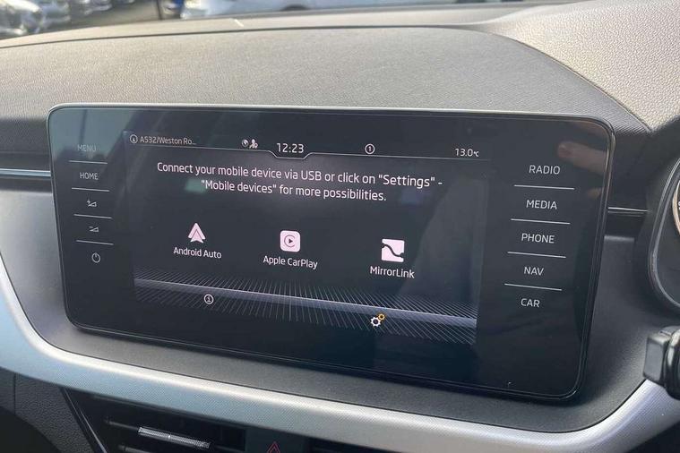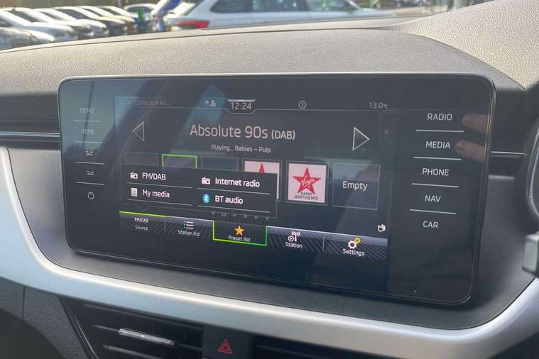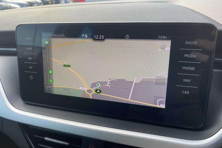 Amundsen satellite navigation with 9.2" glass colour touchscreen display, web radio, voice control and traffic sign recognition, Bluetooth system, E-call, Front assist system, Gesture control, PAS, Service indicator, Speed limiter, Wireless SmartLink for apple car play, android auto and mirrorlink, 8 Speakers, Auxiliary input socket, DAB Digital radio, Body colour bumpers, Body colour door mirrors and handles, Chrome grille surround, Dimming rear view mirror with black surround, Electrically adjustable and heated door mirrors, Front and rear electric windows, Headlight range control, Heated rear window, LED rear lights - low functionality, Light sensors, Privacy glass, Rear fog lights, Rear side wing doors, Rear wiper, 12V Accessory socket in centre console, 3 seat bench in 2nd row, Chrome inner door handles, Cloth upholstery, Front head restraints, Glove compartment with illumination, Height adjustable driver and front passenger seats - manual, Ice scraper, Isofix child seat fittings on outer rear seats, ISOFIX on front passenger seat, Manual lumbar support for front seats, Rake/reach adjustable steering wheel, Reading lights, Single front passenger seat, Sun visors with illumination on front passenger, Textile floor mats, Third rear headrest, Top tether for front passenger seat, Umbrella in driver's door, 3x3 point rear seatbelts, Airbags - driver and front passenger, ESP, Front passenger airbag deactivation switch, Front side airbags with curtain airbags, Hill hold control, Manual parking brake, Manual rear child locks, One tone horn, Rear disc brakes, Seatbelt reminder for driver an co-driver, Traction control, Tyre pressure monitor, Anti-theft alarm system with interior monitoring, backup horn, towing protection and remote central locking with SAFE system, Anti-theft wheel bolts, Electronic engine immobilizer, Silver haptic decorative insert on the dashboard with hot stamping in glossy black,