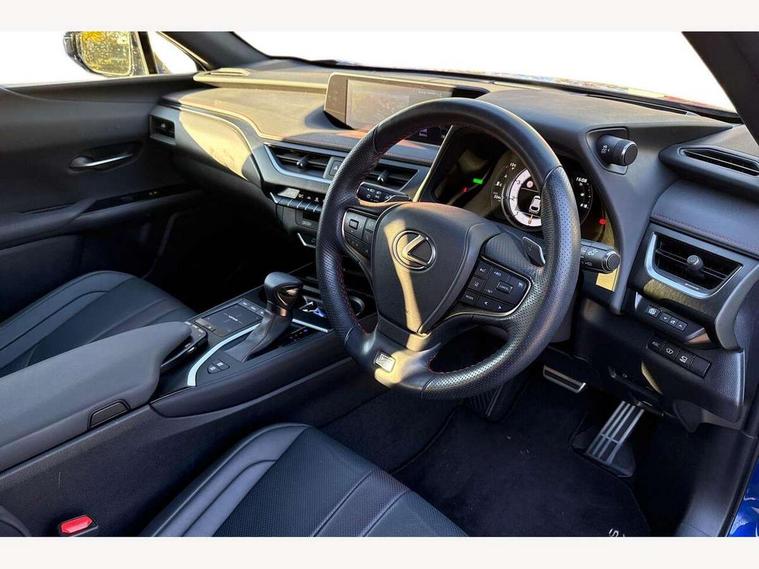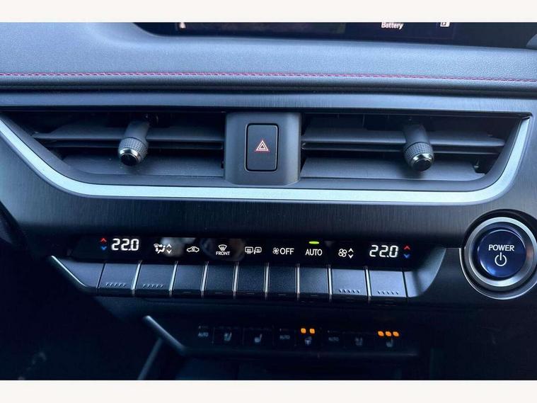4 driving modes EV/Eco/Normal/Sport, 7" Lexus media display, 8" LFA inspired TFT meters with movable meter ring, Analogue clock with GPS function, Apple car play/Android Auto, Compatible mobile phone bluetooth with audio streaming, E-call, Electric power steering (EPS) with speed sensitive features, Front and rear parking sensor with intelligent clearance sonar, Lane change flasher function, Lexus link connected services, Lexus navigation system, Lexus safety systems + includes dynamic radar cruise control, pre collision system day and night, lane tracing assist, road sign assist, Push button start, Remote touch interface, Reversing camera with back guide lines, Trip computer, F Sport suspension tuning and rear performance dampers, Vehicle Dynamics Integrated Management (VDIM), Vehicle Stability Control (VSC), 2 front USB and 2 rear USB charging points, 6 speakers, AM/FM and DAB radio, AUX socket with VTR compatibility, CD player, Acoustic windscreen, Aero stabilising arch mouldings, Aero stabilising rear lights, Aero ventilated wheels, Aluminium roof rails, Auto dimming interior rear view mirror, Bi-LED (low and high beam) headlights with Auto High Beam (AHB), Black roof drip mouldings, Body adhesive, laser screw welding and laser brazed roof structure, Body coloured bumpers, Colour coded wheel arches, Electric adjustable/heated door mirrors, F SPORT exterior styling consists of black Mesh front grille, enhanced side rockers, metallic coated front bumper and F SPORT badging, Front and rear one touch power windows, with anti-jam protection, Headlight cleaners, LED cornering headlights, LED daytime running lights, LED front and rear fog lights, LED tail lights, LED third brake light, Privacy glass, rear doors and tailgate, Rain sensor windscreen wipers, Rear side wing doors, Rear wiper, Shark fin roof aerial, Single hidden exhaust pipe, Towing preparation, Variable front intermittent wipers, 12V accessory port centre console and luggage compartment, 2 cup holders in the front and rear centre console, 2 way electrical lumbar adjustment for driver, 2 x folding shopping bag hooks in boot, 2 x sun visors with vanity mirror and lamp, 3 seat bench in 2nd row, 4 x tie down hooks in the boot, 5 headrests, 60/40 split folding rear seat, 8 way driver/passenger electrically adjustable front seats, Active sound control, Card holder installed in driver and passengers sun visors, Centre armrest with storage, Driver and passenger door pocket, Dual zone electronic climate control + Nano-E humidity sensor, F Sport aluminium sports pedals, F SPORT dimpled leather gear lever, F SPORT front seat headrest adjustable forwards and backwards, F Sport interior styling, F Sport leather steering wheel with paddle shifts, Fabric/Tahara leather upholstery, Glovebox, Heated front seats, Heated steering wheel, Illuminated entry system, LED interior illumination, Map pockets in the rear of passenger's front seat, Rear air vents with 2 USB chargers, Rear armrest with 2 cupholders, Single passenger seat, Storage tray under audio panel, Textile carpet mats, Tilt/reach adjustable steering column, Under deck storage, Under desk side storage, 2 x Isofix child rear seat restraints, 3x3 point rear seatbelts, Anti-lock braking system (ABS), BAS (Brake Assist System), Driver and front passenger 2 stage airbag, Driver and front passenger knee airbag, Driver/front passenger side airbags, EBD - Electronic brakeforce distribution, ECB (Electronically Controlled Brake System), Electric child locks, Electric parking brake, Front adjustable seatbelt anchor points, Front and rear curtain shield airbags, Front outer seatbelt+pre-tensioners, force limiter+tension reduction: 3-point with active safety link to PCS, Hill start assist control (HAC), Passenger airbag cut-off device, Rear outer seatbelt+pre-tensioners, force limiter+tension reduction: 3-point with active safety link to PCS, Centre belt w/o pre tensioner+force limiter, Secondary Collision Brake (SCB), TRC (Traction Control), Tyre pressure warning, 2 x remote key fobs, Anti theft system : Alarm instruction sensor, glass breakage sensor and engine immobiliser, Locking wheel nuts, Remote central door locking, Speed sensitive auto door locking, Two motion door lock with double lock, VIN Window etching, 18" F Sport alloy wheels with run flat tyres,