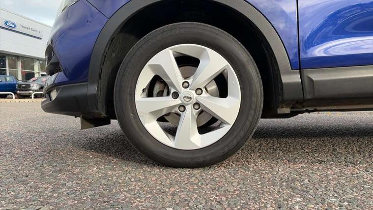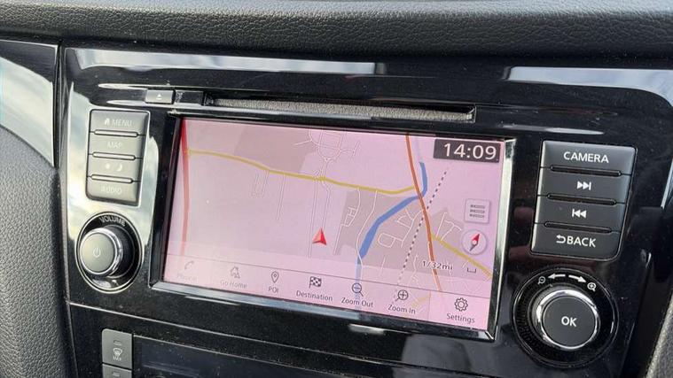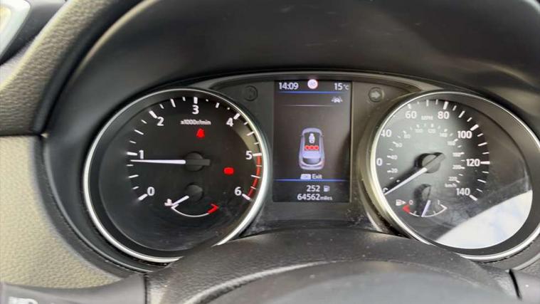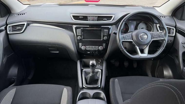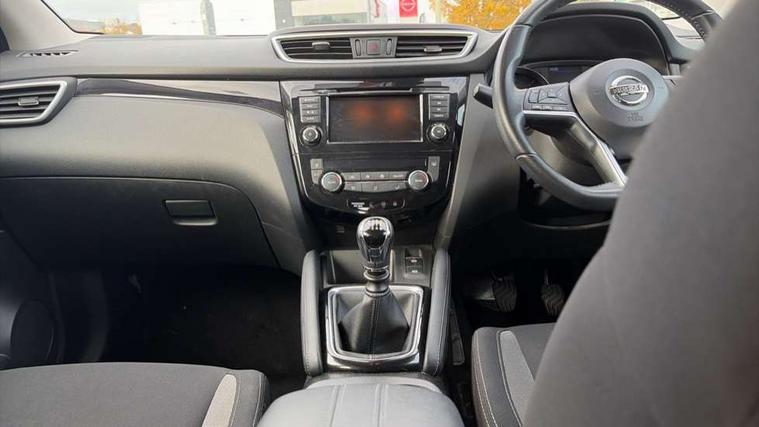 Advanced drive assist display 5'' TFT coloured screen, Android Auto, Apple CarPlay preparation, Bluetooth connectivity, Cruise control + speed limiter, Electric speed sensitive power steering, Front parking sensors, Lane departure warning system, Nissan connect evo 7" touchscreen navigation and entertainment system, Normal or sport selectable steering, Outside temperature sensor, Rear parking sensors, Rear view camera, Service interval indicator, Smartphone integration, Stop/start system, Tomtom connected services, Traffic sign recognition, Trip computer, Voice control system, Diesel particulate filter, Nissan chassis control (intelligent ride control, intelligent trace control, intelligent engine brake), 6 speakers, AM/FM radio, CD audio system, Aux-in socket, DAB Digital radio, Steering wheel mounted audio controls, USB port, Anti dazzle rear view mirror, Auto wipers, Body colour bumpers, Body coloured door handles, Body coloured door mirrors, Chrome window surround, Daytime running lights dip function when turn signal applied, Electric folding door mirrors, Electric front and rear windows with one touch illuminated window controls, Electric front/rear windows, Electrically adjustable door mirrors, Front fog lights, Halogen headlights, Heated door mirrors, High beam assist, Intelligent auto headlights, LED indicators in door mirrors, Rear roof spoiler, Rear wiper with reverse link, Shark fin antenna, Signature LED daytime running lights, Underbody vortex generators, 2 X front 12v power sockets, 3 height adjustable rear headrests, 60/40 split folding rear seat, Ambient lighting in centre console, Boot lighting, Centre console storage box/armrest, Chrome interior door handles, Cloth upholstery, Configurable luggage board system, Driver's seat manual height adjust, Dual zone climate control, Front and rear door pockets with bottle holders, Front and rear seat belt pre-tensioners with load limiters, Height adjustable front headrests, ISOFIX on outer rear seats, Leather D shaped steering wheel, Leather gear lever, Leather knee pad, Manual height adjustable front passenger seat, Manual lumbar support on driver seat, Manual lumbar support on passenger seat, Parcel shelf stow function under luggage board, Pollen filter, Rear armrest with 2 cupholders, Tilt/telescopic adjustable steering wheel, 6 airbags - Driver, front passenger, curtain and side airbags, ABS, ESP, EBD and brake assist, Auto hold function, Child locks on rear doors, Electronic parking brake, Front and rear seat belt warning, Front passenger airbag deactivation, Height adjustable front seatbelts, Hill start assist, Intelligent emergency braking with pedestrian recognition, Three 3 point rear seatbelts, Tyre pressure monitoring system, Anti-theft immobiliser, Remote central locking, Thatcham Cat.1 alarm, Piano black dash trim, 17" Alloy wheels, Tyre puncture repair kit,