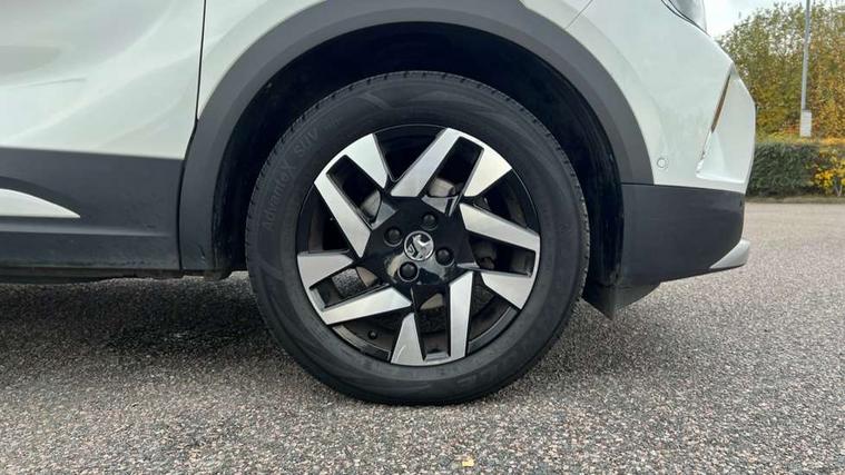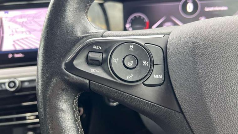 Automatic adaptive cruise control, Engine start/stop button, Front and rear parking distance sensors, Front camera system, Lane keep assist system (LAS) with Lane departure warning system (LDWS), Lights on audible warning, Multi function trip computer, Panoramic rear view camera, Power assisted speed sensitive steering, Side blind spot alert and flank guard, Smartphone integration compatible with Apple CarPlay and Android Auto, Speed sign recognition, Start/stop system, Vauxhall connect with e-Call, 6 speed manual transmission, Chassis drive line front wheel drive, Electronic fuel system, Front chassis equipment, Rear chassis equipment, Standard chassis suspension system ride handling, Bluetooth A2DP audio streaming, Flexible Roof Mounted Radio Aerial, Front USB connection, Mobile phone portal - bluetooth connect, vehicle microphone, handsfree calls, SMS read out and reply, phone book access, Multimedia Navi pro infotainment with satellite nav, 10" colour touchscreen, 6 speakers, DAB radio, 12" instrument panel, Apple carplay/Android auto, Steering wheel mounted controls, Two rear USB sockets, 3rd brake light, Adaptive brake lights, Automatic lighting control with tunnel detection, Automatically dimming anti dazzle rear view mirror, Black door mirror housings, Black rear spoiler, Body colour door handles, Body colour front and rear bumpers, Chrome effect skid plates, Chrome effect upper window moulding, Electrically adjustable, heated and folding door mirrors, Electrically operated front and rear windows with safety auto reverse and one touch up/down facility, Hazard warning lights, Heated rear window+rear wash/wipe, High beam assist, LED daytime running lights, LED front fog lamps, LED side repeat indicators, LED tail lights, Manual headlamp level control, Rear foglight, Rear side wing doors, Rear wiper, Reversing light, Solar heat absorbing windscreen and windows, Two speed rain-sensitive windscreen wipers with variable intermittent wipe, Windscreen and side window demist vents, 12V Accessory socket, 3 seat bench in 2nd row, 3 spoke flat bottomed leather steering wheel with satin chrome bezel, 4 speed fan with illuminated controls, 6 way manual adjustable driver fore/aft, up/down with reclining seatback, 6 way manual adjustable front passenger fore/aft, up/down with reclining seatback, Air recirculation system, Cabin particulate filter - removes dust, airborne particles and pollen, Centre console with two cup holders at front and one in rear, Chrome effect interior door handles, Door pockets with two litre capacity, Driver and passenger seat pocket, Driver and passenger sun visors with vanity mirror, Electronic climate control (ECC), Fabric/leather upholstery with jet black fabric side bolsters, Four adjustable facia vents, Four load restraint lashing eyes, Front centre armrest with storage, Front map reading lights, Front seat back storage pockets, Fully carpeted load area, Heated front seats, Heated steering wheel, Height adjustable front/rear head restraints, Illuminated load area, Interior courtesy light, Interior tailgate handle, Luggage compartment cover, Luggage compartment lighting, Reach + rake adjustable steering column, Single front passenger seat, Twin gas assisted tailgate struts, 2x Isofix child seat fitting on outer rear seats, 3x3 point rear seat belts, Anti-lock braking system (ABS), Automatic emergency city braking, Child proof locks on rear doors, Cornering brake control, Deactivation switch for front passenger front and side impact airbags, Drag torque control, Driver and front passenger airbags, front seat side impact airbags, full size curtain airbags, Driver drowsiness alert system, Electronic brake force distribution, Electronic Stability Programme (ESP), Emergency brake assist, Forward collision alert at all speed, Hill start assist, Inertia reel lap and diagonal seatbelts for all seats, Seatbelt unfastened audible warning and warning light, Straight line stability control, Traction control, Tyre pressure monitoring system, Electronically protected audio equipment, Freewheeling door locks, Immobiliser, Key left in ignition audible warning, Keyless entry and start, Locking wheel nuts, Remote control ultrasonic security alarm system, Visible vehicle identification number, Atlantis black trim inserts of front doors, Black facia with silver trim insert, Instrument panel bar in Light Gravel, 17" bi colour alloy wheels,
