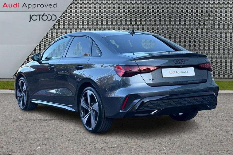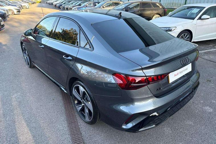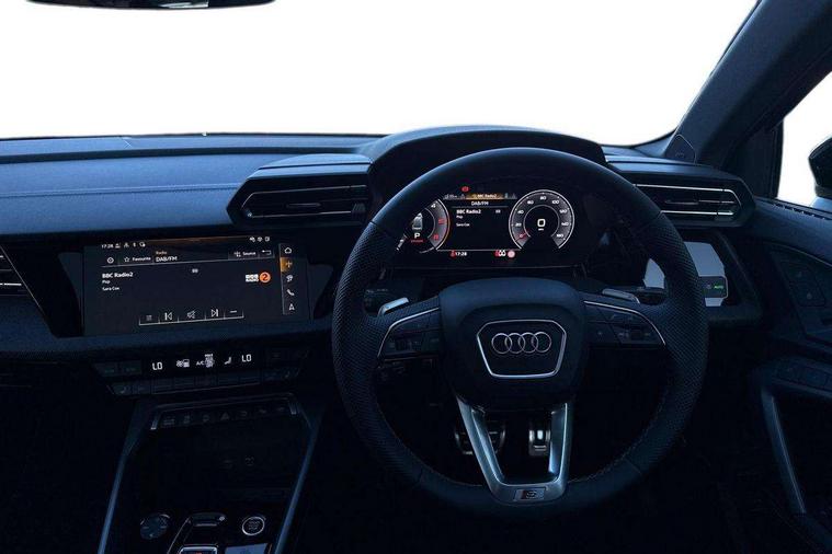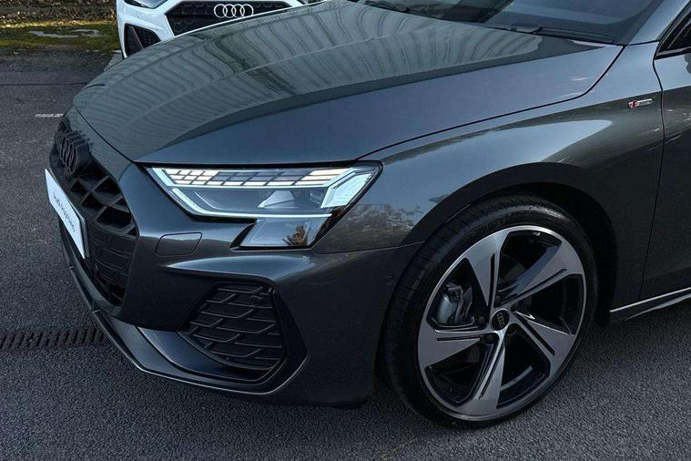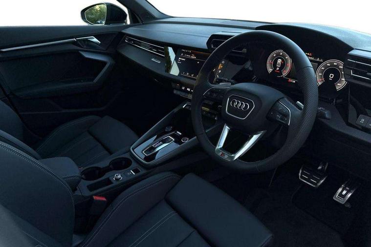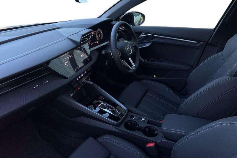 Adaptive cruise control (ACC), Adjustable speed limiter, Audi drive select (Auto, Comfort, Dynamic, Efficiency and Individual), Audi virtual cockpit plus - 12.3" full HD resolution dynamic digital instrument cluster, Automatic start/stop system with recuperation, Bluetooth interface, Camera based traffic sign recognition, Collision avoidance assistant, Driver attention and fatigue detection, e-Call (emergency call), Electromechanical power speed sensitive steering, Emergency assist, Intersection assist, Lane departure warning system, MMI Navigation Plus with high resolution 10.1" colour touch screen display, Park Assist with parking system Plus, Reversing camera, Service indicator, Smartphone interface with app store includes wireless Apple carplay, Android auto and Amazon alexa integration, Trip computer, Voice control system with natural language interaction, Diesel particulate filter, Sports suspension, Audi Phonebox light with wireless charging, Audi sound system - 10 loudspeakers including centre loudspeaker and subwoofer, DAB Digital radio, USB ports with charging function in the rear, Acoustic glass windscreen, All weather light, Anthracite grey Audi rings (front and rear), Audi beam uses LEDs to project the Audi logo onto the ground as you exit your A3, Auto dimming frameless rear view mirror, Automatic dynamic range control, Black accents front and rear bumpers, Black accents in the area of the Audi single frame grille, Black accents window trims strips, Dipped beam, main beam, position light and turning light, Electrically adjustable/heated/folding/auto dimming door mirrors with integrated LED indications + kerb view function for passenger side, Exterior model badging, Front and rear side air inlets in grained matt black with dark liquid chrome frame, Front electric windows, Front radiator grill in high gloss dark chrome, Heat insulating glass windscreen, Illuminated door sills with aluminium inserts at the front with S logo, Intersection light, LED 3rd brake light, LED brake lights, LED daytime running x3, LED headlights with LED rear lights and dynamic rear indicators, LED rear number plate lights, LED reverse light, LED tail lights, Light and rain sensors, Manoeuvring light, Motorway light, Privacy glass - dark tinted rear window, rear door and side windows, Rear boot, Rear diffuser and grill in grained matt black with inlay in dark liquid chrome, Rear electric windows, Rear side wing doors, Side sill trim in dark liquid chrome, Static Cornering lights, 12V socket and storage compartment in front centre console, 3 seat bench in 2nd row, 3 spoke flat bottomed leather multifunction sport steering wheel with gear shift paddles, 3-zone deluxe automatic air conditioning, 4 way electrically adjustable lumbar support for driver and front passenger, 40/20/40 split folding rear seat bench, Black cloth headlining, Black front and rear floor mats, Front and rear centre armrest in artificial leather with contrasting stitching on armrests and instrument panel, Front and rear headrests, Heated front seats, Height and reach adjustable steering wheel, i-Size child seat mounting on the front passenger side and outer rear seats, i-Size and top tether on the outer rear seats, Manual boot compartment lid, Manually adjustable front seats, Rear centre armrest with cupholder, S badging on the steering wheel, Seat side bolsters, Single front passenger seat, Stainless steel pedals and front footrest in black, Twin leather upholstery with front sports seats S embossed logo, Aluminium interior elements pack - A3, 3x3 point rear seat belts, Driver and front passenger airbag with passenger airbag deactivation, Electronic Stabilisation Control (ESC) including ABS, ASR and EDL, First aid kit with warning triangle and 2 safety vests, Front side airbags with head airbags and interaction airbag, Hill hold assist, Pre-sense front with pedestrian and cyclist detection, Seatbelt monitoring, Tyre pressure loss indicator, Anti theft alarm, Anti-theft wheel bolts, Electronically operated child locks, Immobiliser, Black dashboard,