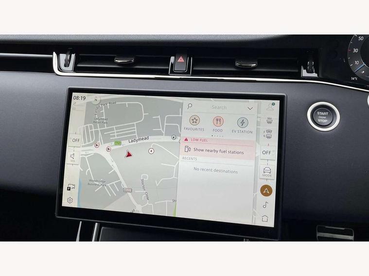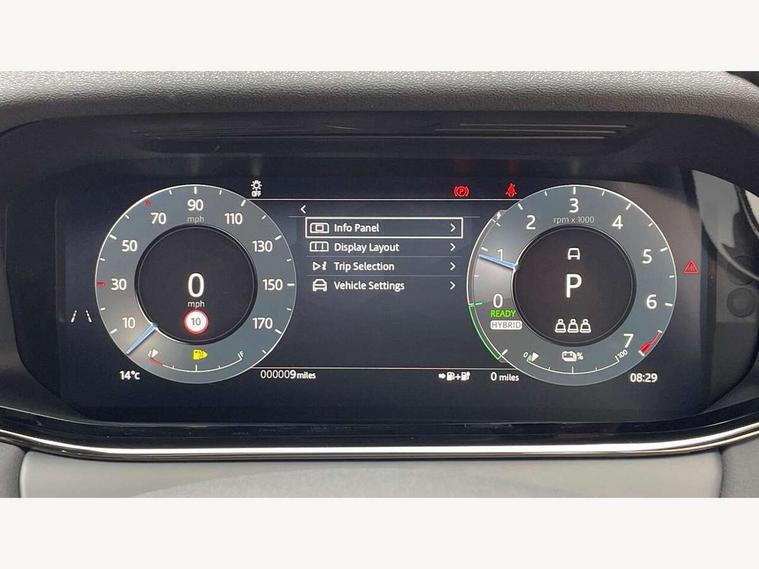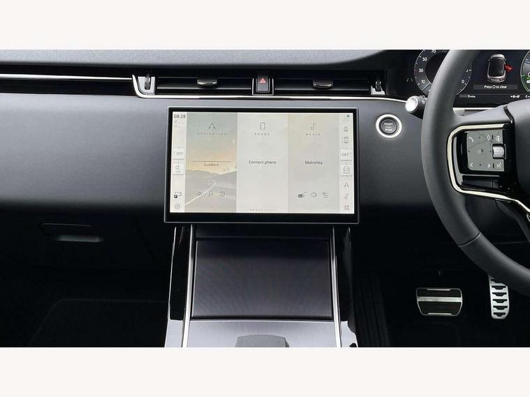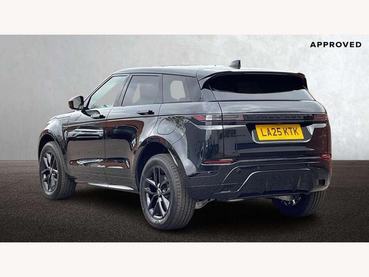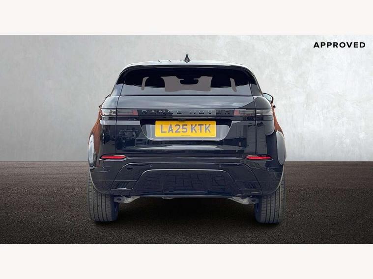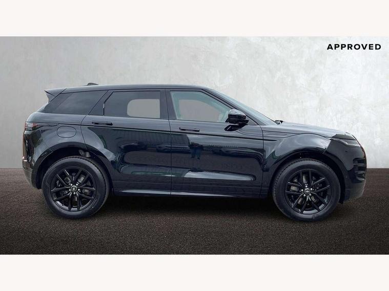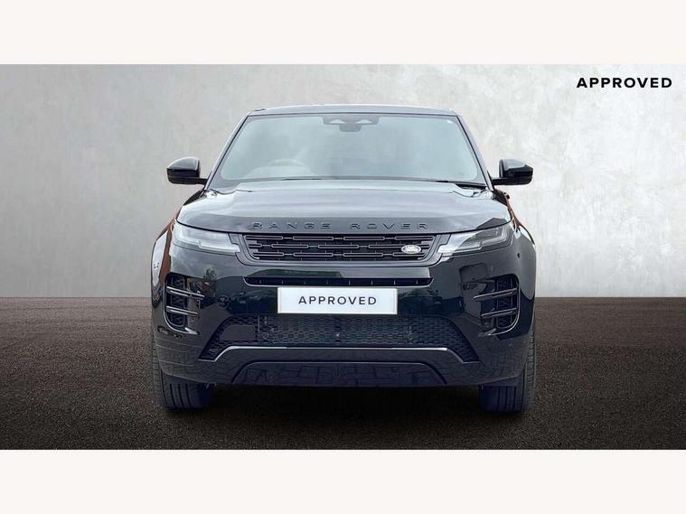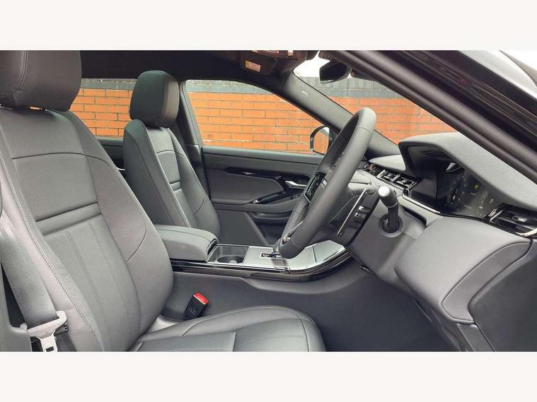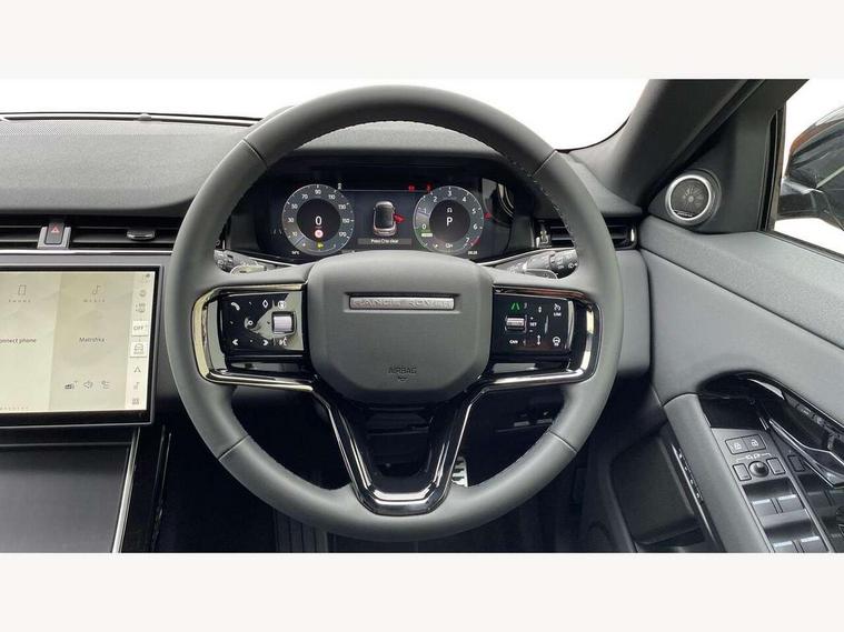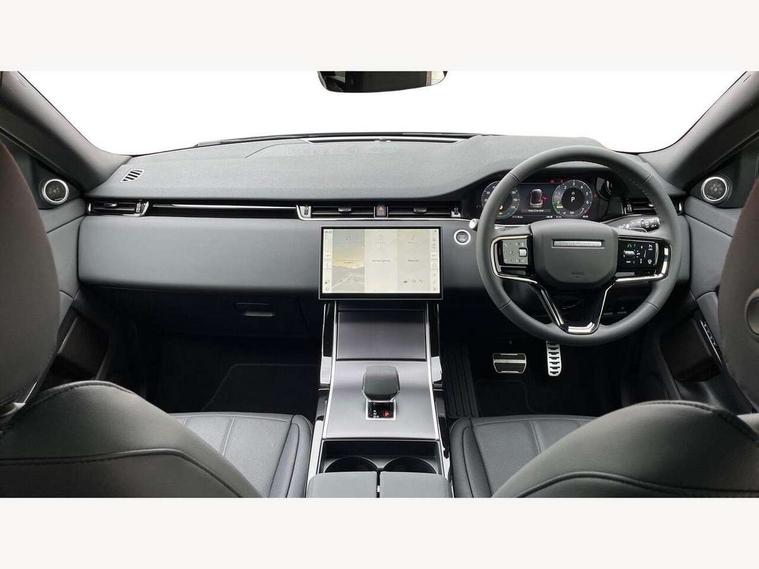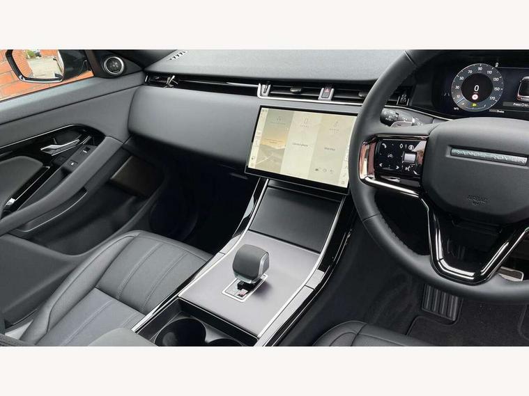 11.4" touch screen, 3D 360 degree surround camera with wade sensing, Adaptive cruise control, Android Auto, Apple car play, Blind spot assist, Bluetooth connectivity, Brake pad wear indicator warning light, Driver condition monitor, eCall emergency system, Eco mode, Electronic power assisted steering (EPAS), Front and rear parking aid, InControl remote, Interactive driver display, Land Rover InControl apps, Lane keep assist, Pivi pro connected includes diamond pivi variant, smart settings, connected navigation pro, nuance speech licence, Powered tailgate/boot lid, Rear collision monitor, Rear traffic monitor, Tailgate, Traffic sign recognition with adaptive speed limiter, Voice control system, Wireless device charging, All terrain progress control, Electric rear axle drive, Home charging cable, Large fuel tank, Passive suspension, Public charging cable, Terrain Response 2, Digital Audio Broadcast radio-DAB, Meridian sound system with 400W subwoofer and 11 speakers, Steering wheel mounted controls, Acoustic laminated windscreen, Auto dimming interior rear view mirror, Auto headlights, Auto high beam assist, Automatic headlight levelling, Black contrast roof, Electric windows with one touch open/close and anti trap, Fixed panoramic sunroof with powered sunblind, Flush deployable exterior door handles, Front and rear recovery eyes, Heated rear window with timer, Heated washer jets, Heated windscreen, LED headlights with signature DRL and LED tail Lights, Metallic paint, Power fold, auto-dimming, heated door mirrors with approach lights and auto dimming driver side, Privacy glass, Rain sensing windscreen wipers, Rear animated directional indicators, Rear fog lights, Rear side wing doors, Rear wiper, Tailgate spoiler, Third brake light, Winter wiper park position, 12 way driver memory and 10 way passenger electric front seats with 2 way manual headrest + 4 way lumbar support, 40:20:40 split folding rear seats with centre headrest and armrest, Bright metal pedals, Cabin lighting, Carpet mats, Chrome tread plates with range rover branding Includes stainless steel loadspace scuff plate with etched graphic, Customer configurable single point entry, Front and rear cupholders, Grained Leather upholstery, Heated front seats, Heated steering wheel, Isofix system on outer rear seats, Manually adjustable steering column, Overhead lighting console, Overhead stowage for sunglasses, Passive front head restraints, Rear air vents, Rear head restraints, Satin chrome gearshift paddles, Single passenger seat, Standard steering wheel with Moonlight Bezel, Sunvisors with illuminated vanity mirrors, Twin sliding front centre armrest, Two zone climate control, Black exterior styling pack - Evoque, Power socket pack 2 - Evoque, 3 rear 3 point seatbelts, Anti-lock braking system (ABS), Black brake calipers, Brake hold function, Customer configurable autolock, DSC - Dynamic Stability Control, Electronic brake force distribution, Electronic parking brake, Electronic traction control, Emergency braking, Front and rear seatbelt reminder, Hill descent control, Hill launch assist, Low traction launch, Occupant protection assist, Passenger seat occupant detector, Power operated child locks, Roll stability control, Six airbags - Driver and passenger airbags/driver knee airbag/front side airbag and curtain airbags, Torque vectoring brake, Tyre pressure monitoring system, Alarm, Immobiliser, Intrusion sensor, Keyless entry, Locking wheel nuts, Secure tracker pro, Black brushed aluminium finisher, 19" gloss black alloy wheels - Style 5136, All season tyres, Tyre repair system,