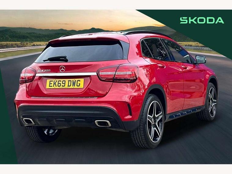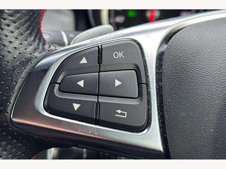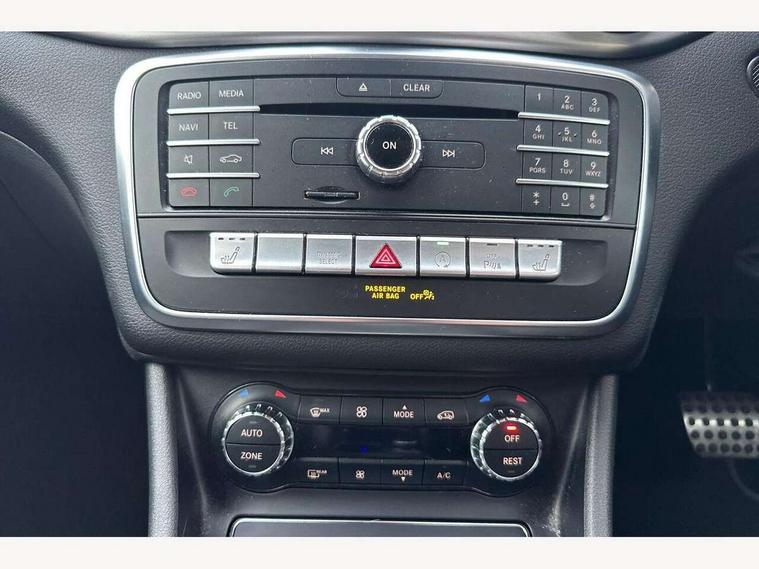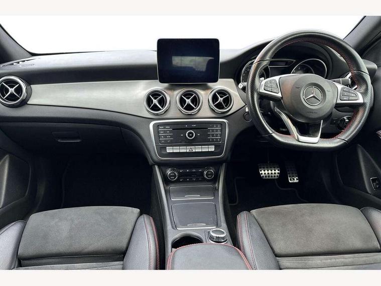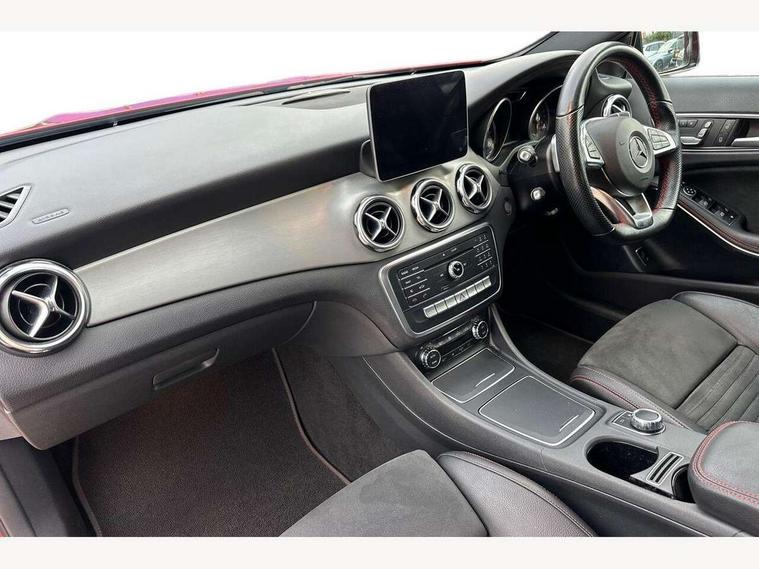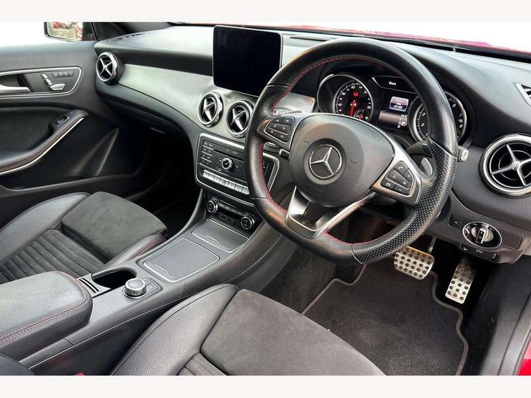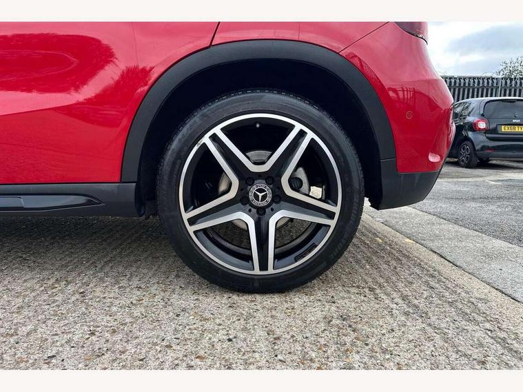 180 degree reversing camera with parking guidelines, 4 analogue dials and needles suspended in six o'clock position, Attention assist, DYNAMIC SELECT with a choice of driving modes (ECO, Comfort, Sport and Individual), Easy-pack tailgate - Powered opening/closing automatically, ECO start/stop function, Fluid level warning indicator for fuel, oil, coolant and washer fluid, Instrument cluster, Mercedes me connect including emergency call system, accident recovery, breakdown and maintenance management, Multi function trip computer, Outside temperature gauge, Parking pilot with front and rear parking sensor and steering assist, Service indicator (ASSYST), Smartphone integration with Apple CarPlay and Android auto, Sports speed sensitive direct steer system with servo assistance, Off road comfort suspension, 8" media display touchpad, Audio 20 radio/single CD/MP3, 6 speakers, telephone keypad, twin radio tuner, Bluetooth, 2 USB ports, SD card slot and Garmin Map pilot nav system, Media interface, Adaptive brake lights, Automatic headlamp activation, Body colour door handles with chrome inserts, Body coloured bumper with front and rear apron trim in matt titanium grey, Chrome beltline strips, Electric front windows, Electrically adjustable and heated door mirrors, Front door sills with Mercedes-Benz lettering, Front fog lights, Full LED tail lamps, Heat insulating dark tinted privacy glass from the B-pillar backwards, Heated glass rear windscreen + timer control, LED High performance headlamps with adaptive highbeam assist, LED third brake light, Panoramic sliding sunroof, Rain sensor windscreen wipers with two sensitivity stages, Rear windscreen intermittent wiper with automatic activation when reversing, Roof mounted radio aerial, Two pipe visible exhaust system with chrome tailpipe tips, 1/3 to 2/3 split folding rear seats, 12 colour Ambient lighting, 12V power socket in centre console, 12V socket in luggage compartment, 3 spoke and 12 button flattened bottom multifunction steering wheel trimmed in nappa leather with perforated leather grip area, Air conditioning - Two zone thermotronic luxury automatic climate control with display, Air vents with chrome surround and cruciform nozzles, Ambient lighting in front headrests, AMG brushed stainless steel sports pedals with rubber studs, AMG floor mats with AMG lettering and stiched edging, Artico man-made leather/Microfibre Dinamica upholstery with red contrast stitching, Auto Mercedes-Benz child seat recognition sensor, Black roof lining, Electrically adjustable front memory seats with four way lumbar support, Front centre armrest with stowage, Front footwell lights, Front seat cushion length adjustment, Gearshift paddles, Heated front seats, Illuminated door sills, Illuminated glove compartment stowage, Interior door handle illumination, Luggage compartment cover, Manually height and reach adjustable steering column, Rear footwell lights, Rear Reading Lamps, Sports seats with integrated head restraints, Stowage compartment beneath load compartment floor, Stowage compartment lighting, Sunvisors with illuminated vanity mirrors, Twin front cup holders, Two outer rear seat isofix and top tether child seat fixing points, White courtesy and red warning lights in front doors and boot lid, Comfort seat pack - GLA Class, Keyless go comfort pack - GLA Class, Mirror pack - GLA Class, 3 rear three point seatbelts, Active bonnet pedestrain safety measure which detects an impact and raises bonnet by 65mm, Active brake assist, Adaptive brake assist with hold function and hill start assist, Anti-lock braking system (ABS), Black seat belts, Childproof locks manually operated for rear doors and electrically operated for rear power windows, Crash responsive emergency lighting, Drivers knee airbag, Dual stage driver and front passenger airbags, Electronic parking brake, Electronic stability programme with acceleration skid control, Front and rear seatbelt reminder, Front passenger seat occupancy sensor, Front side airbags, Tyre pressure monitoring system, Warning triangle and first aid kit, Window airbags, Anti-theft alarm system/interior protection with tow-away protection and interior monitoring systems, Chrome surround in electric key, Remote central locking, Light aluminium with longitudinal grain interior trim, Run flat tyres,