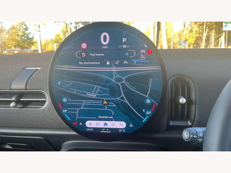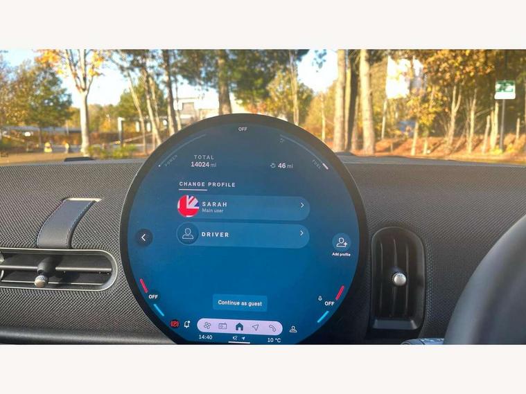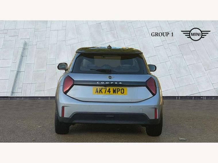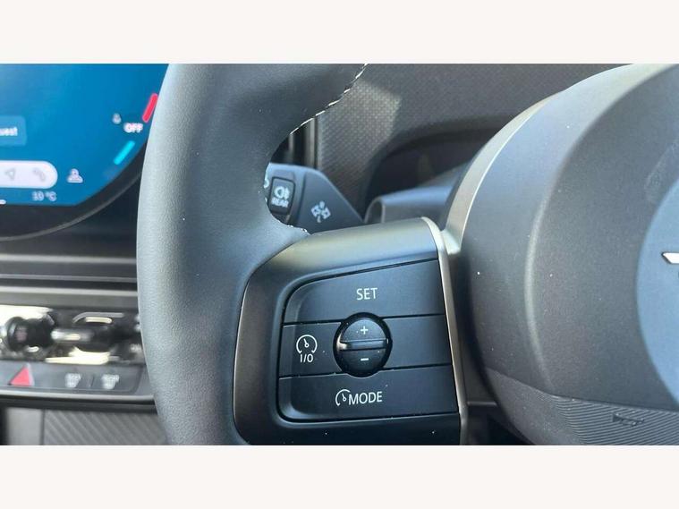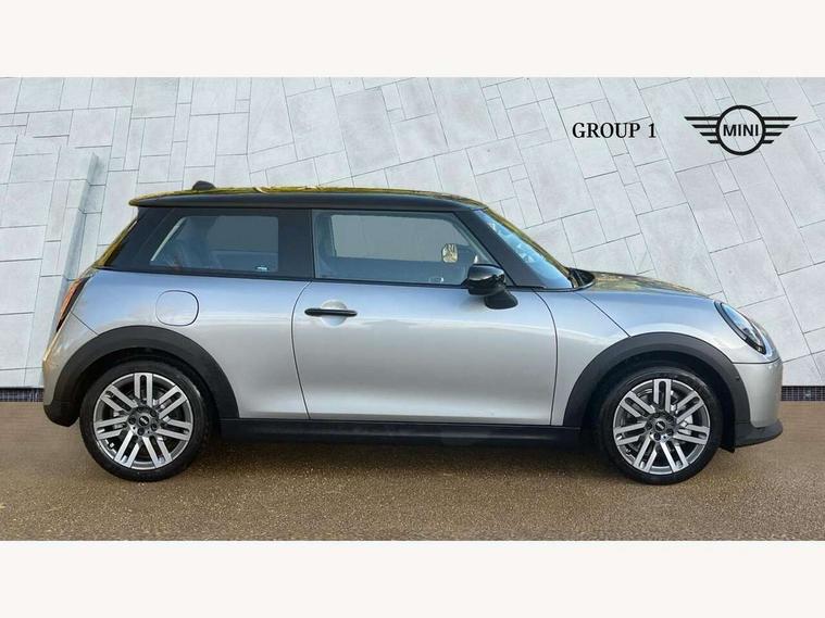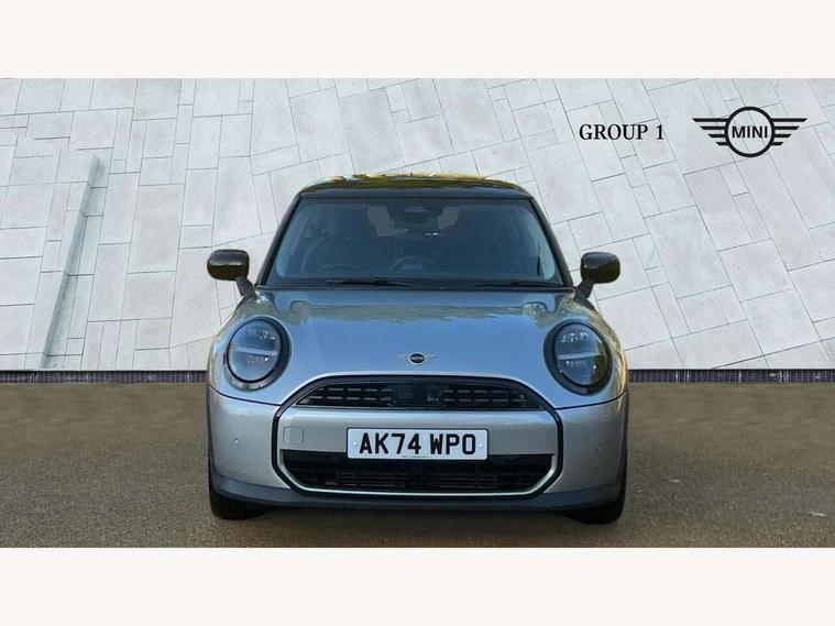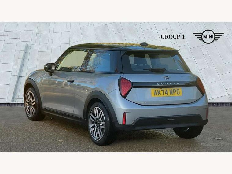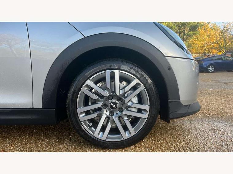 Central toggle bar, Circular OLED Screen, Compatible mobile phone bluetooth with audio streaming, Cruise control, Digital instrument cluster, Electro-mechanical speed dependant steering assistance, Emergency call service, MINI Experience Modes, Mini navigation system, On board computer, Service interval indicator, Tailgate, 7 speed steptronic transmission with double clutch, DAB Digital radio, Personal eSim, Auto headlights, Black grille surround, Electric adjustable heated door mirrors, Electric front windows, Heated rear window, Heated windscreen washer jets, LED 3rd brake light, LED daytime running lights, LED Headlights, LED indicator lights, LED rear lights, Rain sensor window wipers, Rear fog lights, Rear window wiper, 2 seat bench in second row, 2 zone automatic air conditioning, 60/40 rear seat bench, Ambient lighting, Cupholders, Floor mats, Front and rear head restraints, Front compact armrest, Heated steering wheel, Height adjustable passenger seat, Light headliner, Luggage compartment lighting, Single front passenger seat, Sport Vescin Steering Wheel black with vibrant silver accents, Sunvisors with vanity mirrors, Vescin/Cloth upholstery, Driving assistant pack - Cooper Hatchback, Park assistant pack - Cooper Hatchback, 3 point seatbelts on all four seats, 6 Airbags - front, side, head and seat belt tensioners, Acoustic pedestrian protection, Anti-lock braking system (ABS), DSC - Dynamic Stability Control, Electronic parking brake, Front and rear disc brakes, Front ISOFIX (iSize), Front passenger airbag deactivation, Traction control, Tyre pressure monitoring system, Alarm, Immobiliser, Remote central locking, Black/Blue dashboard knit, Tyre repair kit,