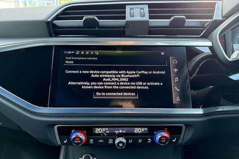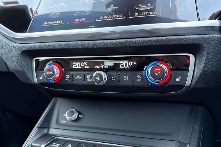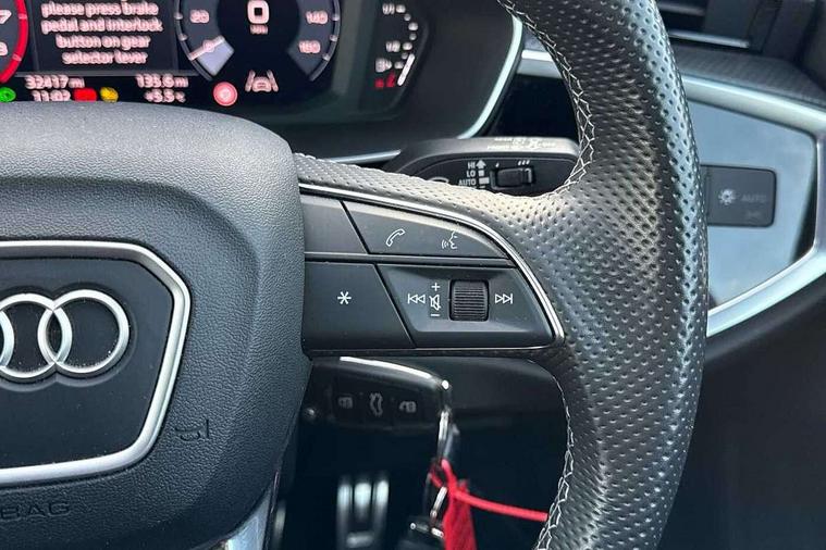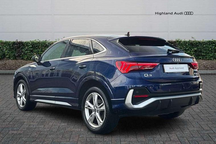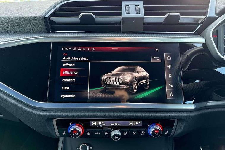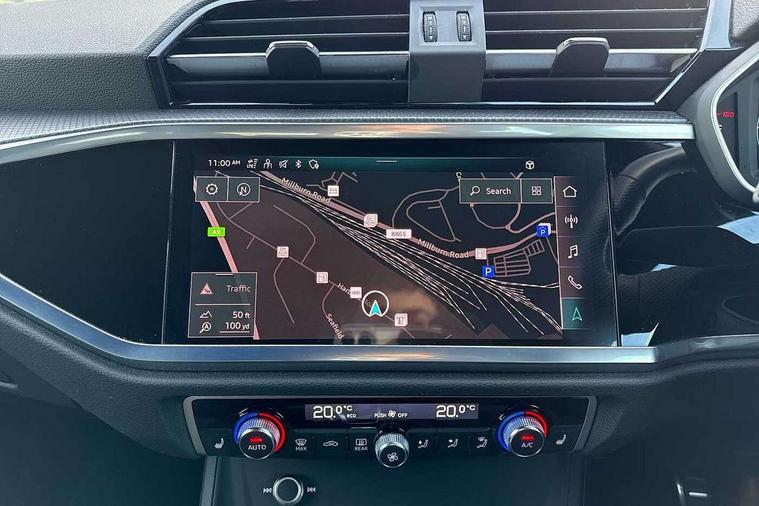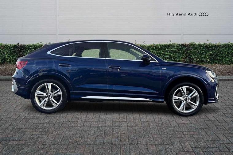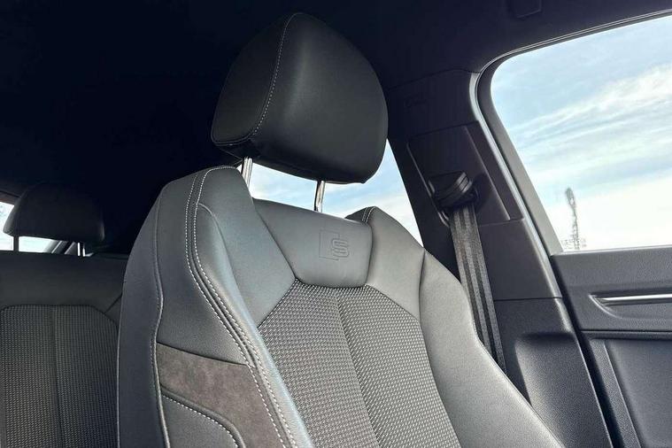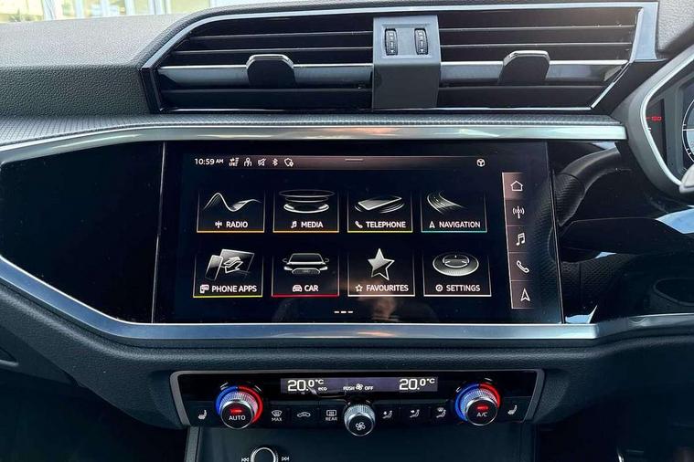 Audi connect safety and service (e-call), Audi drive select, Audi lane departure warning, Audi Virtual Cockpit - 10.25" display, Bluetooth interface, Camera based traffic sign recognition, MMI Navigation Plus with high resolution 10.1 inch touchscreen colour display, Power operated tailgate, Progressive steering, Service interval indicator, Smartphone interface includes wireless Apple carplay/Android Auto, Start stop system with recuperation, Voice control system with natural language interaction, Sports suspension, 2 USB-C ports with charge and data functions, 6 passive loudspeakers, DAB digital radio module, Acoustic windscreen, Aluminium window trim, Auto dimming frameless rear view mirror, Diffuser grille in grained matt black, Diffuser trim in selenite silver, Electrically folding, adjustable and heated door mirrors with integrated LED side indicators and kerb view function for passenger side, Front and rear electric windows, Front fog lights, Front side air inlets in selenite silver, Front underbody protection in manhattan grey paint finish, Grille surround in aluminium silver matt, High gloss black finish B and C pillars, LED headlights with LED daytime running lights, LED rear lights, LED third brake light, Privacy glass dark tinted rear and rear-side windows (from B-pillar backwards), Radiator grille in titanium black with inlay in matt aluminium silver, Rain and light sensors, Rear side wing doors, Rear underbody protection in matt black, Rear wiper, S line badges on front wings, Side skirt insert in matt Platinium grey, Variable front intermittent wipers, 12V socket in rear centre console, 3 seat bench in 2nd row, 40:20:40 folding with manual adjustment for 60:40 forwards/backwards position and backrest angle, Adjustable rear seat bench/backrest with centre armrest and cupholder, Black cloth headlining, Dual zone electronic climate control, Front and rear black floor mats with contrast stitching, Front and rear headrests, Front and rear roof module including reading lights, Front centre armrest, Glove compartment lighting, Height and reach adjustable steering wheel, Illuminated door sill trims with S logo, ISOFIX child seat mounting for front passenger with airbag deactivation and outer rear seat including top tether attachment point for outer rear seats, Luggage compartment light right in white, Luggage compartment sill protection in stainless steel, Manual front seats with height adjustment, Perforated leather gearknob, Single front passenger seat, Stainless steel pedals, Non smoking pack - Q3, 3x3 point rear seatbelts, 6 airbags - Driver, front passenger, curtain and side windows, Audi pre-sense front with pedestrain and cyclist recognition, Electromechanical parking brake, Electronic stabilisation control including ABS, ASR and EDL, Front seatbelt reminder, Hill descent control, Hill hold assist, Manual child lock in rear doors, Pre sense basic, Seatbelt monitoring, Tyre pressure warning, Warning triangle and first aid kit, Anti theft alarm, Anti theft wheel bolts, Immobiliser, Remote central locking, Black dashboard, Dark matt brushed aluminium inlay, Detail dashboard around MMI touch colour display in glass look, black with surround in aluminium look, Leatherette door armrest,