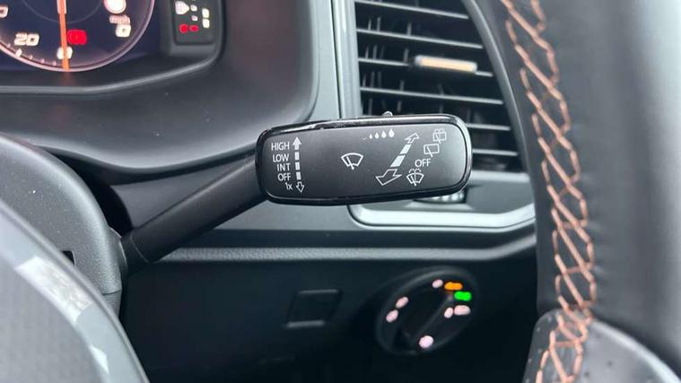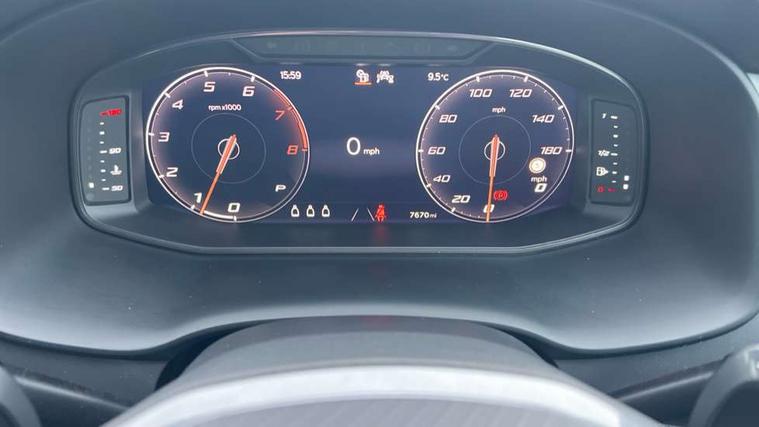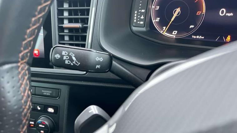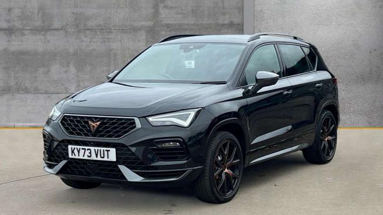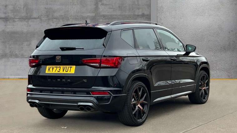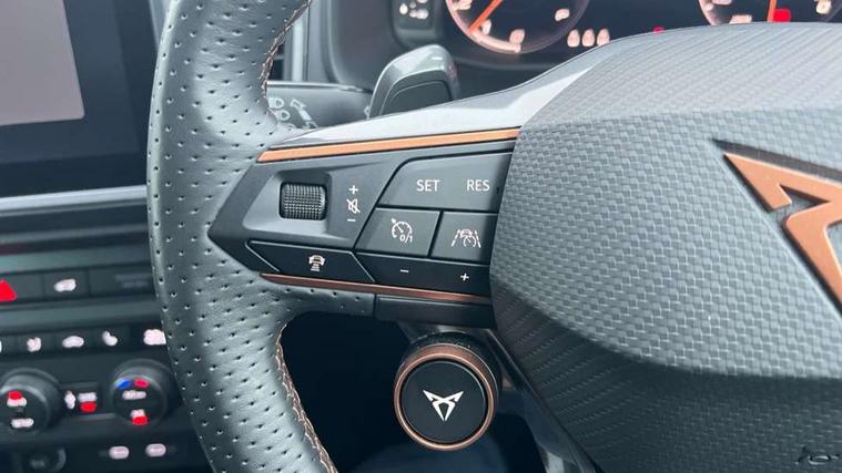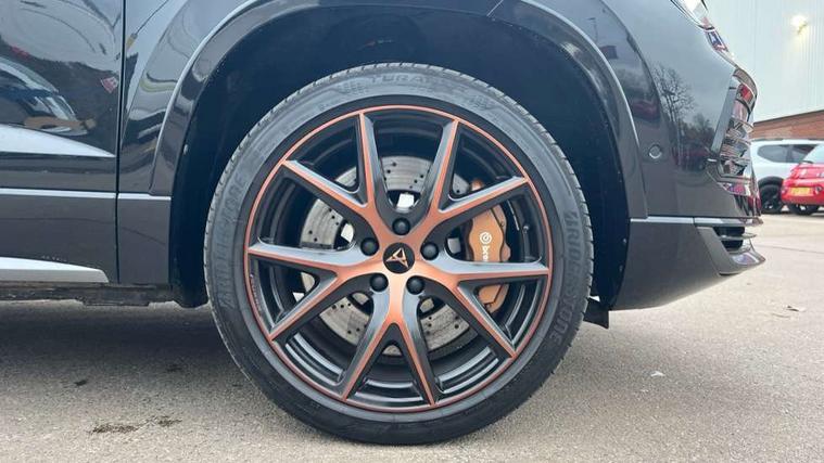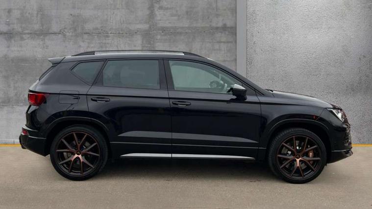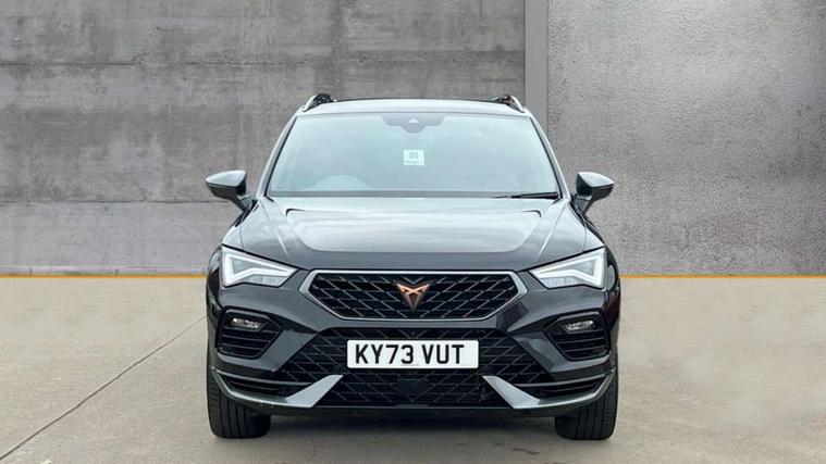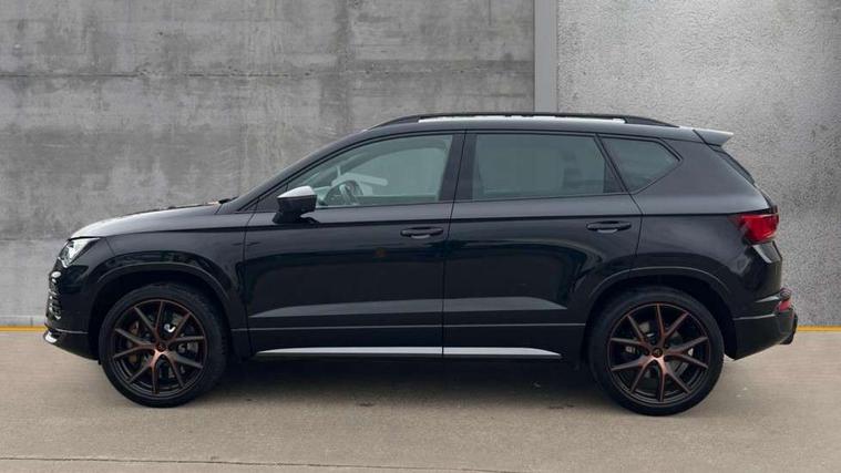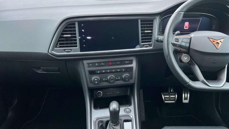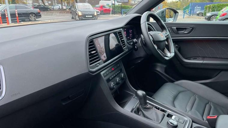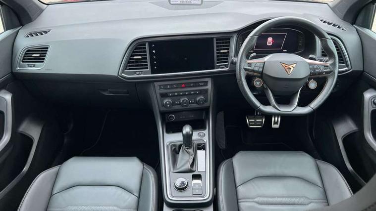 CUPRA drive profile -Normal, Sport, CUPRA and Individual modes, steering/throttle response, gearshift mode, sound actuator and dynamic chassis control, Digital cockpit, E-call, Electric tailgate with virtual pedal, Front and rear view camera, Outside temperature gauge, Progressive power assisted steering, Self parking functionality (includes front and rear parking sensors), Top view camera, Trip computer, Wireless full link smartphone integration, Wireless phone charger, CUPRA sport suspension, Steering wheel mounted audio/phone controls, Body colour bumpers with dark aluminium diffusor, Body coloured wheel arch surrounds, Dark tinted rear windows, Daytime running lights, Door mirrors with welcome CUPRA light silhouette, Dynamic headlight range control with self adjusting whilst driving, Electric adjustable/heated/folding door mirrors, Front and rear electric windows, Front grille frame in chrome, Full LED headlamps with lens and LED front fog lamps with cornering function, Gloss black door mirrors, Gloss black roof rails, Gloss black side mouldings, Gloss black side window trim, Illuminated aluminium front door sill, LED rear tail lights with dynamic indicators, Rear fog lights, Rear side wing doors, Rear spoiler, Rear wash/wipe, Specific CUPRA design front bumper, Third brake light, Visible twin black exhaust pipes in both sides with dark aluminium diffuser, 12v socket in front, 3 seat bench in 2nd row, 60/40 split folding rear seat, Aluminium pedals, Black roof lining, Cupra steering wheel emblem, CUPRA supersports steering wheel including satellite buttons, Dual zone climate control, Electric driver seat with memory function, Front and rear head restraints, Front centre armrest, Front seat back storage pockets, Heated front seats, Heated steering wheel, Height adjustable driver and passenger seat with lumbar adjustment, ISOFIX points in outer rear seats with top tether anchorage points, Leather sport bucket seats, Leather steering wheel and gear knob, Multicoloured ambient lighting with LED interior illumination, Pedal cluster, Rear armrest and easy back seat release mechanism from boot, Single front passenger seat, Steering wheel mounted gearshift paddles, Storage compartment in roof console for sunglass, Storage compartment under driver's seat, Convenience pack - Ateca, Interior lighting pack - Ateca, Navigation system plus pack with DAB - Ateca, Safe and driving pack with High beam control - Ateca, 3x3 point rear seatbelts, ABS, Traction control system (TCS), Electronic stability control (ESC) and Electronic differential lock system (XDS), Airbags - Driver and front passenger airbag with deactivation, front side, two curtain and driver's knee airbags, Black brake callipers with CUPRA logo, Electric parking brake with auto hold function, Front and rear seatbelt reminder, Front assist with autonomous emergency braking, Hill hold control, Manual rear child locks, Performance brakes with front brembo calipers, Single tone horn, Tiredness recognition system, Tyre pressure monitoring system, Alarm, Keyless entry, Locking wheel bolts, 19" Copper alloy wheels, Tyre repair kit,