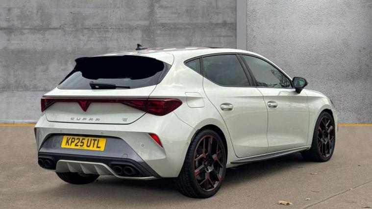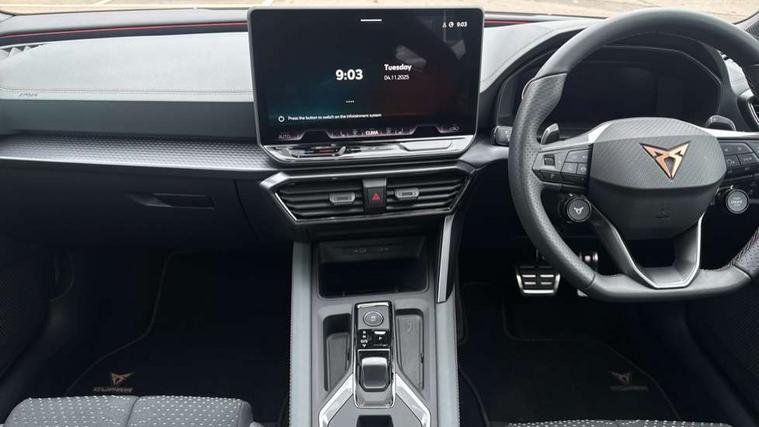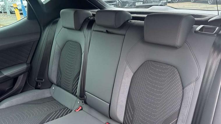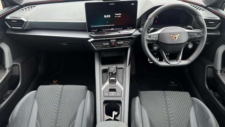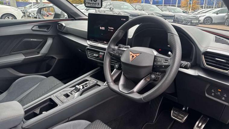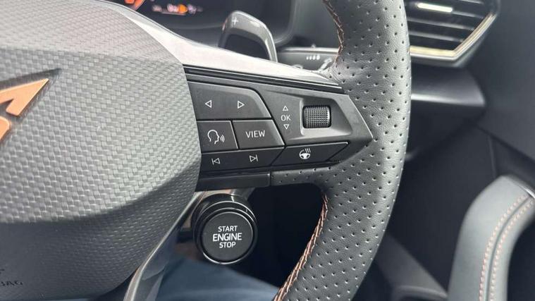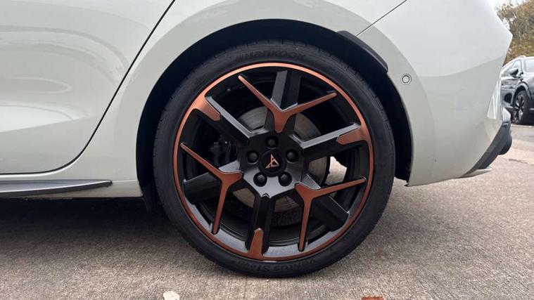 Adaptive cruise control with follow-to-stop and speed limiter, CUPRA drive profile selection with (Comfort/Sport/Individual), throttle response and gearshift mode, Digital cockpit, Dynamic road sign display, E-call, Four x USB Type C ports (2 in front and 2 in rear), Front and rear parking sensors, Front assist with forward collision warning braking reaction to vehicles, pedestrians and cyclists, Full link smartphone integration with Mirror Link, wireless Apple CarPlay and wired Google Android Auto, Intelligent park assist, Lane change assist with emergency assist, Lockable tailgate, Rear view camera, RPM, trip computer, outside temp gauge, instrument light brightness, low fuel warning light, lights on reminder, gearshift indicator, Service interval indicator, Side and exit assist, Start/stop system with regenerative braking, Wireless phone charger, Auxiliary input socket, Immersive by Sennheiser TM - 10 speakers, 1 central speaker, 1 subwoofer, Auto dimming rear view mirror, Body colour door handles, Body coloured bumpers, Cupra sports bumpers, Dark tinted rear windows, Electric front/rear windows, Electrically adjustable, heated and folding door mirrors, High beam assist, LED front fog lamps with cornering function, LED rear fog lamp, Matrix LED Headlights with variable light distribution, Matrix Beam and Dynamic headlight range control, Rain sensing wipers, Rear side wing doors, Rear wash/wipe, Separate daytime running light with automatic headlight control and coming home feature, Third brake light, Welcome light with logo projector in door mirrors, 12v power supply in centre console, 3 seat bench in 2nd row, 5 headrests, 60/40 split rear bench seat with armrest, Ambient lighting (glovebox, footwell, ambient lighting multicoloured), Black headlining, Cupra sports pedals, CUPRA Supersports, heated steering wheel with satellite buttons, Electrically adjustable driver seat and lumbar support with memory function + manually adjustable passenger seat, Folding boot cover, Front and rear reading lights X 4, Front centre armrest, Heated front seats, Height/reach adjust steering wheel, Illuminated interior front door sills, Interior wraparound lighting, ISOFIX points in outer rear seats with top tether anchorage points, Single front passenger seat, Sunvisors with illuminated mirror, Textile cloth upholstery, Three zone climate control, Dynamic and comfort pack - Leon Cupra, Media system plus with 12.9" display + navigation pack - Leon Cupra, 3 point seatbelts on all rear seats, ABS, Akebono performance brake calipers, Brake control system - ESC and brake booster, Child proof door locks, Driver and front passenger airbags with front passenger airbag de-activation, front side and curtain airbags, Electronic parking brake, Hill hold control, Pre-crash front and rear seat belt tensioner, window closure and hazard lights, Rear disc brakes, Seat belt reminder for front and rear seats, Tiredness recognition system, Tyre pressure monitoring system, Anti theft alarm system with interior monitoring in cab, backup horn and towing protection, KESSY Advanced - Keyless start, keyless entry, Locking wheel bolts, Chrome and copper interior detailing, 19" Hailstorm forged machined R black and copper alloy wheel with 91Y tyres, Breakdown kit, Tool kit,