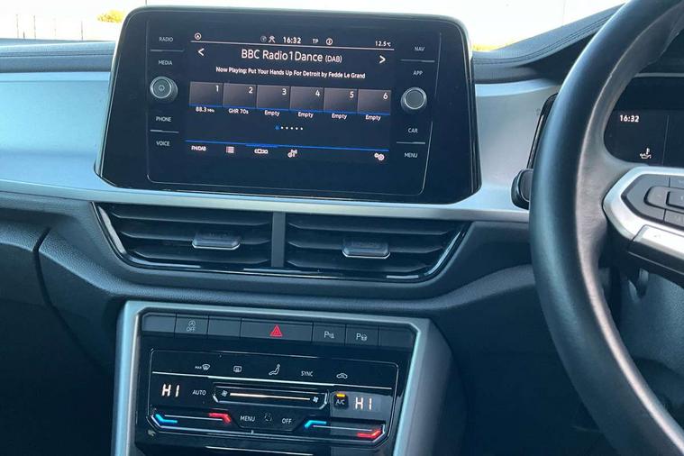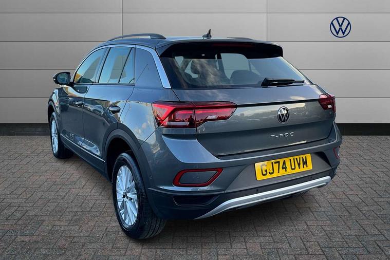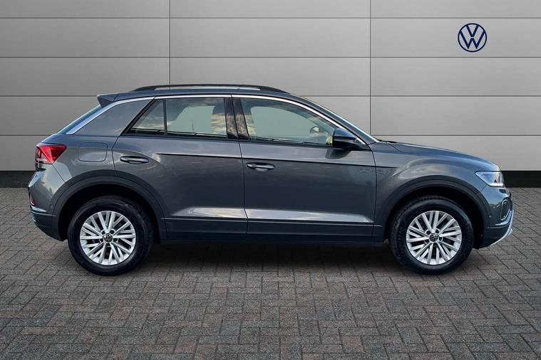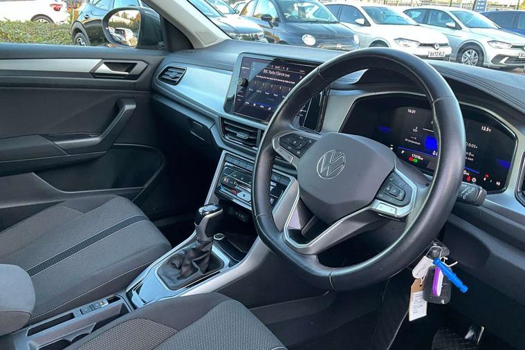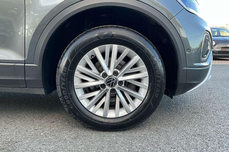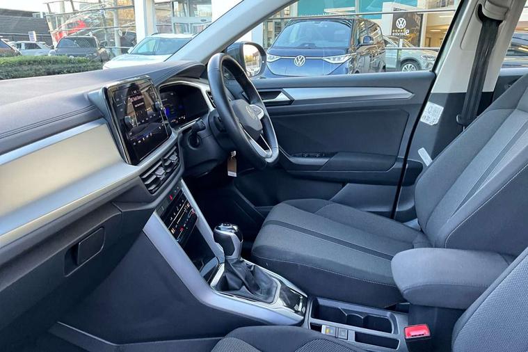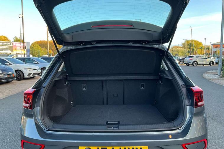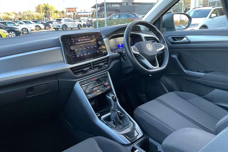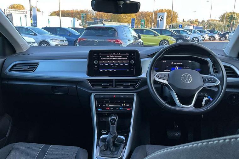 Advanced driver attention and drowsiness monitor, Dynamic road sign display, Emergency call service, Lane keeping system Lane Assist, Mobile phone interface, Modified key software - reduce switch off time for key status change to Long no motion, Online services, Park assist including front and rear parking sensors, Power assisted speed sensitive steering, Service interval indicator, Tailgate/trunk lid release from outside, Think blue trainer driver tips and journey analysis, Warning sound and light for front seatbelts unfastened, Wireless app connect, Wireless Smartphone charger, Battery regeneration during braking, Front shock absorption, Rear shock absorption chassis with increased ride height, Start/stop function with battery regeneration, DAB Digital radio, Diversity antenna for FM reception, Front and rear 6 speakers, Music playback - MP3, WMA and AAC files, Premium USB cable in choice of either Apple or Android smartphone compatibility, SD card slot, Simultaneous pairing of 2 compatible mobile devices, Title and cover art display, We Connect and We Connect Plus functionality, Auto dimming interior rear view mirror, Automatic hazard lights activation under emergency braking, Automatic headlight control with LED separate daytime running lights with coming/leaving home function, Black roof rails, Body coloured bumpers and radiator grille with chrome trim and front fog lamps with chrome bezel, Body coloured exterior mirror housings and door handles, Electrically adjustable and heated door mirrors, Extended roof spoiler, Exterior mirrors aspherical on driver side, convex on front passenger side, External USB type C socket and charging sockets, Front windscreen wiper with intermittent wipe and 4 position delay, Heated rear window, LED 3rd brake light, LED rear combination lamps, LED rear number plate lights, Power windows with comfort operation and circuit breaker, Rain sensor, Rear exhaust tailpipe, Rear fog light on one side and reversing lights on both sides, Rear side wing doors, Rear wash/wipe with intermittent wipe setting, Remote electrically foldable door mirrors, puddle lights and reverse activated passenger's door mirror, 12V power socket in centre console, 3 rear head restraints, 3 seat bench in 2nd row, 4 load lashing points in luggage compartment, Air care climatronic air conditoning system with active combination filter and 2-zone temperature control, Ambient lighting with mirror logo projection, Cloth upholstery, Door and side trim panel in cloth, Drawer under drivers seat, Driver/front passenger seat height adjustment, Front centre armrest, Front comfort sports seats, Front cupholders x 2, Front reading light, Front seat back storage pockets, Glove compartment door with light, Instrument lighting, white adjustable panel illumination, Interior light delay, Isofix child seat preparation, Leather gearshift handle, Load-through provision with cup holder when folded down ('Unsplit rear seat bench, split folding backrest, with centre armrest), Luggage compartment lighting, Lumbar support for driver's and front passengers seat, Non-folding front passenger seat backrest, Single front passenger seat, Storage compartment in left and right luggage area, Storage compartment in rear doors, Storage compartments in driver and front passenger doors, Sunvisors with illuminated vanity mirrors, Variable boot floor, height adjustable and removable, Driver assistance pack without proactive passenger protection - T-Roc Life/Match, 3 point height adj front seatbelts + pretensioners, 3 point seatbelts in outer rear with ECE label, ABS, Child locks on rear doors, City emergency braking and pedestrian monitoring, Driver and front passenger airbag with front passenger airbag deactivation, Driver and front passenger safety-optimised head restraints, Drivers seatbelt reminder, Electronic parking brake, Electronic Stability Control (ESC) inc EDL (Electronic Differential Lock) and ASR (Traction Control), Front and rear passengers curtain airbag system including front side airbags, Front disc brakes, Hill start assist, Predictive pedestrian protection, Rear disc brakes, Two tone horn, Tyre pressure loss indicator, Volkswagen roadside assistance, Alarm with interior protection, Pewter matt decorative inserts for intrument panel, centre console and door panels at the front, Trims for alloy wheels,