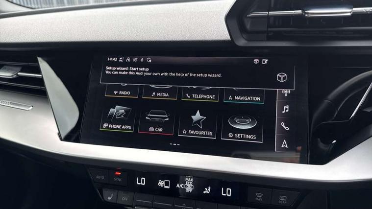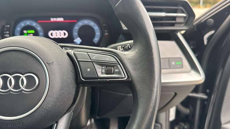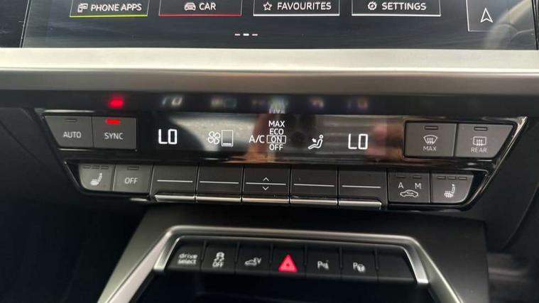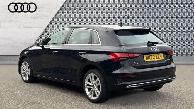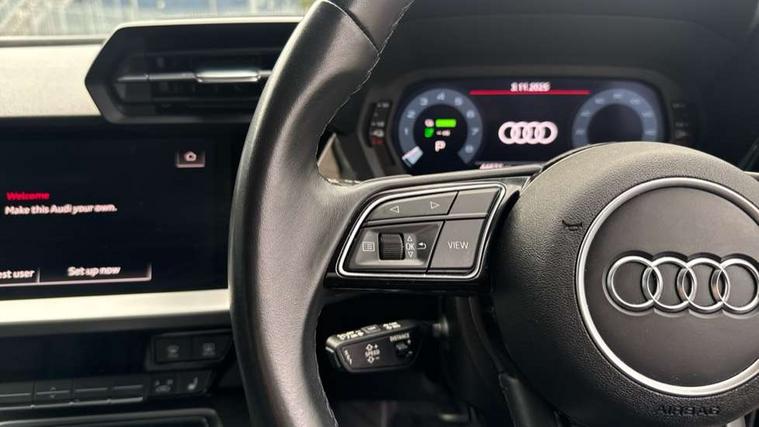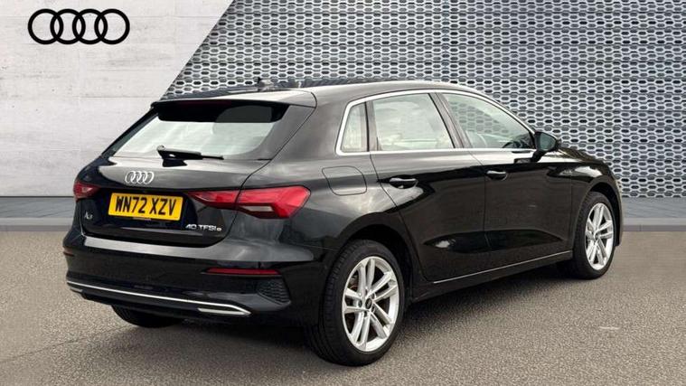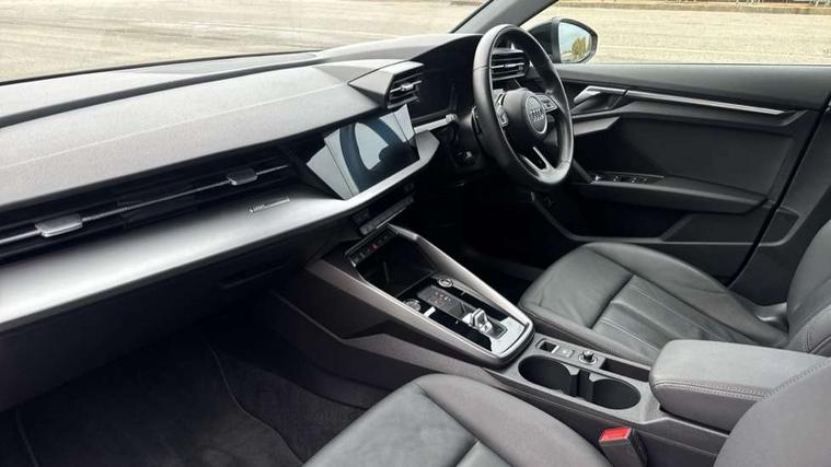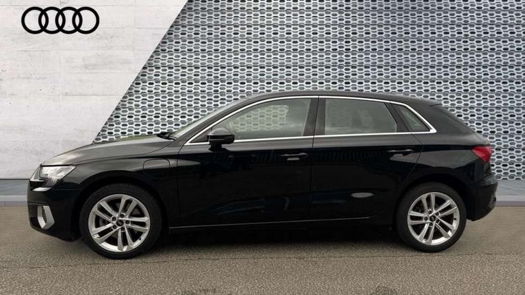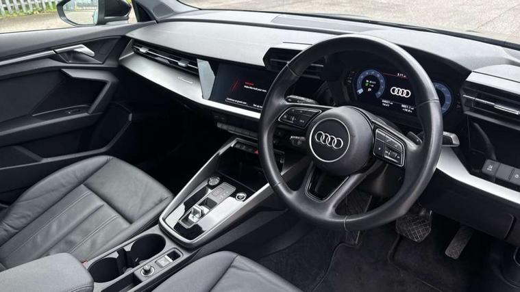 Audi drive select (Auto, Comfort, Dynamic, Efficiency and Individual), Audi smartphone interface, Audi Virtual Cockpit - 10.25" digital and colour instrument cluster, Automatic start/stop system with recuperation, Bluetooth interface, Collision avoidance assistant, e-Call (emergency call), Electromechanical power speed sensitive steering, Lane departure warning system, MMI Navigation Plus with high resolution 10.1" colour touch screen display, Service indicator, Trip computer, Voice control system with natural language interaction, 3 pin 10 amp domestic charging cable, 3.6 kw On-board charger, Standard suspension, Type 2 mode 3 32 amp charging cable, Type 2 socket for AC charging, 2xUSB-C connection with data and charging functions, 6 passive loudspeakers, DAB Digital radio, 3rd brake light, Acoustic glass windscreen, Aluminium window trim, Auto dimming frameless rear view mirror, Body colour exterior mirrors, Body colour roof spoiler, Electrically adjustable/heated/folding/auto dimming door mirrors with integrated LED indications + kerb view function for passenger side, Front electric windows, LED daytime running lights, LED headlights and halogen rear lights, Light and rain sensors, Rear electric windows, Rear side wing doors, Rear window, rear door windows and rear side windows in clear glass, Rear wiper, 12V socket and storage compartment in front centre console, 3 seat bench in 2nd row, 40/20/40 split folding rear seat bench with cupholder, Dual zone electronic climate control, Front and rear centre armrest, Front and rear headrests, Front door sill trims with aluminium inlay, Front/rear floor mats, Height and reach adjustable steering wheel, Interior lighting - Front and rear roof module including reading lights, glove compartment light and right hand side, Luggage compartment floor covering, Manual boot compartment lid, Manually adjustable front seats, Seat side bolsters, Single front passenger seat, Steel grey cloth headlining, Twin leather upholstery, Aluminium interior elements pack - A3 Sportback, Sport styling pack - A3 Sportback, 3x3 point rear seat belts, Audi pre sense front, Driver and front passenger airbag with passenger airbag deactivation, Electronic Stabilisation Control (ESC) including ABS, ASR and EDL, First aid kit with warning triangle and 2 safety vests, Front side airbags with head airbags and interaction airbag, Pre-sense front with pedestrian and cyclist detection, Seatbelt monitoring, Tyre pressure loss indicator, Anti theft alarm, Anti-theft wheel bolts, Immobiliser, Manual child locks, Remote control central locking, Inlays with silk effect paint in platinum grey, Tool kit, Tyre repair kit,