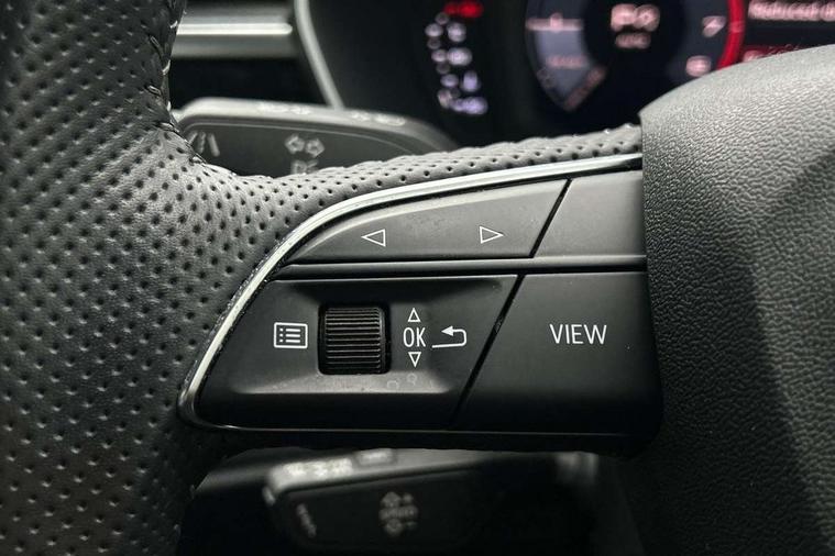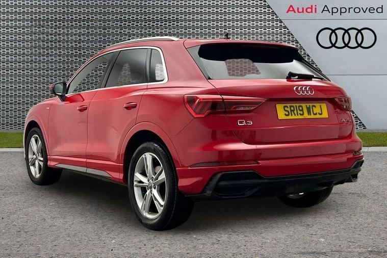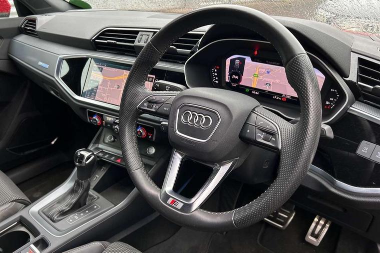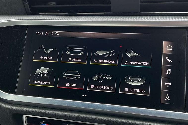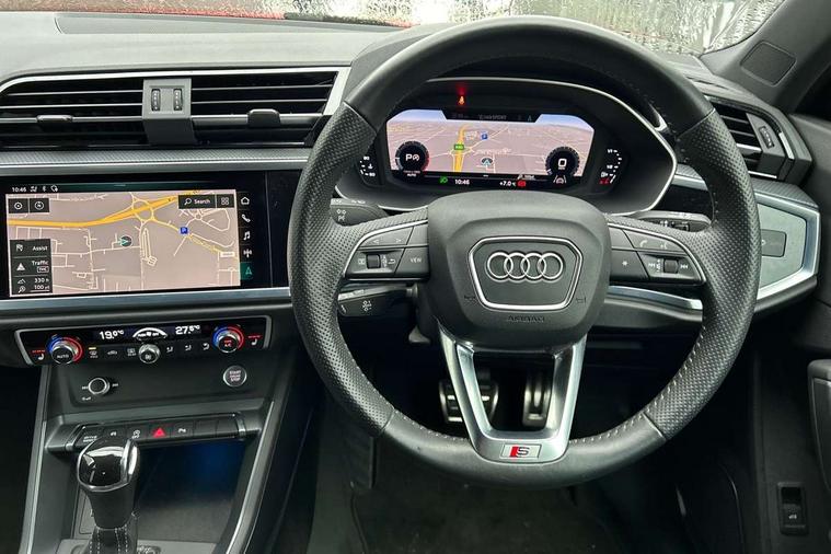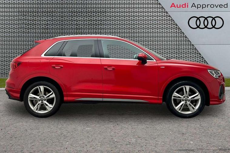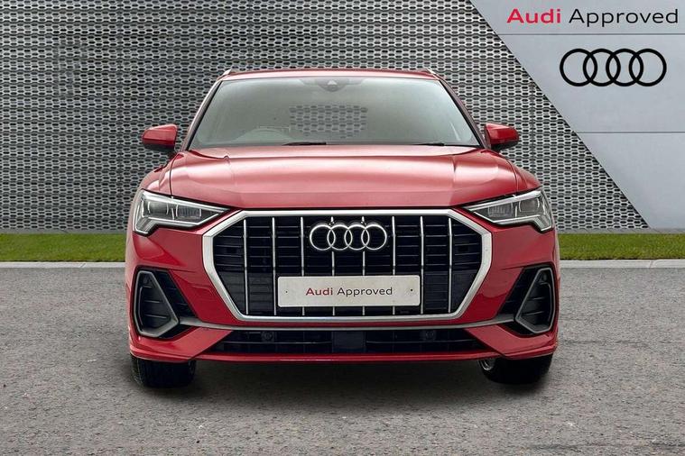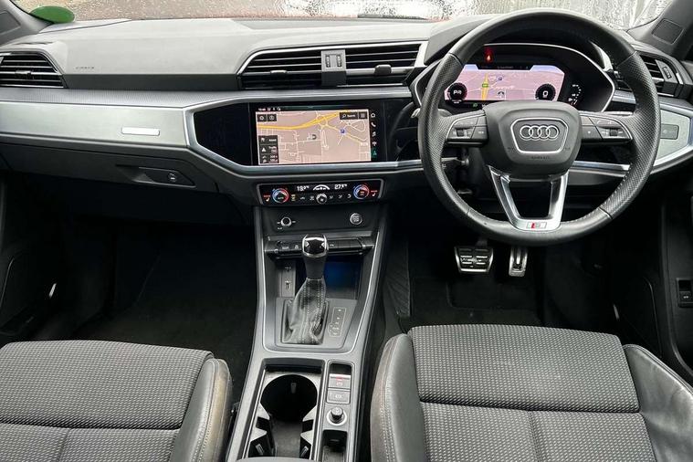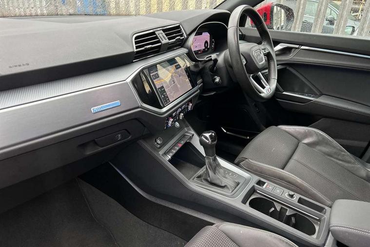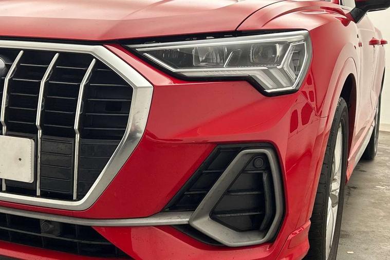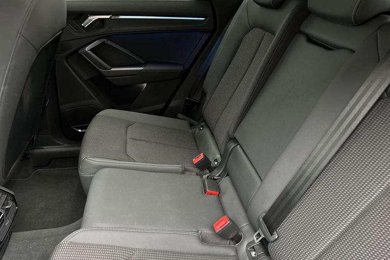 Audi connect safety and service (e-call), Audi drive select, Audi lane departure warning, Audi side assist, Audi smartphone interface, Bluetooth interface, Camera based traffic sign recognition, MMI navigation plus with MMI touch, Power opening/closing tailgate, Progressive steering, Rear parking sensors, Service interval indicator, Stop/start system, Voice control system, Sports suspension, 1 x USB type C and 1 USB type A charging points, 6 speakers, DAB digital radio module, Acoustic windscreen, Aluminium roof rails, Aluminium window trim, Auto dimming rear view mirror, Body coloured bumpers, Diffuser in matt Platinum grey, Electrically adjustable and heated door mirrors with integrated LED side indicators, Front and rear electric windows, Front fog lights, Front side air inlets in matt platinum grey, Front spoiler blade in matt platinum grey, Grille vertical bars in aluminium silver/Matt, High gloss black finish B and C pillars, LED headlights with LED daytime running lights and dynamic rear indicator, LED rear lights, Privacy glass, Rain and light sensors, Rear diffuser strip in matt titanium black, S Line badge on wings, S Line front and rear bumpers, Side skirt insert in matt Platinium grey, Titanium black radiator grille, 12V socket in rear centre console, 40:20:40 split folding rear bench seat, Adjustable rear seat bench/backrest with centre armrest and cupholder, Aluminium door sill trims, Black cloth headlining, Dual zone climate control, Front and rear black floor mats with contrast stitching in rock grey, Front and rear headrests, Front centre armrest with storage compartment and angle adjustment, Illuminated door sill trims with S logo, ISOFIX child seat mounting and Top Tether with front passenger airbag deactivation, Manual front seats with height adjustment, Perforated leather gearknob, Stainless steel luggage compartment sill finisher, Stainless steel pedals, Non smoking pack - Q3, 3x3 point rear seatbelts, 6 airbags - Driver, front passenger, curtain and side windows, Audi pre-sense front with pedestrain and cyclist recognition, Electrically operated child locks on rear doors, Electromechanical parking brake, Electronic stabilisation control including ABS, ASR and EDL, Hill hold assist, Pre sense basic, Seatbelt monitoring, Tyre pressure warning, Warning triangle and first aid kit, Anti theft alarm, Anti theft wheel bolts, Remote central locking, Dark matt brushed aluminium inlay, MMI touch colour display in gloss black with aluminium surround, Tool kit, Tyre repair kit,