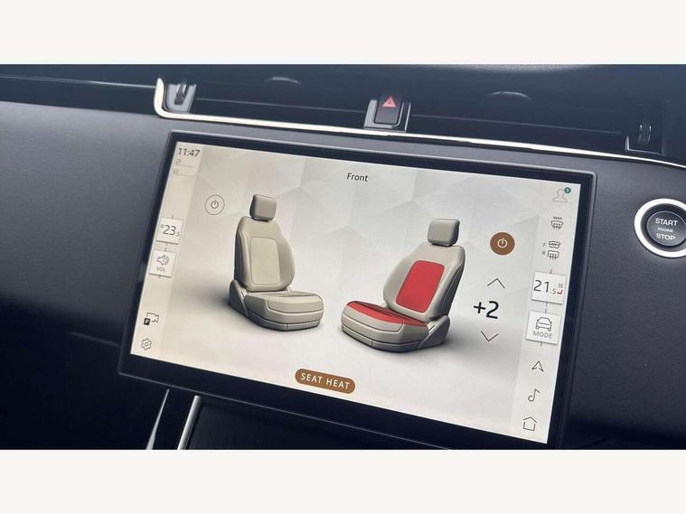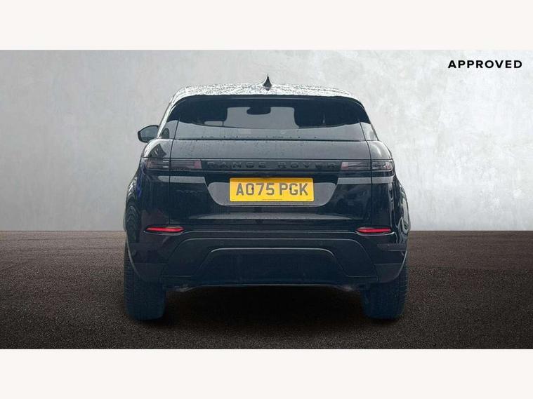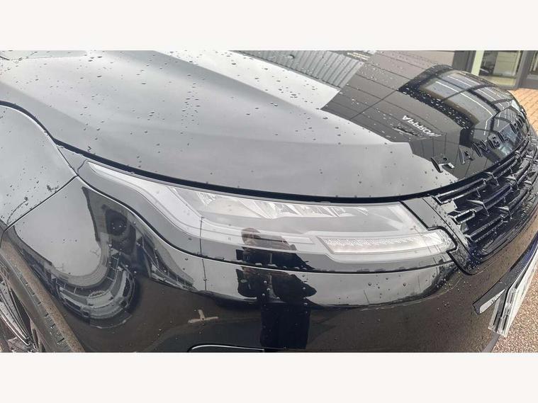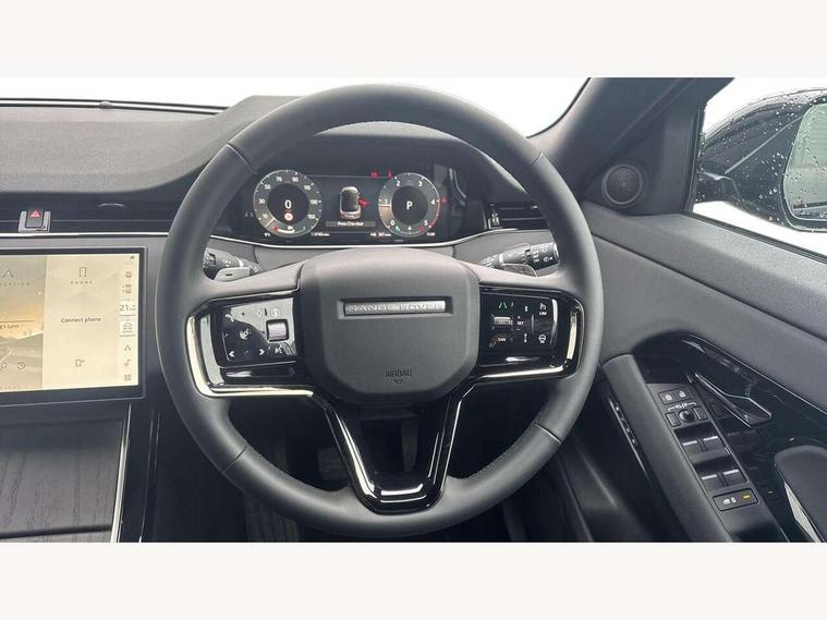 11.4" touch screen, Adaptive cruise control, Android Auto, Apple car play, Bluetooth connectivity, Brake pad wear indicator warning light, Digital driver display, Driver condition monitor, eCall emergency system, Eco mode, Electronic power assisted steering (EPAS), Front and rear parking sensors with auto brake, InControl remote, Land Rover InControl apps, Lane keep assist, Pivi pro connected includes diamond pivi variant, smart settings, connected navigation pro, nuance speech licence, Push button starter, Tailgate, Traffic sign recognition with adaptive speed limiter, Voice control system, Wireless device charging, All terrain progress control, Efficient Driveline, Terrain Response 2, Digital Audio Broadcast radio-DAB, Steering wheel mounted controls, Acoustic laminated windscreen, Auto headlights, Electric windows with one touch open/close and anti trap, Flush deployable exterior door handles, Front and rear recovery eyes, Heated rear window with timer, Heated washer jets, Heated windscreen, LED headlights with Daytime running light and LED tail lights, Manual headlight levelling, Power fold, auto-dimming, heated door mirrors with approach lights and auto dimming driver side, Rain sensing windscreen wipers, Rear animated directional indicators, Rear fog lights, Rear side wing doors, Rear wiper, Side repeater indicators in mirror, Tailgate spoiler, Third brake light, Winter wiper park position, 40:20:40 split folding rear seats with centre headrest and armrest, Ambient interior lighting, Carpet mats, Customer configurable single point entry, Front and rear cupholders, Heated front seats, Heated steering wheel, Isofix system on outer rear seats, Manually adjustable steering column, Overhead lighting console, Overhead stowage for sunglasses, Passive front head restraints, Rear air vents, Rear head restraints, Satin chrome gearshift paddles, Single passenger seat, Standard steering wheel with Moonlight Bezel, Standard tread plates with range rover branding, Sunvisors with illuminated vanity mirrors, Twin sliding front centre armrest, Power socket pack 2 - Evoque, 3 rear 3 point seatbelts, Anti-lock braking system (ABS), Brake hold function, Customer configurable autolock, DSC - Dynamic Stability Control, Electronic brake force distribution, Electronic parking brake, Electronic traction control, Emergency braking, Front and rear seatbelt reminder, Hill descent control, Hill launch assist, Low traction launch, Occupant protection assist, Passenger seat occupant detector, Power operated child locks, Roll stability control, Six airbags - Driver and passenger airbags/driver knee airbag/front side airbag and curtain airbags, Torque vectoring brake, Tyre pressure monitoring system, Alarm, Immobiliser, Intrusion sensor, Keyless entry, Locking wheel nuts, All season tyres,