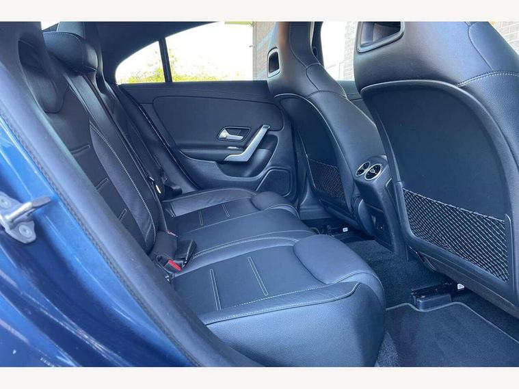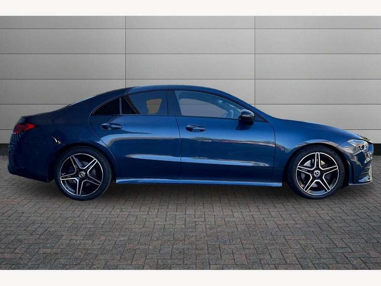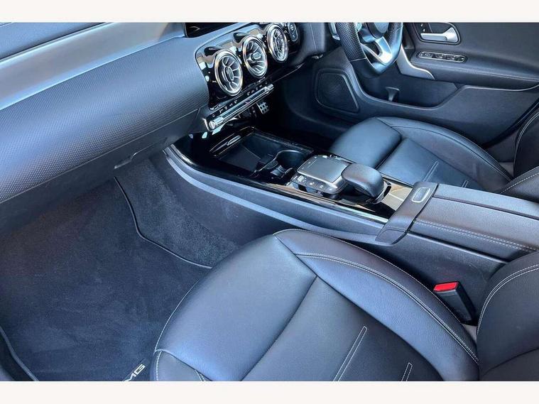 10.25 inch Instrument display with digital cockpit, 10.25 inch touchscreen central media display, Active lane keeping assist, Attention assist - Monitors steering behaviour and long journey fatigue, Bluetooth connection, Car wash mode, Cruise control with limiter, Direct steer system with speed sensitive power steering, DYNAMIC SELECT with a choice of driving modes (ECO, Comfort, Sport and Individual), ECO start/stop function, Fluid level warning indicator for fuel, oil, coolant and washer fluid, Hard-disk navigation, Hey Mercedes Voice activation, Lamp failure indicator, Mercedes me connect including emergency call system, accident recovery, breakdown and maintenance management, Mercedes me remote services, Outside temperature gauge, Owners manual and service booklet in English, Pre-installation of private car share, Preinstallation for Mercedes Benz link, Radio aerial integrated into front and rear windshields, Service indicator (ASSYST), Smartphone integration with Apple CarPlay and Android auto, Speed limit assist, Trip computer in multifunction display with current consumption indicator, Lowered comfort suspension, Rear axle multi-link, DAB digital radio tuner, MBUX multimedia system, Mercedes Benz sound system (100 W) with 6 speakers, USB (type C) ports (2) in stowage compartment and 1 in front of centre console, Adaptive brake lights, AMG body styling with AMG front apron and rear apron and visible exhaust tailpipe in chrome trim elements, AMG bodystyling side skirts, Body colour bumpers, Body colour door handles, Chrome beltline strips, Diamond radiator grille pins in chrome, Electric windows, Electrically adjustable and heated door mirrors with integrated LED indicators, Exhaust system with 2 Visible tailpipe trim elements and rear apron with trim in chrome, Headlamp assist automatic headlamp activation, Heated glass rear windscreen + timer control, High level LED third brake light, Interior mirror with black reading lamps and frameless, LED high performance headlamps with integrated LED daytime running lights, LED tail lamp, Privacy glass with dark tinting on rear side windows and rear window, Rain sensing windscreen wipers with two sensitivity settings, Rear boot, Rear fog lamp, Rear side wing doors, Variable front intermittent wipers, Window line trim strip in chrome, 3 seat bench in 2nd row, 3 spoke flattened bottom nappa leather multifunction steering wheel with perforated leather in grip area, 40:20:40 split folding rear seat backrests, Air conditioning - Two zone thermotronic luxury automatic climate control with display, Air vents with surround in silver chrome, Artico man-made leather upholstery, Automatic child seat recognition sensor, Black roof lining, Brushed stainless steel sports pedals with rubber studs, Floor mats with stitched AMG lettering, Front centre armrest with stowage, Front door sills with Mercedes Benz lettering, Galvanished gear shift paddles on steering wheel, Heated front seats, Illuminated glove compartment stowage, Interior lighting - 64 colour Ambient lighting, Luggage net on driver/front passenger seat backrest, Manually adjustable front seats, Manually height and reach adjustable steering column, Rear head restraints, Single front passenger seat, Sport seats with fixed head restraints, Stowage compartment in centre console with retractable cover, Sunvisors with illuminated vanity mirrors, Touchpad on center console, Twin front cupholders, Two outer rear seat isofix and top tether child seat fixing points, Light and sight pack - CLA, Mirror pack - CLA, Night package - CLA, Parking package - CLA, Seat comfort pack - CLA, Active bonnet pedestrain safety measure which detects an impact and raises bonnet by 65mm, Active brake assist includes forward collision warning system with autonomous braking, Adaptive brake assist with hold function and hill start assist, Anti lock braking system (ABS) with brake assist, Black seat belts, Bonnet with power domes, Brake pad wear warning indicator, Childproof locks manually operated for rear doors and electrically operated for rear power windows, Crash responsive emergency lighting, Driver and front passenger head and sidebags, Driver and front passenger windowbags, Drivers knee airbag, Dual stage driver and front passenger airbags, Electric parking brake, Electronic stability programme with acceleration skid control, ESP curve dynamic assist, Front and rear seatbelt reminder, Front passenger seat occupancy sensor, Three point rear seat belts, Tyre pressure monitoring system, Warning triangle and first aid kit, Guard 360 degree guard vehicle protection system with immobiliser and interior protection, Keyless Go starting function, Remote central locking and crash sensor with emergency opening function, Light aluminium with longitudinal grain interior trim, 18" AMG 5 twin spoke light alloy wheels painted in black with high sheen finish, Summer tyres, Tirefit tyre sealant kit,