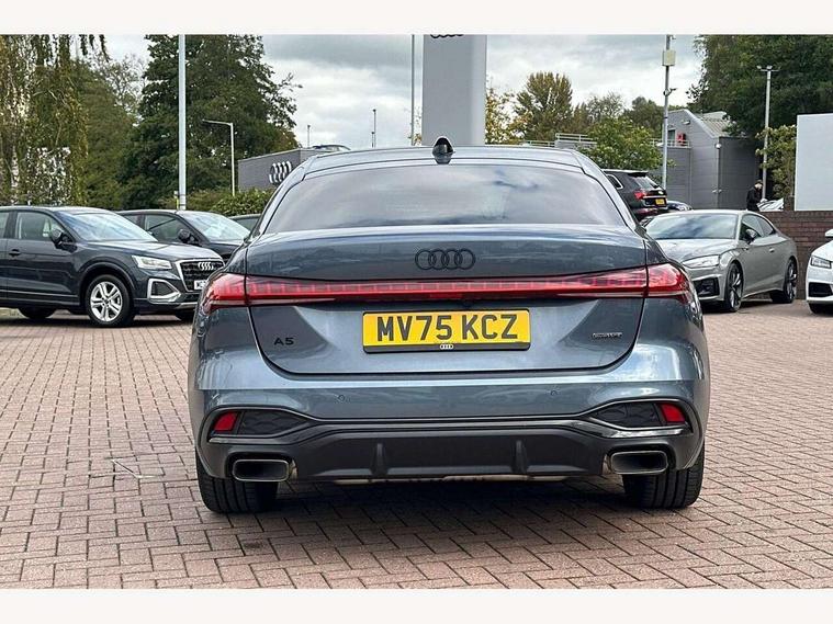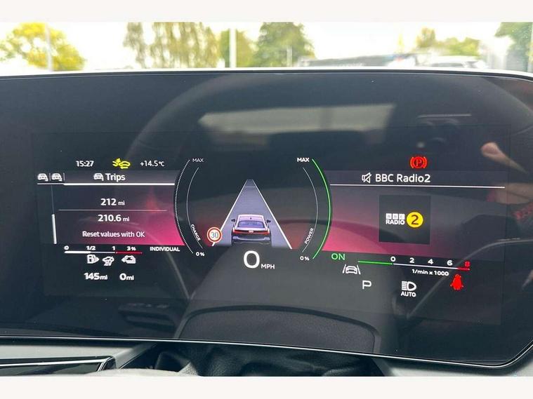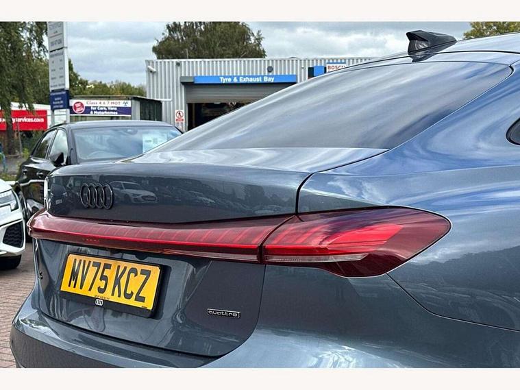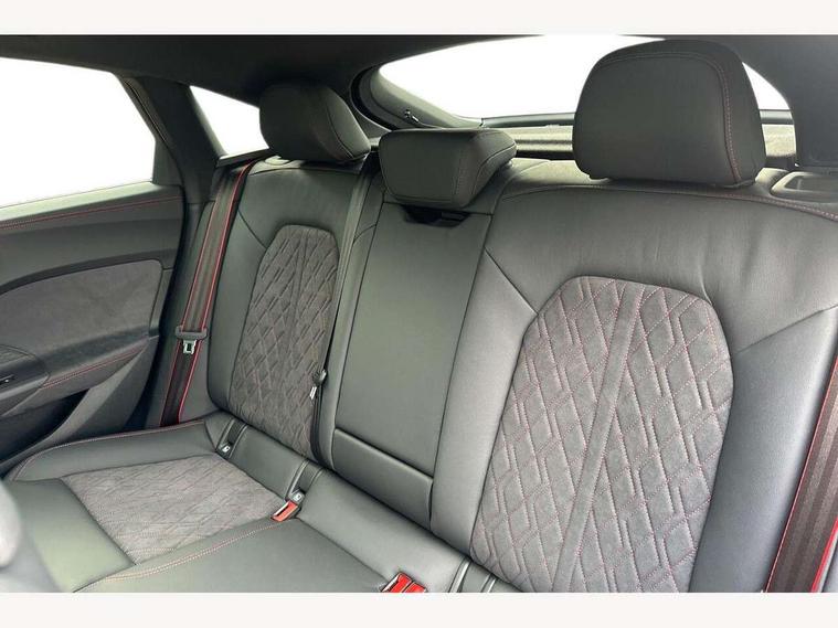 Adaptive cruise control, Advanced driver attention and fatigue montior, Audi application store, Audi assistant, Audi connect emergency call and service, Audi drive select, Audi virtual cockpit plus with 11.9" OLED colour display, Automatic start/stop system with coasting functionality, Camera based traffic sign recognition, Intersection assist, Lane change assistant with exit warning system, rear cross traffic alert and rear turn assist, Lane departure warning with emergency assist, MMI 10.9" front passenger touch display, MMI navigation plus with high resolution 14.5" OLED touchscreen colour display, Park assist plus, Parking system plus with 360 display, Progressive steering with servotronic, Smartphone interface, Swerve assist and turn assist, Top view camera, Traffic sign based speed limiter, Household plug type G, Hybrid propulsion system, Industrial connector CEE 32A, 230V, long and straight for the e-tron charging system, Mode 3 type 2 AC charging cable 22kW, Sports suspension lowered by 20mm, 2 USB-C ports in both the front and rear, Audi sound system impressive sound with 8 loudspeakers including centre speaker and subwoofer, 6-channel amplifier with a total output of 180 watts, DAB digital radio reception, Smartphone compartment with wireless charging, Aluminium window trims, Auto dimming rear view mirror, Black door handles, Dark chrome-plated tailpipe trims, Door mirrors - electrically adjustable, heated, folding and auto dimming on both sides, Front and rear electric windows, Front door sill trims with aluminium inlays, illuminated with 'S' logo, Headlight cleaning system, High beam assist, LED daytime running lights, LED rear lights pro incl. dynamic rear indicators and illuminated light strip with animated coming and leaving home function, LED third brake light, Matrix LED headlights with eight light signatures selectable via the MMI or the myAudi app, Privacy glass, Rear and side windows with heat insulating glass, Rear boot, Rear side wing doors, Removal of S line badge on the front wings, S line bumpers, radiator grille and diffuser in phantom black and diffuser insert in matt anthracite, White rhombus logo projection light in exterior mirrors, Windscreen with acoustic glazing, 3 rear headrests, 3 seat rear bench, 3 spoke leather steering wheel with multi-function buttons with touch control, flattened on top and bottom, with S badging and contrast stitching, 3-zone automatic climate control, 40:20:40 split folding rear seat bench with centre armrest and cup holders, Auxiliary air conditioning, Comfort front centre armrest, Electrically adjustable front seats, Front and rear floor mats, Front sport seats with integrated headrest and S embossed logo, Headlining in black cloth, Heated front seats, i-Size child seat mounting on the front passenger side and outer rear seats, i-Size and top tether on the outer rear seats, LED roof module front and rear including reading lights, Luggage compartment lid, electrically opening and closing, Manual steering column height and depth adjustment, Memory function for driver seat, Single front passenger seat, Stainless steel pedals and footrest, Steering wheel grips in perforated leather and shift paddles, Storage compartment lighting under the centre armrest, Ambient lighting package plus - A5, Black styling pack plus - A5, 3x3 point rear seat belts, Acoustic vehicle alerting system, Convenience key with safelock, Driver airbag, Electric child safety locks, First aid kit with warning triangle and vests, Front emergency brake assist, Front passenger airbag, Front passenger airbag deactivation, Hill hold assist, Occupant detection in rear seat area, Proactive passenger protection system for front, sides and rear, Red brake calipers, Seat belt monitoring with rear seat occupant reminder, Side airbags in front and rear with head airbag system and front interaction airbag, Tyre pressure loss indicator, Anti theft alarm, Anti-theft wheel bolts, Keyless Go, Accent surfaces and control buttons in gloss black, Black dashboard with contrast stitching, Softwrap in Dinamica with contrast stitching, Upper and lower interior elements in dinamica microfiber, 20" 5 arm fold design Audi sport alloy wheels in silk matt grey and gloss turned finish, Tyre repair kit,