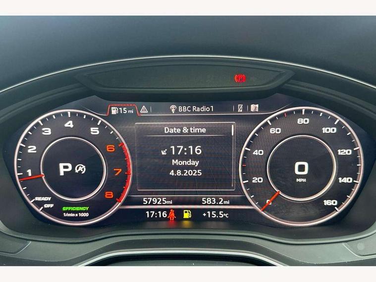 7" Colour driver information system, Audi connect, Audi drive select, Audi parking system plus with front and rear sensors, Audi smartphone interface, Automatic start-stop system with coasting functionality and efficiency programme, Bluetooth interface, Electric boot release, Electro-mechanical power steering, MMI Navigation, Seat belt microphone, Service interval indicator, Voice control system, 2 x USB charging port with aux input socket, CD player, DAB Digital radio, Two SDXC card slots, Air inlet in matt aluminium with horizontal inlay, Aluminium roof frame and window trim, Auto dimming rear view mirror, Black grained rear grille, Body colour bumpers, Body coloured door mirrors, Chrome plated exhaust pipe, Electric adjustable heated door mirrors, Electric front windows, Front fog lights, Fully automatic acoustic hood, High beam assistant, High gloss black B pillar trims and triangular rear door trim, Honeycomb side air inlet in titan black, Rain and light sensors, Rear diffuser in Twilight grey matt with honeycomb grille, S line badges on front wings, S Line body styling, S Line front and rear bumpers, S Line side skirts in black, S line sill plates, Twilight grey matt radiator grille in matt aluminium inlay, Windscreen with acoustic glazing, 50/50 split folding 2 seater rear bench seat, Adjustable steering column, Black headlining, Black perforated leather gearknob, Centre console with cupholders, Contrast stitching on seats, steering wheel and gear lever gaiter, Deluxe 3 zone electronic climate control, Front centre armrest, Front head restraints, Front/rear floor mats, Gearshift paddles, Illuminated door sill trim with S logo, ISOFIX child seat mounting and top tether, Jack and tool kit, Luggage compartment mat, Rear headrests, S embossed logo on front sport seats, Stainless steel pedals and foot rest, Non Smokers pack, 4 airbags in front, Electromechanical parking brake, Electronic Stabilisation Control (ESC) including ABS, ASR and EDL, Front passenger airbag deactivation, Height adjustable front seatbelts, Hill hold function, Multi-Collision braking, Pop-up bonnet for pedestrian protection, Pre sense city, Seatbelt monitoring, Tyre pressure warning, Variable restraint system, Warning triangle and first aid kit, Anti theft alarm system, Anti theft wheel bolts, Immobiliser, Keyless Go, Remote central locking, Tyre repair kit,