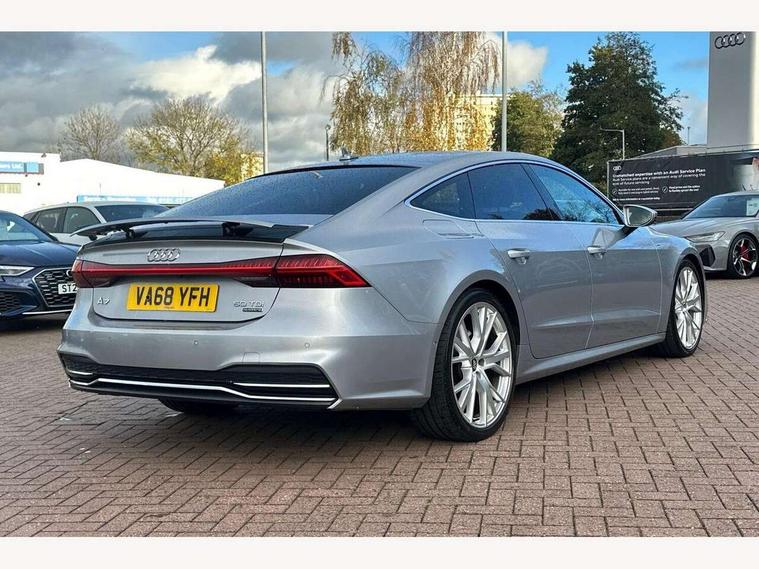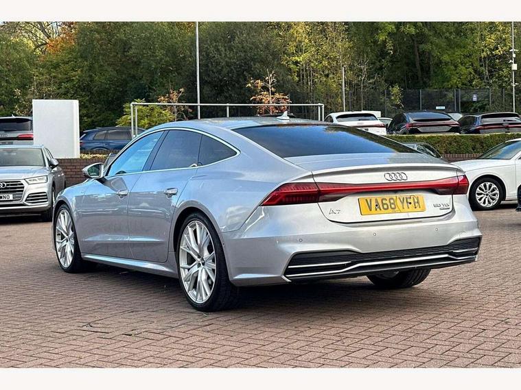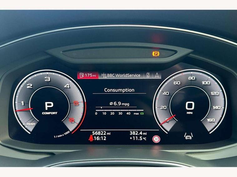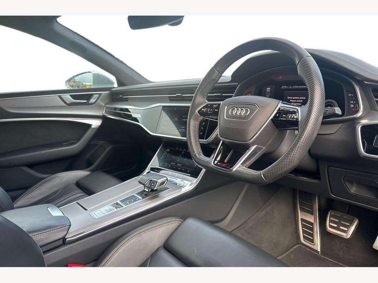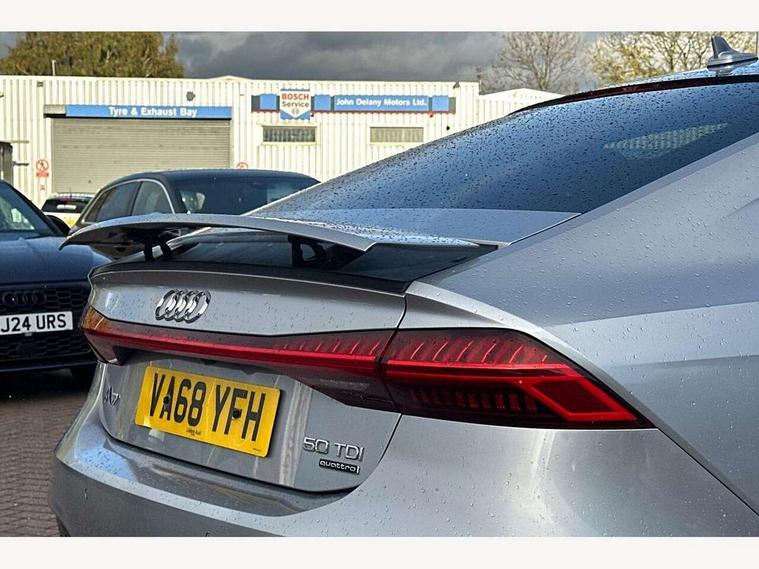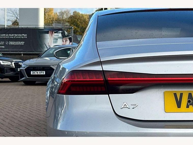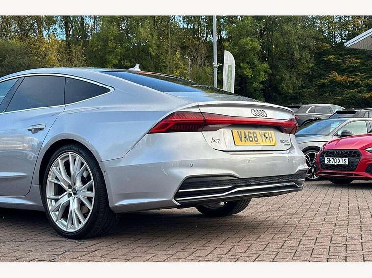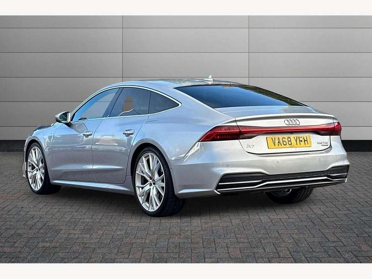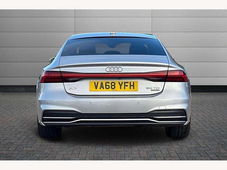Audi connect safety and service (e-call), Audi drive select, Audi phone box with wireless charging, Audi smartphone interface, Audi virtual cockpit - 12.3" high resolution LCD digital instrument cluster display, Automatic start/stop system with coasting functionality, Colour driver's information system display, Electric boot release, MMI nav plus with MMI touch + 10.1" and 8.6" HD haptic touch screen/3D city models/country information/online map/route info and personal route assist, Natural voice recognition, Operating buttons in black, Power operated tailgate, Rear view camera, Service indicator, 24 litre AdBlue tank, Diesel particulate filter, Audi music interface - 2 USB ports with charger and data functions, Auxiliary input socket, DAB digital radio module, Frameless auto dimming interior rear view mirror, Front and rear electric windows, Headlight washers, Heat insulating darkened glass in side and rear windows, High gloss black radiator grille with chrome single frame surround, LED rear lights, Rain and light sensors, Retractable rear boot spoiler, S line air inlet design with inlay in high gloss black, S line badge on front grille, S Line badge on wings, S Line Black rear diffuser with chrome inlays and rear grille, S Line front and rear bumpers, S Line side skirts, Signature LED daytime running lights, Towbar preparation, Windscreen with acoustic glazing, 4-way electric lumbar support, 40/20/40 split folding 3 seater rear seat bench with rear centre armrest, Auxiliary heater, Black cloth headlining, Electrically adjustable front seats - driver seat with memory, Front and rear headrests, Front centre armrest, Height/reach adjust steering wheel, Illuminated sun visors with vanity mirrors, ISOFIX child seat mounting and Top Tether with front passenger airbag deactivation, Leather gear lever, Leatherette upper instrument panel and door shoulders, Luggage compartment, Rear centre armrest, S line front and rear floor mats with contrast stitching, Stainless steel pedals and foot rest, Tool kit and car jack, Non smoking pack - A7, 3 point seatbelts on all seats, Driver and passenger airbags, Electromechanical parking brake, Electronic stabilisation control including ABS, ASR and EDL, Extended pedestrian protection measures, Hill hold assist, Seatbelt warning, Tyre pressure warning, Warning triangle and first aid kit, Anti theft alarm with tow away protection, Anti-theft wheel bolts and wheel loosening detection, Immobiliser, Keyless Go, Preparation for tracking system, Remote central locking,