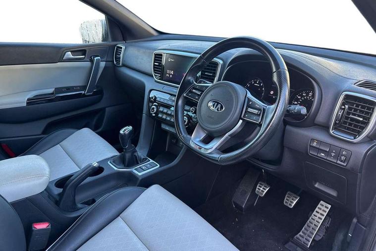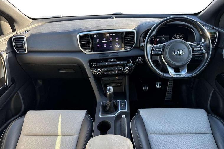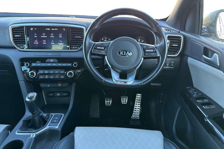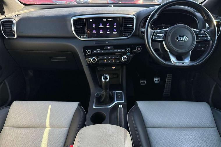 4.2" supervision colour cluster display, 8" touchscreen satellite navigation with European mapping and traffic messaging channel, Android auto with voice control, Apple car play with voice control, Cruise control + speed limiter, Driver attention warning, Emergency stop signalling system, Front parking sensor, Kia connected services featuring TomTom live, Lane keep assist, Rear parking sensor, Reversing camera, Speed limit information, Speed sensitive power steering, Telematics system with UVO connect services, Trip computer, Windscreen washer level indicator, Intelligent Stop and Go, 6 speaker audio system, Bluetooth audio streaming, DAB Radio with MP3, Rear USB port, Steering wheel mounted audio controls, USB/iPod/auxiliary input connections, All round electric windows with drivers auto up/down function, Auto dimming rear view mirror, Automatic lighting control, Automatic window defogger, Black wheel arch body mouldings and side sills with dark chrome insert, Body colour door handles with chrome inserts, Body colour door mirrors, Chrome window surround, Dark chrome front bumper insert, Dark chrome front grille surround, Electrically adjustable/heated/folding door mirrors with LED indicators, Front wiper de-icer, High beam assist, High gloss black blade mesh radiator grille, LED Bi-Function headlights, LED daytime running lights, LED ice cube front fog lights, LED rear lights, Privacy glass - Rear windows and tailgate, Rain sensing front wipers, Rear spoiler, Rear wiper, Roof rails, Shark fin antenna, Silver painted front and rear skid plates, Tinted glass, Trailer stability assist, Welcome and follow-me home light functionality, Wide view drivers door mirror, 12V power in front and rear centre console, 3 x passenger assist grips, 60/40 split folding rear seat, Air filter, All-round height adjustable headrests, Aluminium door scuff plates, Aluminium pedals, Black headlining, Centre cabin light, Centre console storage box, Chrome boot sill guard, D-Shaped sports leather steering wheel and perforated inserts with GT-Line logo, Driver and front passenger side sunvisors with illuminated vanity mirrors, Driver's seat manual height adjust, Drivers seat power lumbar support, Dual zone automatic air conditioning, Front and rear door storage, Front cabin LED map light with sunglasses case, Front door courtesy reflectors, Front seat and rear pockets, Front/rear centre armrests, Gear shift indicator, Glovebox illumination, Heated front and outer rear seats, Interior door lock/unlock function, ISOFIX Child seat top tethers and anchor fixings, Leather trimmed door armrests, Leather trimmed gearshift, Luggage area light, Luggage area load cover, Luggage net with hooks, Rear centre armrest with cupholder, Rear coat hooks, Satin chrome interior door handles, Tilt/telescopic adjustable steering wheel, Two tone leather upholstery, Ventilation ducts to rear compartment, Active front headrests, All round 3-point seatbelts, Anti-lock braking system with electronic brakeforce distribution, Dual front side airbags, Electronic stability control with downhill brake control, Front passenger airbag cut-off switch, Front seatbelt pretensioners + load limiters, Height adjustable front seatbelts, Hill start assist control (HAC), Impact sensing auto door unlocking, Rear door child safety locks, Traction control, Twin curtain airbags with roll over sensor, Twin front airbags, Tyre pressure monitoring system, Advanced anti-theft system including immobiliser and alarm, Door deadlocks, Engine Start/Stop Button with Smart Entry System, Locking wheel nuts, Speed sensitive auto door locking, Visible vehicle identification number, High gloss black centre fascia, 19" alloy Wheels B-type, Tyre mobility kit,