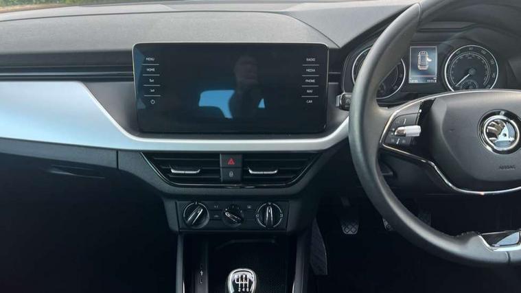 Amundsen satellite navigation with 9.2" glass colour touchscreen display, web radio, voice control and traffic sign recognition, Bluetooth system, E-call, Front assist system, Gesture control, PAS, Service indicator, Speed limiter, Wireless Smartlink for Apple CarPlay (wired for Android Auto), 8 Speakers, Auxiliary input socket, DAB Digital radio, Body colour bumpers, Body colour door mirrors and handles, Chrome grille surround, Dimming rear view mirror with black surround, Electrically adjustable and heated door mirrors, Front and rear electric windows, Headlight range control, Heated rear window, LED rear lights - low functionality, LED third brake light, Light sensors, Privacy glass, Rain sensor, Rear fog lights, Rear side wing doors, Rear wiper, 12V Accessory socket in centre console, 3 seat bench in 2nd row, Chrome inner door handles, Cloth upholstery, Front head restraints, Glove compartment with illumination, Height adjustable driver and front passenger seats - manual, Ice scraper, Isofix child seat fittings on outer rear seats, ISOFIX on front passenger seat, Manual lumbar support for front seats, Rake/reach adjustable steering wheel, Reading lights, Single front passenger seat, Sun visors with illumination on front passenger, Textile floor mats, Third rear headrest, Top tether for front passenger seat, Umbrella in driver's door, 3x3 point rear seatbelts, Airbags - driver and front passenger, ESP, Front passenger airbag deactivation switch, Front side airbags with curtain airbags, Hill hold control, Manual parking brake, Manual rear child locks, One tone horn, Rear disc brakes, Seatbelt reminder for driver an co-driver, Traction control, Tyre pressure monitor, Anti-theft alarm system with interior monitoring, backup horn, towing protection and remote central locking with SAFE system, Anti-theft wheel bolts, Electronic engine immobilizer, Silver haptic decorative insert on the dashboard with hot stamping in glossy black,