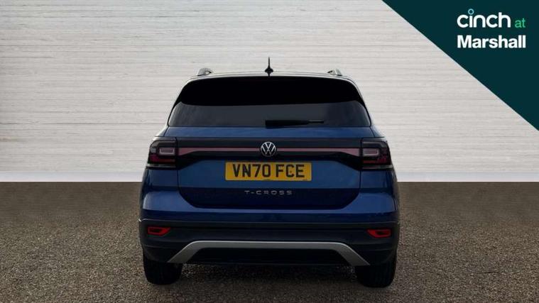 'Lights On' Reminder warning buzzer, Adaptive cruise control including front assist, forward collision warning, autonomous emergency braking, speed limiter, Discover media navigation system with 8" display including streaming and internet, Driver alert system, eCall emergency call system, Lane assist, Multifunction computer with visual gear change recommendation for fuel consumption, Power assisted speed sensitive steering, Speedo, rev counter, electronic odometer, trip, service interval display, exterior temperature and fuel gauge, Stop/start system, Warning sound and light for doors and tailgate open, Warning sound and light for front seatbelts unfastened, We Connect Go Dongle, Wireless Car net app connect with Apple CarPlay, combined functionality of Apple CarPlay/Android Auto and MirrorLink, Battery regeneration during braking, Misfuel prevention device, 2x USB connection with USB charging sockets and in rear centre console, Diversity antenna for FM reception, Premium USB cable for Apple or Android smartphone compatibility, Automatic dimming interior rear view mirror, Automatic hazard lights activation under emergency braking, Body colour door handles, Body coloured bumpers, Dusk sensor + automatic driving lights, Front and rear electric windows, Front fog lights with static cornering function, Galvanised body, Heated rear window, High level 3rd brake light, LED dipped and main beam headlights with automatic range adjustment including separate unique signature LED daytime running lights, Lower door sills and door pillars in black, Manual coming/automatic leaving home lighting function, Radiator grille with high gloss surface and chrome strip, Rain sensor, Rear lights incorporating LED technology, Rear window aerial, Rear windscreen washer and wiper with interval delay, Reflectors in all doors, Silver roof rails, Tailgate with integrated roof spoiler, Windscreen wipers/ intermittent wipe + 4 position delay, 12V Accessory socket in centre console, 2 Front and rear reading lights incorporating LED technology, 2 Zone electronic climate control with automatic air recirculation, 3 rear head restraints and 3 rear three point seat belts with ECE label, 60/40 split folding rear seat backrest, Drawer under drivers seat, Driver and front passenger sunvisor with vanity mirror, Driver's sunvisor with ticket holder, Dust and pollen filter, Front + rear carpet mats, Front centre armrest with storage compartment, Front seat back storage pockets, Glovebox, Heating and fresh air system with 4 stage blower, Height/reach adjust steering wheel, Instrument lighting white adjustable panel illumination, Interior light with delay, Isofix child seat preparation for 2 rear child seats, Luggage compartment cover, Luggage compartment lighting, Moveable and foldable Rear bench seat, Storage compartment in drivers and front passengers door, Variable boot floor, Composition Media infotainment system pack - T cross, Anti-lock Braking System (ABS) with Hydraulic Brake Assist (HBA), Automatic post collision braking system, Driver and front passenger safety-optimised head restraints, Drivers and Front Passengers airbags with front passengers airbag deactivation switch, ESC with EDL, ASR, EDTC and trailer stabilisation function, Extended and proactive pedestrian protection, Front and rear curtain airbags, Front seat side impact airbags, Height adjustable 3 point automatic front seatbelts with pretensioners, Hill start assist, Pre crash preventive occupant protection, Rigid safety cell with front and rear crumple zones, Tyre pressure loss indicator, Volkswagen roadside assistance, Alarm with interior protection and deactivation via infotainment system, Child security locks in rear doors, Remote tailgate unlocking using key fob,