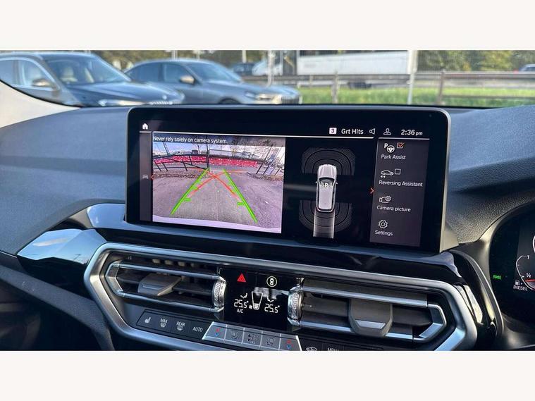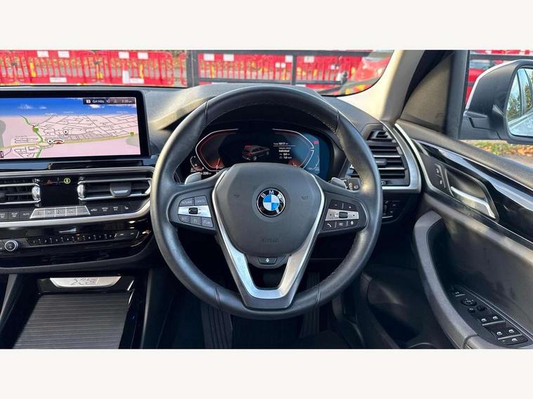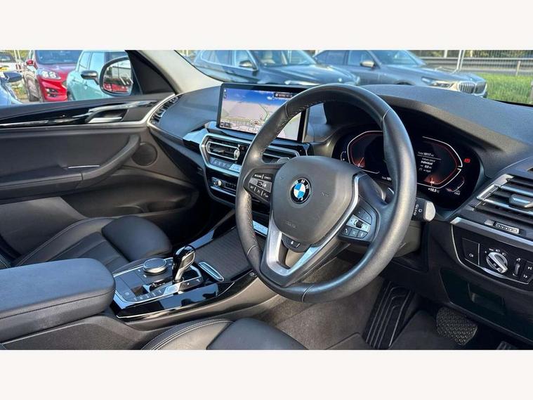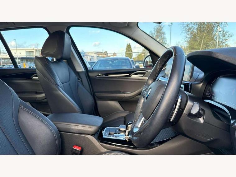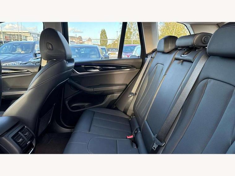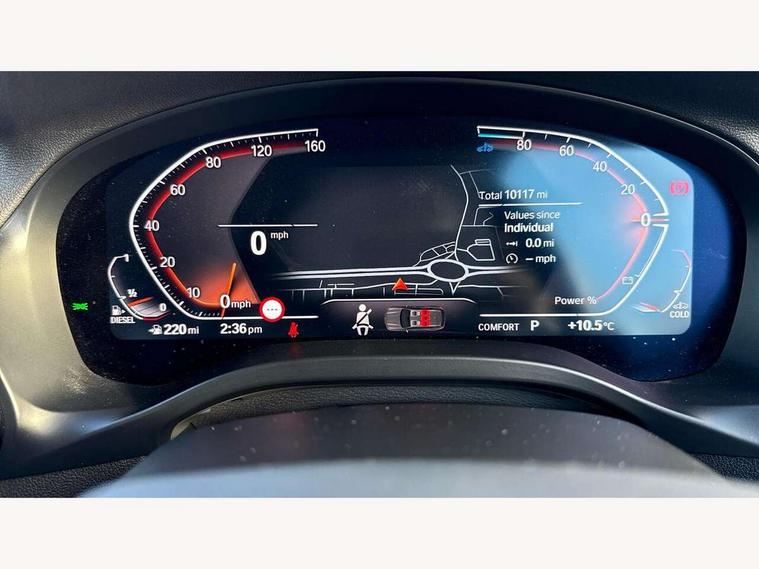 Active Guard, Attentiveness assist, BMW Live Cockpit Professional nav system including 12.3" instrument display + 12.3 high resolution control display, BMW Online services, BMW Teleservices, Brake pad wear indicator in front and rear, Check Control warning system for monitoring of lights and door/luggage compartment open warning, Condition based service - BMW service history, electronic service booklet, integrated owner's handbook, Connected drive services, Cruise control with brake function + speed limiter, Electric boot lid, Electric Power Steering (EPS) with Servotronic, Front/rear Parking distance control, iDrive Controller with 8 favourite buttons, Instrument cluster with speedometer with mph readout, tachometer, fuel gauge and oil temperature gauge, Lights on warning by audio warning signal when ignition is switched off, Oil sensor for level and grade, warning by check control system, On board computer - average speed+fuel consumption, service interval, clock/date, odometer/trip meter, outside temperature display and ice warning, Optimum shift indicator, Personal Profile - automatic lock when driving away selectable, Run flat indicator, Stop/start system, Automatic transmission with gearshift paddles, Diesel particulate filter, Incorrect fuelling protection, Larger capacity fuel tank, Multi-link rear suspension, BMW professional radio/CD/MP3, DAB tuner, Acoustic glazing, Aluminium exterior trim, Automatic windscreen wipers and automatic headlight, Black finish on B pillars, Body colour door handles, Body colour electric adjust heated aspherical door mirrors, Body colour roof mouldings, Body coloured bumpers, Direction indicator, side repeaters, integrated in exterior mirrors, Dynamic brake lights, Exhaust tailpipes - dual, round, split left and right with chrome finisher, Fingertip control / anti-trap function on electric window, Folding wing mirrors with auto dimming, Follow me home headlights, Front and rear bumper system with replaceable deformation elements, Front and rear electric windows, Glacier silver metallic matt in side sills, Gloss chrome tailpipes finishers, Green tinted heat insulating glass, Heated windscreen washer jets, High beam assistant, High level 3rd brake light incorporating LED Technology, Interior rear view electrochromatic mirror with automatic anti dazzle function, LED tail lights, Lightweight engineering, M Sport entry door sill strips, Matt aluminium roof rails, Model designation, Rain sensor, Rear side wing doors, Rear wing door, Rear wiper, Shark fin antenna, Visible VIN plate, Welcome lighting, Windscreen wipers with adjustable interval, xLine exterior styling with underbody protection, 12V power point in luggage area, 12V power socket in front centre console, 3 rear headrests, 3 seat bench in 2nd row, 3 spoke sports leather multi-function steering wheel, 3 zone automatic air conditioning, 4 lashing points to secure luggage, 40:20:40 split folding rear seat with loading system, Ambient lighting, Automatic interior light when door is opened/ignition switched off or via remote key, Deletion lumbar support/width adjustment passenger side, Floor mats in velour, Foldable storage floor with compartment, Four grab handles integrated in roof lining, Front and rear bottle holders integrated into door trim storage compartments, Front and rear side armrests integrated into door trim, Front centre armrest with storage compartment, Front door sill finishers with BMW X-line designation, Front footwell lights, Front head restraints, Front passenger seat, Front sports seats, Front/rear courtesy lights with soft on/off dimming, Front/rear reading lights, Heated front seats, Isofix rear child seat preparation, Leather gear knob, Luggage area underfloor compartment, Luggage compartment lighting, Parcel shelf removeable and storable under boot floor, Reach and rake adjustable steering column, Rear centre armrest with 2 cupholders, Removable / retractable luggage cover, Sensatec perforated upholstery, Slope adjustable rear seats, Storage compartment in rear centre console and front/rear door trims, Sun visors with vanity mirrors and ticket pocket, Toolkit located in luggage compartment, Two front cupholders with removable oddments tray/lid, Connected pro pack - X3, Driving assistant pack - X3, ADB - Automatic Differential Brake, Anti-lock braking system (ABS) with brake assist, Automatic Stability Control (ASC), Battery safety cut-off, BMW emergency call, Brake drying, Brake energy regeneration, Braking pre-tensioning, Child locks on rear doors, Cornering brake control (CBC), Crash Sensor - activation of central locking release, hazard warning light and interior lighting, Deactivation of fuel pump in the event of a crash, Driver and front passenger front and side airbags with passenger deactivation and ITS front and rear head airbags, Driver and front passenger knee airbag, DSC+, Dynamic brake control, Dynamic Traction Control - DTC, Electromechanical parking brake, Hill descent control, Hill start assist, Seatbelt security check for front seats, Side impact protection, Three point seatbelts to all seats with front and outer rear pyrotechnic belt tensioners and seat belt force limiters, Two tone horn, Tyre pressure sensor, Ventilated front and rear disc brakes, Warning triangle and first aid kit, Central locking switch for all doors, fuel filler cap and luggage compartment, Electronic engine immobiliser, Locking wheel nuts, Remote control including two integrated key - one button for open/close all lockable content, windows and separate button for open luggage compartment, Remote control Thatcham category 1 alarm, Start/stop button with Comfort Go keyless engine start and auto Start/stop deactivation button, Low rolling resistance tyres, Tyre repair kit,