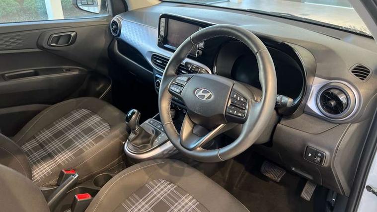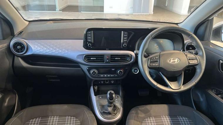 Apple car play/Android Auto, Bluelink mobile remote connectivity, Bluetooth connectivity with voice recognition, Cruise control, Driver attention alert system, eCall emergency call system, Forward Collision-Avoidance Assist (FCA) - Pedestrian/Cyclist, Front USB-C charging and USB-A data, Full-width 4.2" LCD instrument cluster, Intelligent speed limit assist, Lane departure warning system with lane keep assist - LKAS, Lane follow assist, PAS, Rear parking sensors, Rear view camera with guidelines, Roadside assistance, Start/Stop function, Tailgate, Trip computer, Wireless charging pad, 2 front/2 rear speakers, Rear USB-C device charger, Steering wheel audio, phone and cruise controls, 1 speed non intermittent rear windscreen wiper, Black finish on B pillars, Body colour door handles, Body coloured bumpers, Body coloured door mirrors, Electric folding door mirrors, Electric front windows, Electric rear windows, Electrically adjustable and heated door mirrors, Flat metal emblem, Front fog lights, Front grille in glossy black, Front intermittent wipers, Halogen bi-function headlights, Headlights inner with Black Blade design, Heated rear window, High beam assist, Indicator light on door mirrors, LED DRLs diamond mesh design, Privacy glass - Rear windows and tailgate, Rear roof spoiler with integrated LED brake light, Rear side wing doors, 12v power outlet - front, 3 seat bench in 2nd row, 60/40 split folding flat to floor rear seats, Air conditioning, Auto light control, Bottle holders in front/rear doors + front centre console, Cabin and luggage compartment interior lighting, Cloth upholstery, Driver + passenger vanity mirrors, Driver's seat height adjustment, Driver/passenger sunvisors with ticket holders, Floor mats, Front door pockets, Front Head Restraints - Vertical and Horizontal Adjustment, Front LED blue mood lighting, Glove compartment, Heated front seats, Heated steering wheel, Height adjustable steering column, Isofix child seat preparation, Leather multifunction steering wheel, Rear door pockets, Single front passenger seat, Vertical adjustment rear head restraints, 3x3 point rear seatbelts, Airbags - front, front side and curtain airbags, Anti-lock brake system (ABS), Autonomous emergency braking (AEB) with forward collision warning system, Brake assist function, Childproof rear door locks, Electronic stability control, Front and rear seatbelt reminder, Front seatbelt pretensioners, Hill start assist control (HAC), Passenger airbag deactivate switch, Traction control, Tyre pressure monitoring system, Immobiliser, Perimeter alarm, Rear occupant alert, Remote central locking, Second remote key, Smart key with motion sensor, Speed sensitive auto door locking, 16" alloy wheels, Tyre repair kit,