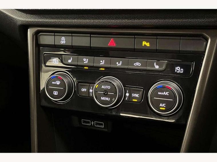 2 USB connection charging sockets, Adaptive cruise control, App-Connect, Automatic start/stop system, Bluetooth telephone and audio connection for compatible devices, Car information display, Front assist, radar sensor controlled distance monitor, city emergency braking + predictive pedestrian protection, Lane assist, Multifunction computer with visual gear change recommendation for fuel consumption, Power assisted speed sensitive steering, Service interval indicator, Think blue trainer driver tips and journey analysis, Warning sound and light for doors and tailgate open, Warning sound and light for front seatbelts unfastened, Battery regeneration during braking, Bluetooth - Simultaneous pairing of 2 compatible mobile devices, DAB Digital radio, Multi device interface (MDI) with USB connection, Music playback - MP3, WMA and AAC files, Premium USB cable in choice of either Apple or Android smartphone compatibility, SD card slot, SMS functionality - read, compose and send SMS messages using touch-screen display, Title and cover art display, Auto dimming interior rear view mirror, Automatic hazard lights activation under emergency braking, Black grained lower door protectors, Black grained wheel arches, Body colour bumpers with silver metallic underbody fascia, Body colour door handles, Chrome trim on upper and lower radiator grille, Door mirror integrated indicators, Dusk sensor, Electrically foldable, adjustable and heated door mirrors with puddle lights and reverse activated kerb-view adjustment on passenger's door mirror, Front and rear electric windows, Front windscreen wiper with intermittent wipe and 4 position delay, Fully galvanised body, Heated rear window, High level 3rd brake light, LED rear number plate lights, Manual coming/automatic leaving home lighting function, Rain sensor, Rear windscreen washer and wiper with interval delay, 12V socket in centre console storage area, 2 front reading lights, 3 rear head restraints, 4 load lashing points in luggage compartment, Climate control - 2 zone electronic air conditioning with automatic air recirculation and allergy filter, Drawer under drivers seat, Front centre armrest with storage compartment, longitudinal and height adjustable and two rear air vents, Front cupholders x 2, Front seat back storage pockets, Glovebox, Height adjustable front seats, Height/reach adjust steering wheel, Illuminated vanity mirrors, Instrument lighting, white adjustable panel illumination, Interior light delay, Isofix easy fit child seat preparation for 2 outer rear seats, Load through provision with single cup holder when folded down, Luggage compartment cover, removable, Luggage compartment lighting, Split folding rear seat backrests with centre armrest, Storage compartment in left and right luggage area, Storage compartment in rear doors, Storage compartments in driver and front passenger doors, 3 rear three point seatbelts, ABS, Driver and front passenger safety-optimised head restraints, Electronic parking brake with auto hold, ESC with EDL, ASR, EDTC and trailer stabilisation function, Front and rear curtain airbags, driver and front passenger airbags with passenger deactivation switch and front side impact airbags, Rigid safety cell with front and rear crumple zones, Three point height adjust front seatbelts + pretensioners, Tyre pressure loss indicator, Ventilated front and rear disc brakes, Volkswagen roadside assistance, Alarm with remote central locking and interior protection, Electronic engine immobiliser, Remote central locking with 2 remote folding keys, Dark oak brown decorative inserts in dash and door panel,