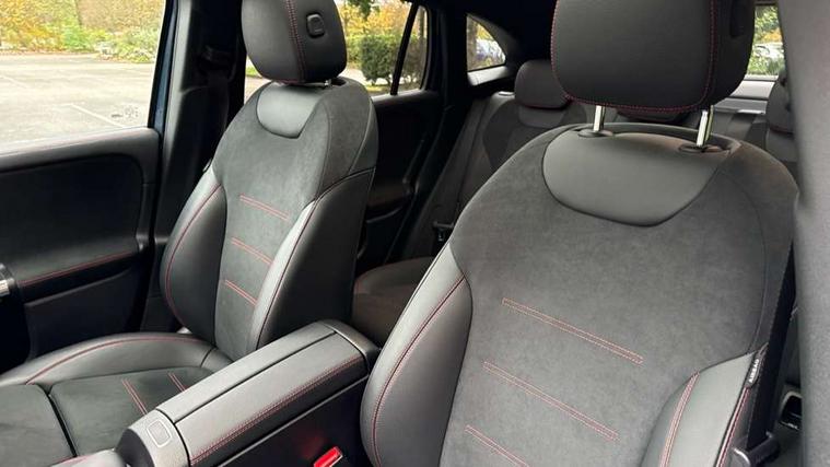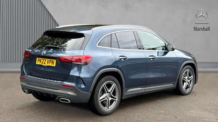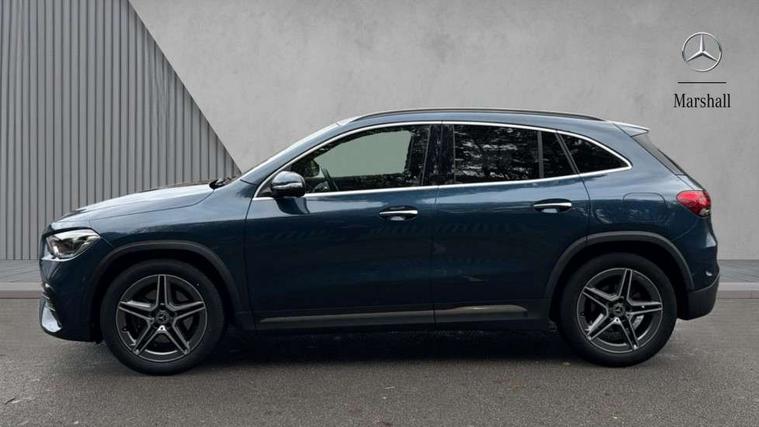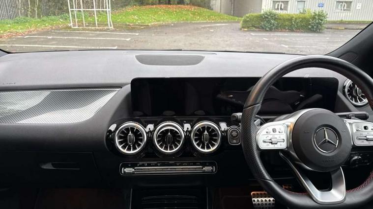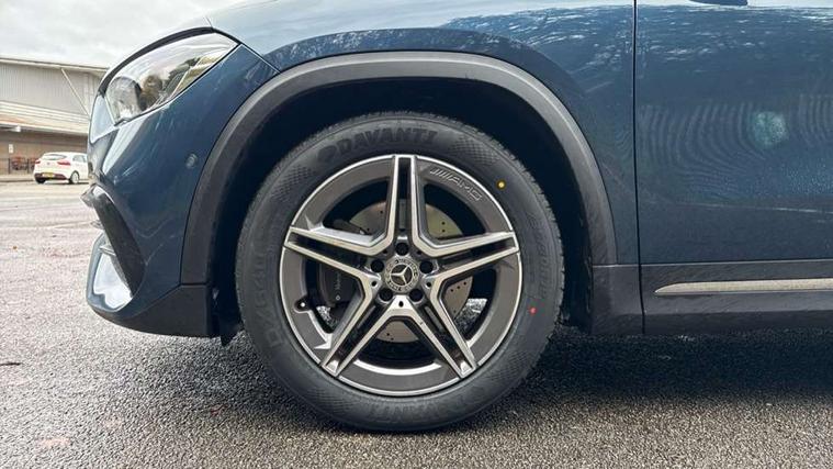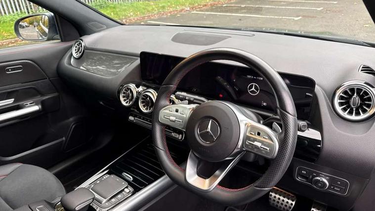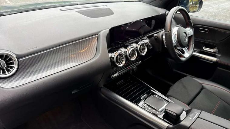 10.25 inch touchscreen central media display, 10.25" Digital instrument cluster display screen, Active lane keeping assist, Attention assist, Direct steering, DYNAMIC SELECT with a choice of driving modes (ECO, Comfort, Sport and Individual), ECO start/stop function, Fluid level warning indicator for fuel, oil, coolant and washer fluid, Hard-disk navigation, Hey Mercedes Voice activation, Lamp failure indicator, Mercedes me connect including emergency call system, accident recovery, breakdown and maintenance management, Mercedes me remote services, Multi function trip computer, Outside temperature gauge, Owners manual and service booklet in English, Pre-installation of private car share, Radio aerial integrated into front and rear windshields, Service indicator (ASSYST), Smartphone integration with Apple CarPlay and Android auto, Status display for rear seat belts in instrument cluster, Traffic sign assist, Lowered comfort suspension, Rear axle multi-link, 2 USB ports (type C) in rear stowage compartment and one in front of center console, Bluetooth connectivity including audio streaming, DAB Digital radio, MBUX multimedia system, Media interface, Mercedes-Benz (225w) sound system with 10 speakers, Adaptive brake lights, Aerial for GPS, Aluminium roof rails, AMG front and rear apron, AMG specific/dual flow exhaust pipes in chrome (non-functional), Automatic headlamp activation, Beltline strips and weather strip in chrome, Black grained claddings with chrome parts, Body colour bumpers, Body colour door mirrors, Body coloured door handles with chrome insert for keyless entry, Car wash function, Dark privacy glass from B-pillar backwards, Electric front windows, Electric rear windows, Electrically adjustable and heated door mirrors with integrated LED indicators, Heated glass rear windscreen + timer control, Heated windscreen wash system, Interior mirror with black reading lamps and frameless, LED daytime running lights, LED third brake light, Matt titanium grey front and rear apron trim, Multibeam LED headlamps with adaptive highbeam assist and cornering function, Panoramic sunroof, Pre-installation for trailer coupling, Rain sensor windscreen wipers, Rear fog lights, Rear side wing doors, Rear wiper, Roof spoiler, Single lamella raditor grille with chrome dotted diamond grille and inlay, 12V power socket in centre console, 3 seat bench in 2nd row, 3 spoke multifunction sports steering wheel in nappa leather with flattened bottom and perforated grip area, 40:20:40 split folding rear seat backrests, Adjustable head restraints, Air conditioning - Two zone thermotronic luxury automatic climate control with display, Ambient lighting in front headrests, AMG floor mats with AMG lettering in front, Artico man-made leather/Microfibre Dinamica upholstery with red contrast stitching, Auto Mercedes-Benz child seat recognition sensor, Black roof lining, Brushed door pulls in silver chrome, Courtesy light in boot, Front centre armrest with stowage, Galvanished gear shift paddles on steering wheel, Heated front seats, illuminated door sills with changeable cover, Illuminated glovebox, Interior lighting - 64 colour Ambient lighting, Leather trimmed gearknob, Luggage net on driver/front passenger seat backrest, Manually height and reach adjustable steering column, Multi-gesture touchpad control on center console, Single front passenger seat, Sports pedals in brushed stainless steel with black rubber studs, Sports seats, Stowage compartment in centre console, Stowage compartment with retractable cover, Sunvisors with illuminated vanity mirrors, Twin front cup holders, Two outer rear seat isofix and top tether child seat fixing points, AMG body styling pack - GLA, Comfort seat pack - GLA Class, Interior lighting with light and sight pack - GLA, Load compartment pack - GLA, Mirror pack - GLA Class, Parking pack - GLA, 3 rear 3 point seatbelts, ABS with Brake Assist, Active bonnet pedestrain safety measure which detects an impact and raises bonnet by 65mm, Active brake assist includes forward collision warning system with autonomous braking, Adaptive brake assist with hold function and hill start assist, Bonnet with power domes, Brake pad wear warning indicator, Childproof locks manually operated for rear doors and electrically operated for rear power windows, Crash responsive emergency lighting, Driver and passenger head and side airbags, Drivers knee airbag, Dual stage driver/passenger airbags, Electronic parking brake, ESP curve dynamic assist, ESP with ASR, Front and rear seatbelt reminder, Front brake callipers with Mercedes Benz logo lettering on front, Front brake discs internally ventilated and perforated, Front passenger seat occupancy sensor, Tyre pressure monitoring system, Warning triangle and first aid kit, Window airbags, Alarm system with immobiliser and interior protection -Thatcham category 1, Keyless Go starting function, Remote central locking and crash sensor with emergency opening function, Urban guard vehicle protection, Vehicle key with decorative surround in chrome, Carbon structure trim, Chrome air vent surrounds, 19" AMG 5 twin spoke light alloy wheels aerodynamically optimised painted in tantalite grey with a high sheen finish, Summer tyres, Tirefit tyre sealant kit,