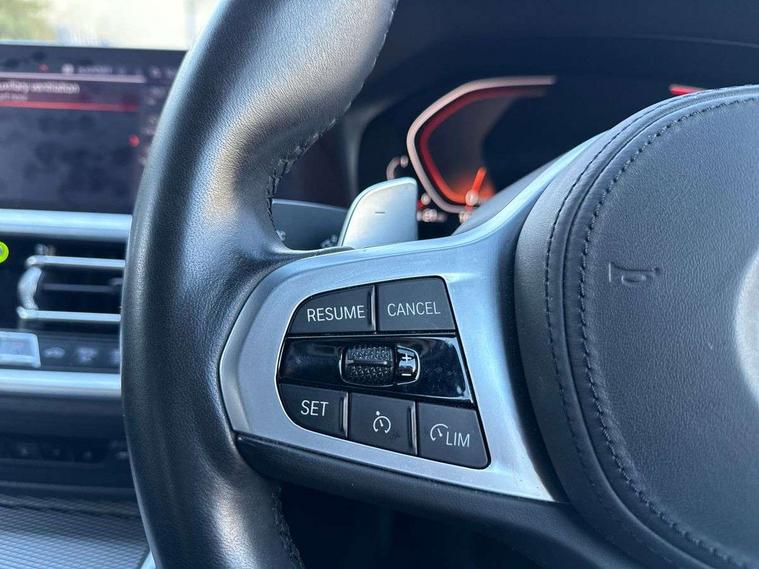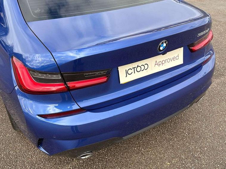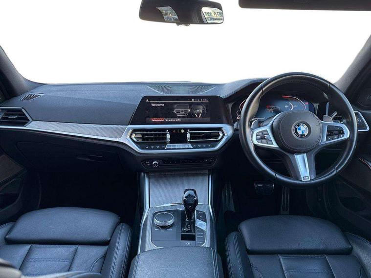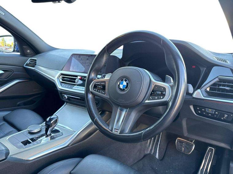 Active guard plus, Attentiveness assist, Auto start-stop, BMW iDrive controller on centre console, BMW Live Cockpit Professional sat nav system including 10.25" high resolution display and Intelligent Voice Assistant, BMW Online services, BMW Teleservices, Brake pad wear indicator in front and rear, Check Control warning system for monitoring of lights and door/luggage compartment open warning, Condition based service, Front/rear park distance control, Instrument cluster with speedometer with mph readout, tachometer, fuel gauge and oil temperature gauge, Oil sensor for level and grade, On board computer - average speed+fuel consumption, service interval, clock/date, odometer/trip meter, outside temperature display and ice warning, Optimum shift indicator, Pesonal profile, Variable sport steering, Battery cut-out switch, Diesel particulate filter, Drive performance control with ECO PRO comfort + sport mode, Electronic differential lock, Incorrect fuelling protection, Larger capacity fuel tank, Sport automatic transmission with steering-wheel mounted gearshift paddles and launch control, DAB tuner, Acoustic glazing, Active airstream chrome frame kidney grille with 8 high gloss black vertical slats, Automatic headlight beam throw control with load dependent regulating reaction, dynamic compensation of braking dive and acceleration squat, Black roof mouldings, Body colour - fuel filler flap, front and rear bumpers, door handles and mirror caps with integrated turn indicator + bottom segment in matt black, Dynamic brake lights, Extended LED headlights, Exterior mirrors - electrically folding with anti-dazzle, Front and rear bumper system with replaceable deformation elements, Front and rear electric windows with open and close fingertip control, anti trap facility and comfort closing, Front black door sill finishers with BMW designation, Green tinted heat protection glazing, Interior rear view electrochromatic mirror with automatic anti dazzle function, LED front fog lights, Left and right split exhaust tailpipes, Lightweight engineering, M aerodynamic body styling, M designation on left and right front side panels, M designation side badges, Matt black exterior B pillar, Model designation on right side of tailgate, Rain sensor with automatic headlight activation, Shark fin antenna, Two part LED tailights in L-shape with components in smoked glass, brake light, LED turn indicator and rear fog light, Visible VIN plate, Welcome lights in interior and door handle area, Windscreen wipers with integrated washing jets, 12V power socket in front storage compartment, 2 front cupholder in centre console with clamping elements and matt black inlay, 3 rear seats with non folding headrests with 3 point seat belts, 3 spoke M leather steering wheel, 4 pieces lashing eyelets in luggage compartment, 40:20:40 split folding rear bench seat, Ambient lighting, Anthracite headlining, Armrest integrated in front and rear door trim + front centre console armrest, Centred top Luggage compartment lights, Four grab handles integrated in roof lining, Front and rear door pockets, Front and rear velour floor mats, Front sport seats, Heated driver and front passenger seats, Height adjustable mechanically and infinitely variable steering column, Illuminated glove compartment with separate small compartment, Interior lighting - front centre over interior mirror with soft light, rear centre and front and rear footwell lighting, Rear centre armrest with 2 cupholders, Rear centre console with storage compartment and ventilation grille, Steering column length adjustment lever, Sunvisors with vanity mirrors and ticket pocket, Three zone automatic air conditioning, Through loading system with 40/20/40 split folding rear seat, Toolkit located in luggage compartment, Vernasca leather upholstery, Connected pack professional - 3 Series Saloon/Touring, M Aerodynamics pack - 3 Series Saloon/Touring, 2 tone horn, ABS, Automatic Stability Control (ASC), BMW emergency call, Brake assist function, Brake drying, Brake energy regeneration, Braking pre-tensioning, Child proof locking system in rear door, Child seat ISOFIX attachment rear outer seats, Cornering brake control (CBC), Crash sensor activating central locking release, hazard warning lights, fuel cut off, interior lighting + activation of safety battery terminal clamp, Driver and front passenger front and side airbags with passenger deactivation and ITS front and rear head airbags, Dynamic brake control, Dynamic Traction Control - DTC, Electromechanical parking brake with automatic drive away release and auto hold function, Hill start assist, Seat belt security check for driver and front passenger, Side impact protection, Three 3 point seat belts on all seats including front belt stopper, pyrotechnic belt tensioners and belt force limiters, Tyre pressure monitoring with three level warning strategy, Variable torque distribution, Ventilated front and rear disc brakes, Warning triangle and first aid kit, Alarm system (Thatcham 1) with remote control and electronic engine immobiliser, Central locking switch for all doors, fuel filler cap and luggage compartment, Remote control with integrated key one button open/close vehicle and windows, sole opening of the luggage compartment lid and panic mode, Selectable automatic lock when driving away, Start/stop button with Comfort Go keyless engine start and auto Start/stop deactivation button, Vehicle key with M specific designation, Reduced rolling resistance tyres,