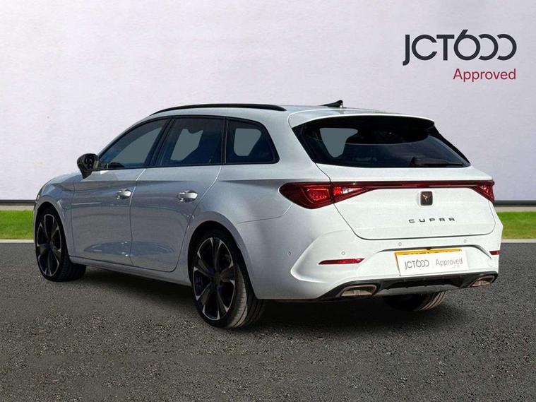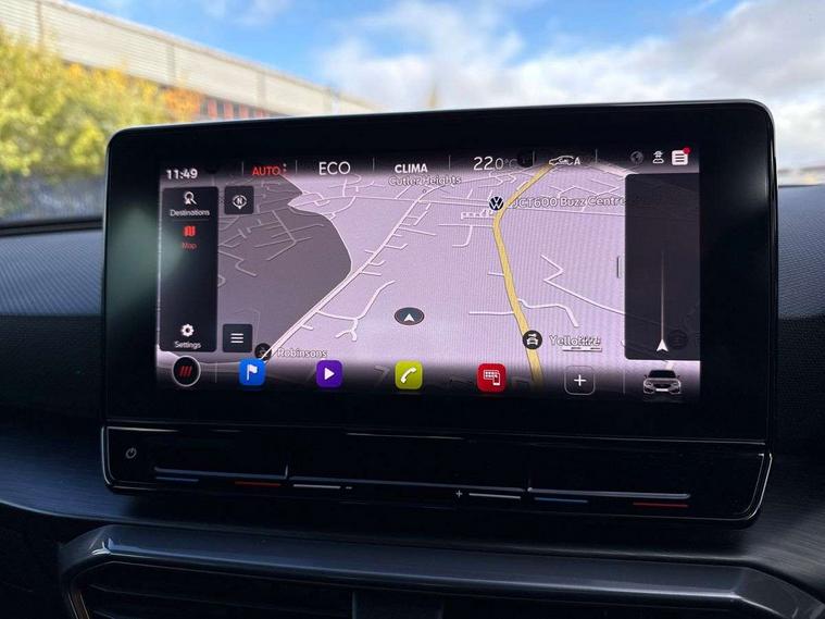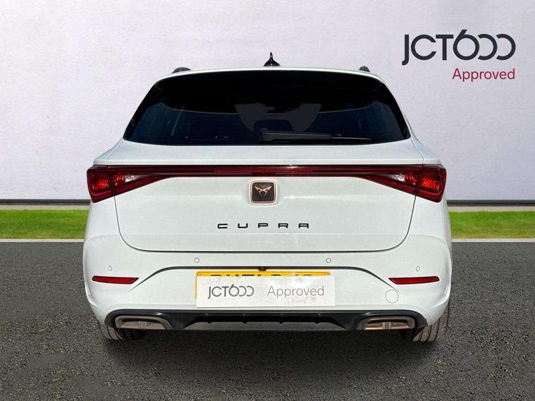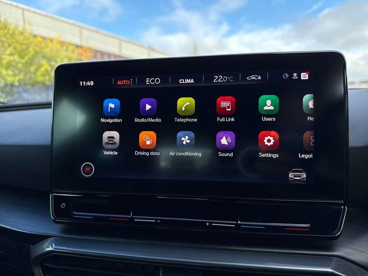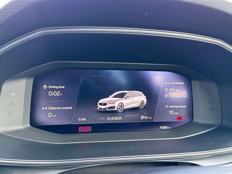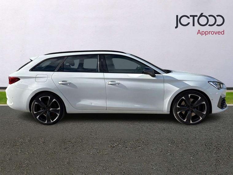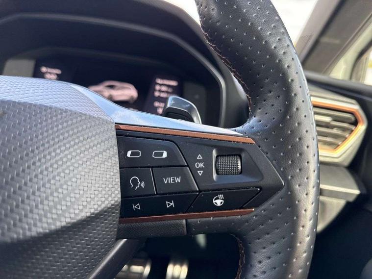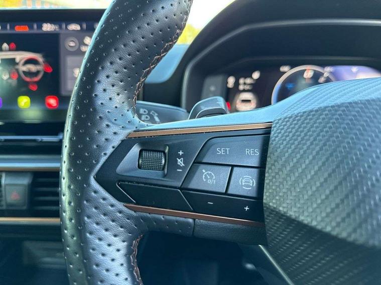CUPRA drive profile selection with 4 modes (Comfort/Cupra/Sport/Individual), throttle response and gearshift mode, Digital cockpit, Four x USB Type C ports, Front assist with forward collision warning braking reaction to vehicles, pedestrians and cyclists, Full link smartphone integration with Mirror Link, wireless Apple CarPlay and wired Google Android Auto, Lane assist, Lockable tailgate, Park assist (inc front/rear parking sensors), Rear view camera, RPM, trip computer, outside temp gauge, instrument light brightness, low fuel warning light, lights on reminder, gearshift indicator, Service interval indicator, Start/stop system with regenerative braking, 10 amp mode 2 charging cable, 3.6 kw On-board charger, Mode 3 charging cable, Standard suspension, XDS electronic differential lock and dynamic traction support, 7 speakers, Auxiliary input socket, Auto dimming rear view mirror, Body colour door handles, Body coloured bumpers, Cupra sports bumpers, Dark tinted rear windows, Electric front/rear windows, Electrically adjustable, heated and folding door mirrors, Gloss black roof rails, LED front fog lamps with cornering function, LED headlights and tail lights with dynamic turn signals, welcome light silhouette from exterior mirrors and dynamic headlight range control, LED rear fog lamp, Rain sensing wipers, Rear coast to coast lighting, Rear diffuser with twin exhaust pipe on each side with simulated exhausts, Rear wash/wipe, Separate daytime running light with automatic headlight control and coming home feature, 12v power supply in centre console, 12v socket in loadspace, 5 headrests, 60/40 split rear bench seat with armrest, Ambient lighting (glovebox, footwell, ambient lighting multicoloured), Black headlining, CUPRA Leather flat bottomed, heated, perforated steering and gearshift paddles, Cupra sports pedals, Driver/passenger manual seat height adjustment, Dust/pollen filter, Front and rear reading lights X 4, Front centre armrest, Front seats manual lumbar adjustment, Height/reach adjust steering wheel, Illuminated interior front door sills, Interior wraparound lighting, ISOFIX points in outer rear seats with top tether anchorage points, Luggage tie-down hooks, PVC/Cloth upholstery with copper stitching + Cupra embossed logo on headrest, Sliding boot cover, Sports bucket seats, Storage pockets on rear of front seats, Sunvisors with illuminated mirror, Three zone climate control, Tool kit, Dynamic and comfort pack - Leon Cupra, Media system plus with navigation pack - Leon Cupra, 3 point seatbelts on all rear seats, ABS, Brake control system - ESC and brake booster, Child proof door locks, Cupra black brake calipers, Driver and front passenger airbags with front passenger airbag de-activation, front side and curtain airbags, Electronic parking brake, Extended safety system - seat belt tensioner, window closure and hazard lights, Hill hold control, Rear disc brakes, Seat belt reminder for front and rear seats, Tiredness recognition system, Tyre pressure monitoring system, Anti theft alarm system with interior monitoring in cab, backup horn and towing protection, KESSY Advanced - Keyless start, keyless entry, Locking wheel bolts, Chrome and copper interior detailing, 19" Machined black and silver alloy wheels with 91Y tyres, Breakdown kit,