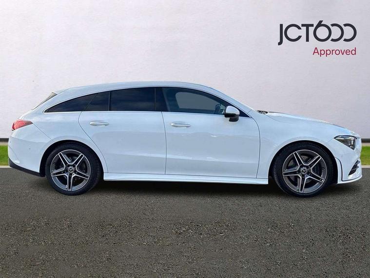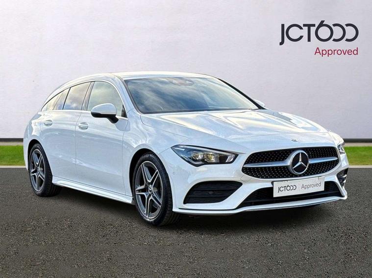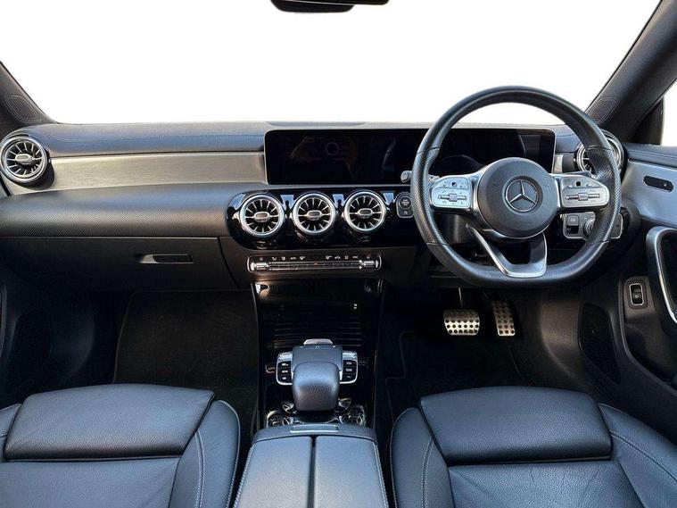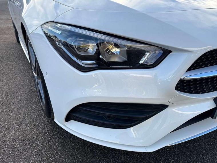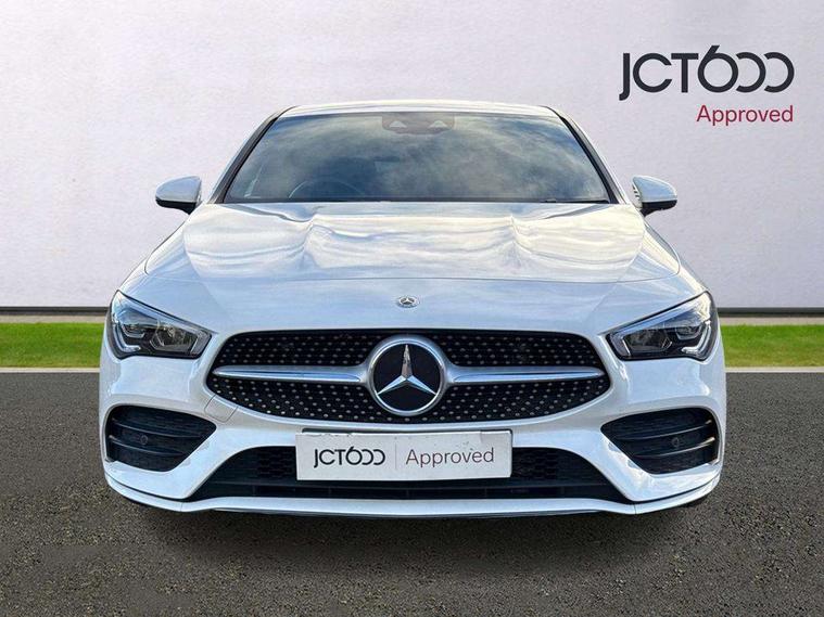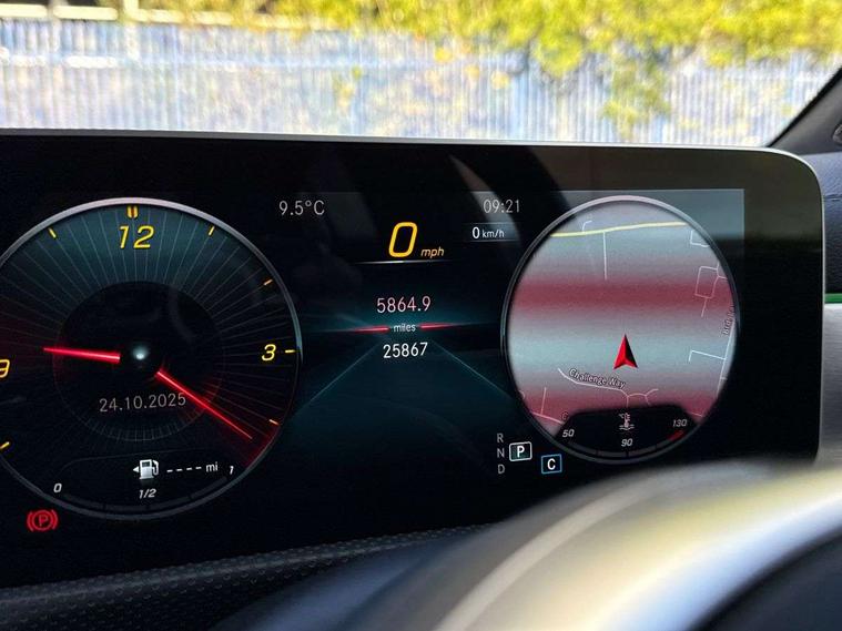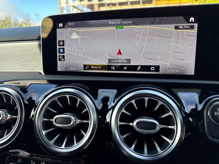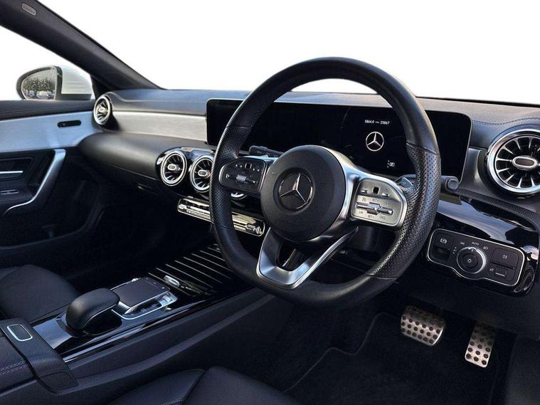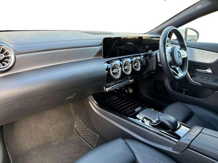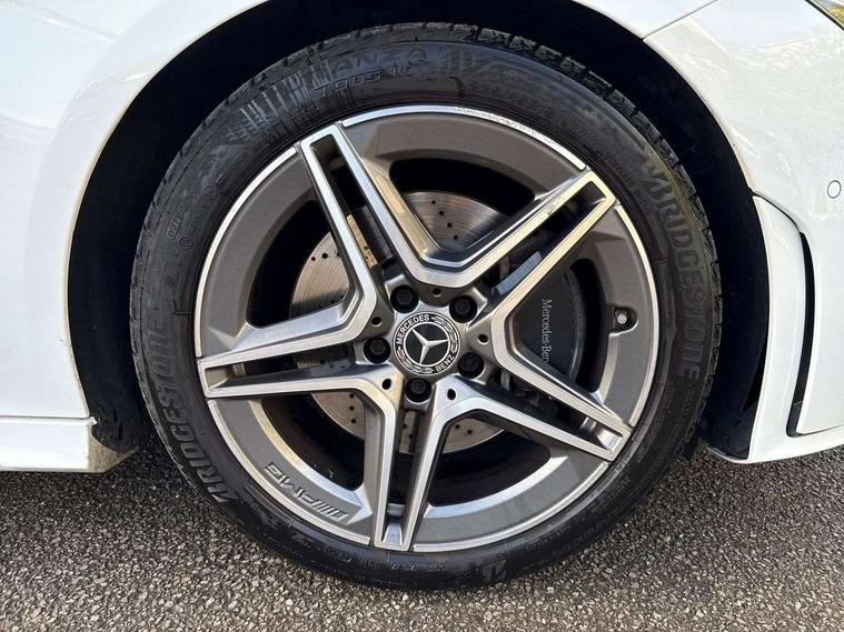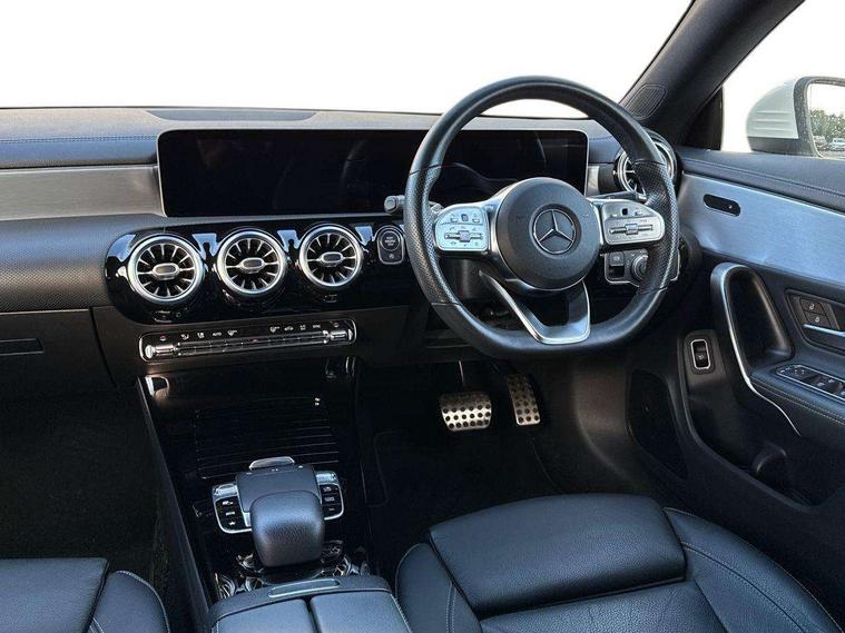 10.25 inch Instrument display with digital cockpit, 10.25 inch touchscreen central media display, Active lane keeping assist, Attention assist - Monitors steering behaviour and long journey fatigue, Cruise control with limiter, Direct steer system with speed sensitive power steering, Dual bluetooth interfaces, DYNAMIC SELECT with a choice of driving modes (ECO, Comfort, Sport, Sport+ and Individual), Easy-pack tailgate, ECO start/stop function, Fluid level warning indicator for fuel, oil, coolant and washer fluid, Hard-disk navigation, Hey Mercedes Voice activation, Lamp failure indicator, MBUX augmented reality for navigation, Mercedes me connect including emergency call system, accident recovery, breakdown and maintenance management, Outside temperature gauge, Owners manual and service booklet in English, Pre-installation for Vehicle Monitoring, Pre-installation for Vehicle Setup, Pre-installation of private car share, Preinstallation for Mercedes Benz link, Radio aerial integrated into front and rear windshields, Service indicator (ASSYST), Smartphone integration with Apple CarPlay and Android auto, Speed limit assist, Trip computer in multifunction display with current consumption indicator, Wireless charging, 7G-DCT 7 speed automatic transmission, Lowered comfort suspension, Rear axle multi-link, Sporty engine sound system, DAB digital radio tuner, MBUX multimedia system with DAB digital radio and touchpad including satellite navigation, Mercedes Benz advanced sound system (225 W) with 10 speakers, 1 central speaker, speakers on doors, a tweeter on door, one sub woofer + boost amplifier, USB (type C) ports (2) in stowage compartment and 1 in front of centre console, Adaptive brake lights, AMG body styling with AMG front apron and rear apron and visible exhaust tailpipe in chrome trim elements, AMG bodystyling side skirts, Body colour bumpers, Body colour door handles, Chrome beltline strips, Chrome weather strip, Diamond radiator grille pins in chrome with silver painted louvres and chrome insert, Electric windows, Electrically adjustable and heated door mirrors with integrated LED indicators, Exhaust system with 2 Visible tailpipe trim elements and rear apron with trim in chrome, Headlamp assist automatic headlamp activation, Heated glass rear windscreen + timer control, High level LED third brake light, LED high performance headlamps with integrated LED daytime running lights, LED tail lamp, Privacy glass with dark tinting on rear side windows and rear window, Rain sensing windscreen wipers with two sensitivity settings, Rear fog lamp, Vehicle Monitoring, Vehicle Setup, Window line trim strip in chrome, 3 spoke flattened bottom nappa leather multifunction steering wheel with perforated leather in grip area, 40:20:40 split folding rear seat backrests, Air conditioning - Two zone thermotronic luxury automatic climate control with display, Air vents with surround in silver chrome, Automatic child seat recognition sensor, Black roof lining, Brushed stainless steel sports pedals with rubber studs, Floor mats with stitched AMG lettering, Front centre armrest with stowage, Front seat cushion length adjustment, Galvanished gear shift paddles on steering wheel, Heated front seats, Illuminated glove compartment stowage, Illuminated Mercedes benz door sills with Mercedes Benz lettering, Interior lighting - 64 colour Ambient lighting, Luggage net on driver/front passenger seat backrest, Manually adjustable front seats, Manually height and reach adjustable steering column, Rear armrest with two integral cup holders for drinks, Rear head restraints, Rear interior lamp, Spectacles compartment for driver, Sport seats with fixed head restraints, Stowage compartment in centre console with retractable cover, Sunvisors with illuminated vanity mirrors, Touchpad on center console, Twin front cupholders, Two outer rear seat isofix and top tether child seat fixing points, Keyless go pack - CLA, Light and sight pack - CLA, Mirror pack - CLA, Parking package - CLA, Seat comfort pack - CLA, Active bonnet pedestrain safety measure which detects an impact and raises bonnet by 65mm, Active brake assist includes forward collision warning system with autonomous braking, Adaptive brake assist with hold function and hill start assist, Anti-lock braking system (ABS), Black seat belts, Bonnet with power domes, Brake pad wear warning indicator, Childproof locks manually operated for rear doors and electrically operated for rear power windows, Crash responsive emergency lighting, Driver and front passenger head and sidebags, Driver and front passenger windowbags, Drivers knee airbag, Dual stage driver and front passenger airbags, Electric parking brake, Electronic stability programme with acceleration skid control, ESP curve dynamic assist, Front and rear seatbelt reminder, Front brake callipers with Mercedes Benz lettering, Front passenger seat occupancy sensor, Three point rear seat belts, Tyre pressure monitoring system, Warning triangle and first aid kit, Alarm system with immobiliser and interior protection -Thatcham category 1, Remote central locking and crash sensor with emergency opening function, Light aluminium with longitudinal grain interior trim, 18" 5 twin spoke design alloy wheels painted in titanium grey with high sheen finish, Summer tyres, Tirefit tyre sealant kit,