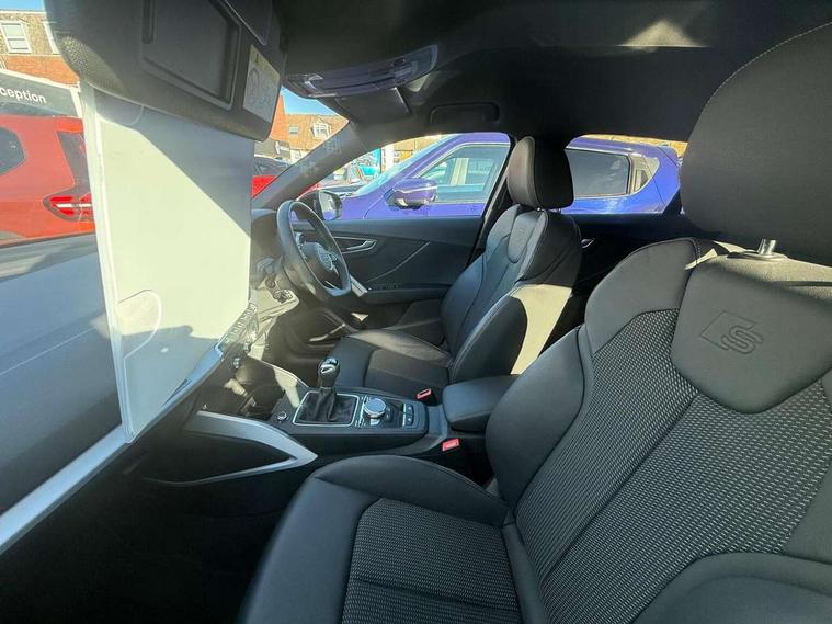 3D map display, Audi connect navigation and infotainment includes innovative services, Audi connect remote and control connects your vehicle to your smartphone, Audi drive select: power steering assistance + engine (modes: comfort, auto, dynamic, efficiency, individual), Audi smartphone interface - Apple carplay/Android Auto, USB connect, 2xSDXC card readers, voice control for navi, telephone, music and 3rd party apps, Audi virtual cockpit, Automatic start/stop system with recuperation, Bluetooth interface includes bluetooth audio streaming, Cruise control, E-call, Jukebox hard drive memory for music (10GB), MMI navigation plus with 8.3" colour MMI screen and MMI touch, Natural voice recognition, Power operated tailgate, Progressive steering, Rear parking sensors, Sport suspension, 6 passive loudspeakers, DAB Digital radio, Audi beam, Auto dimming rear view mirror, Black window trims, Bumper in full body colour paint finish, Electrically adjustable, folding, auto dimming and heated door mirrors with integrated LED side indicators, Front windscreen with grey tinted sunband, LED daytime running lights, LED headlights with dipped beam, high beam, position lights, indicators, LED rear lights, LED third brake light, Privacy glass - dark tinted rear and rear side windows from B-pillar backwards, Rear side wing doors, Rear wiper, Variable front intermittent wipers, Wheel arch trims in manhattan grey, 12v socket in front, 3 seat bench in 2nd row, 3 spoke flat bottomed multi-function leather sport steering wheel, 4-way electric lumbar support for front seats including manual seat height adjustment for both front seats, 60/40 split folding rear seat bench, Black carpets, Black cloth headlining, Front and rear head restraints, Front centre armrest, Front sport seats, Front/rear floor mats, Height/reach adjust steering wheel, Illuminated door sill trims with S logo, ISOFIX child seat mounting in front passenger and rear outer seats, Manual air conditioning, Single front passenger seat, Stainless steel pedals, Black styling pack - Q2, 3x3 point rear seatbelts, 6 airbags - Front, curtain and front side airbags, Electromechanical parking brake, Electronic stabilisation control including ABS, ASR and EDL, Front passenger airbag deactivation, Hill hold assist, Pre-sense front with pedestrian recognition, Seatbelt monitoring, Tyre pressure warning light with visual and acoustic warning, Warning triangle and first aid kit, Anti theft alarm, Anti theft wheel bolts, Electronically operated child locks, Remote central door locking, Aluminium interior element, Black dashboard, Matt brushed aluminium trim inlays, Tool kit,